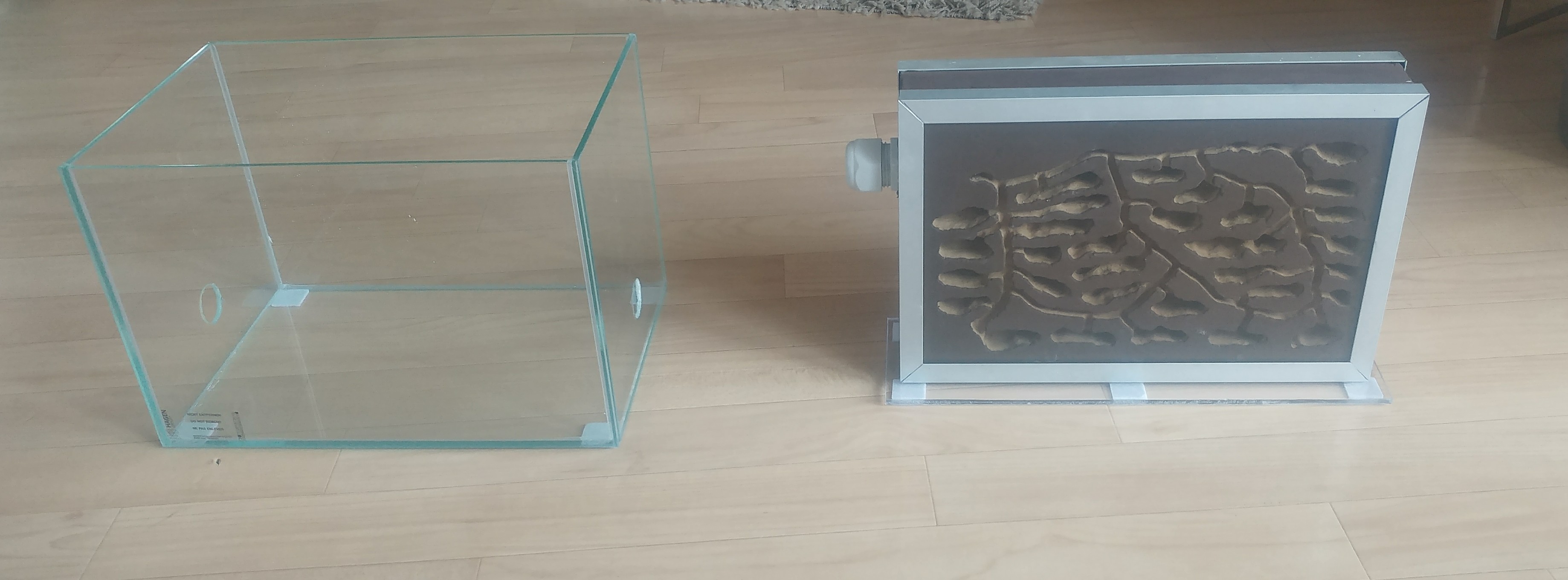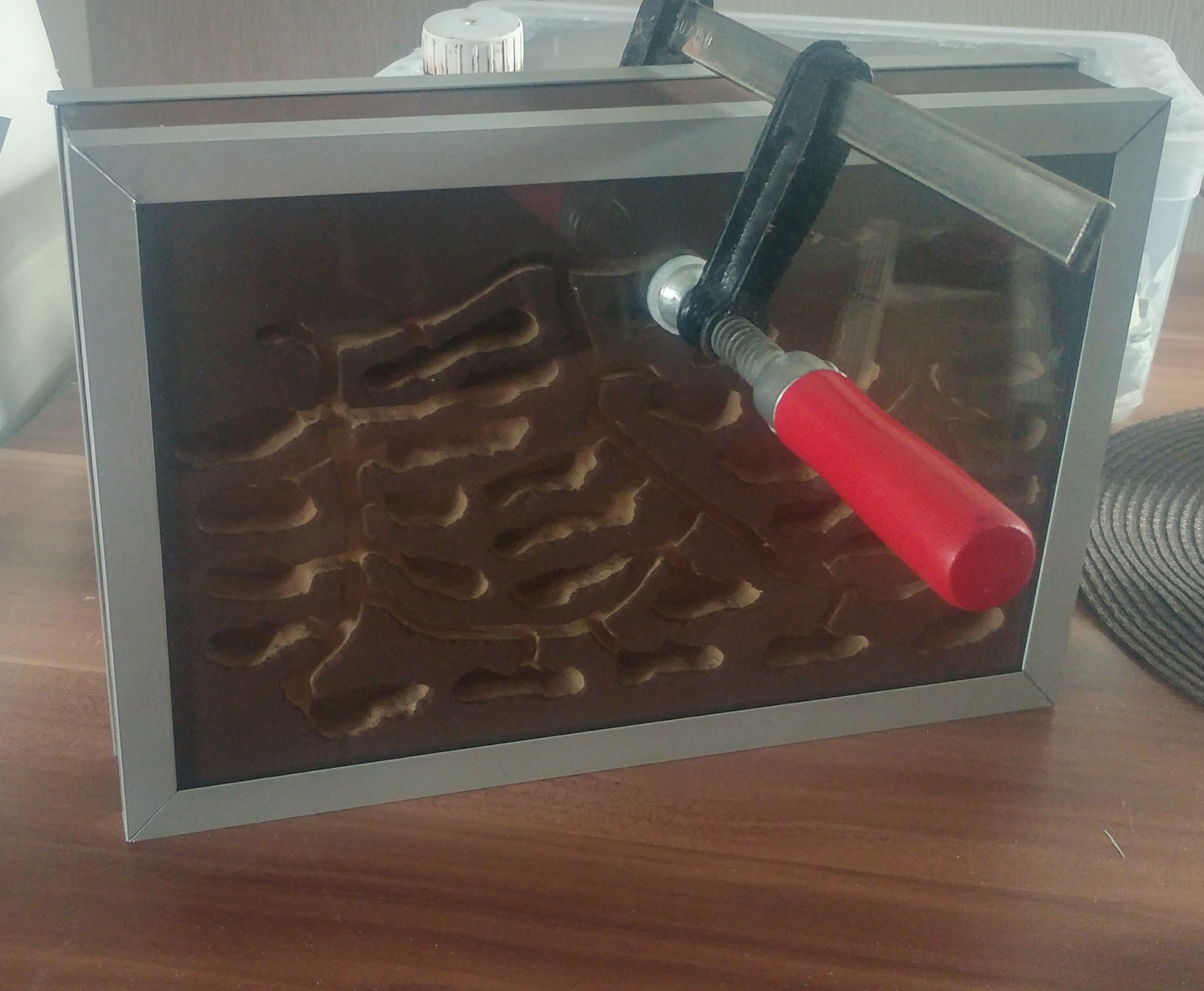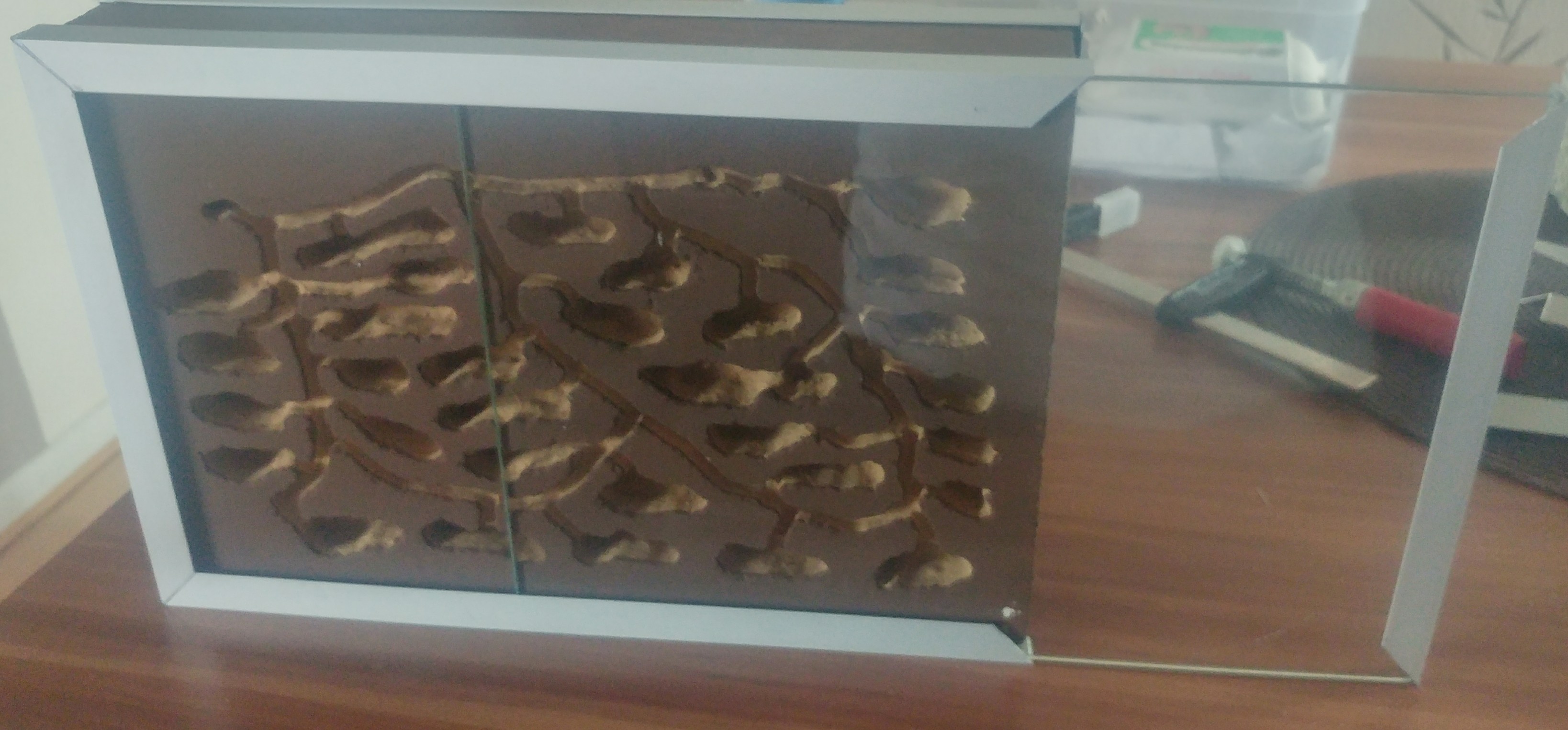 Da ich wollte das man das Nest reinigen kann, oder zur Not falls was nicht stimmen sollte mit den Ameisen, die Frontscheibe (4mm Glas) schiebbar ist.