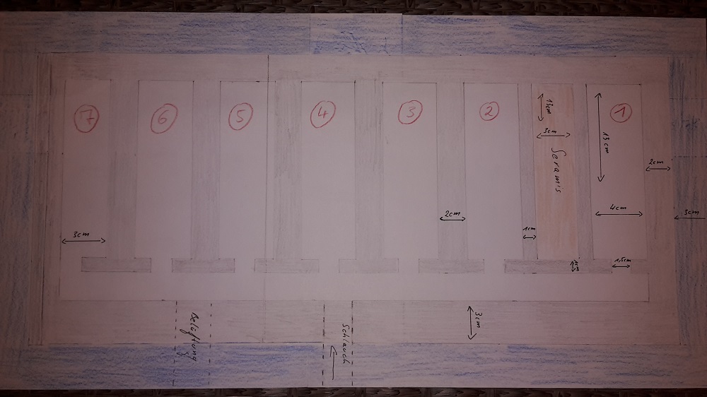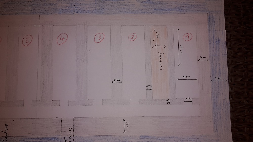 Mittlerweile habe ich das Ganze aber etwas genauer geplant, geschaut was ich an Materialien wie und wo in welcher Größe bekomme und eine maßstabsgetreue Skizze angefertigt.