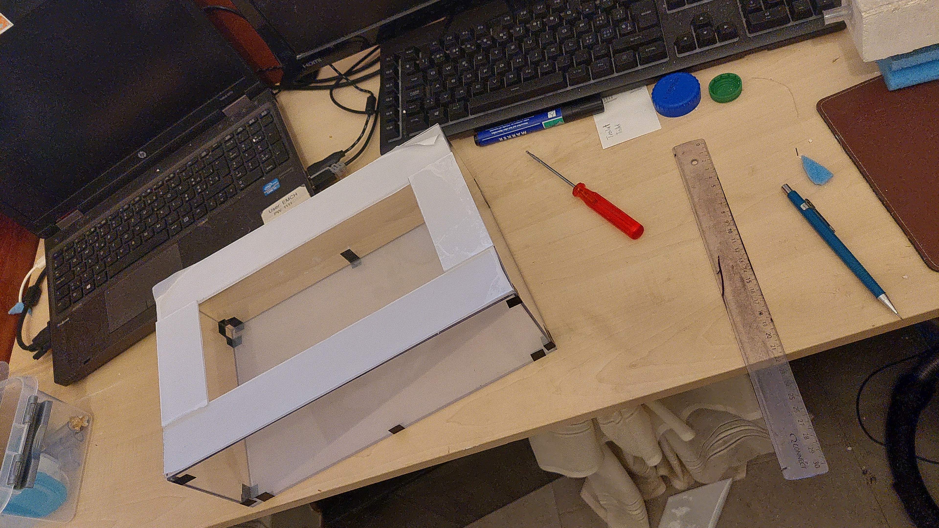 An der RĂĽckwand befestige ich noch eine Plexiglasscheibe die mit Neodymmagneten gehalten wird.
