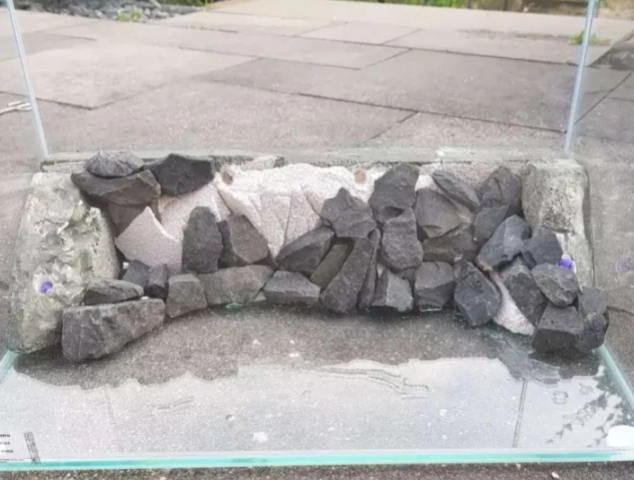 Da ich aber keinen Schiefer hatte, habe ich aus dem Garten Basaltsteine genommen.