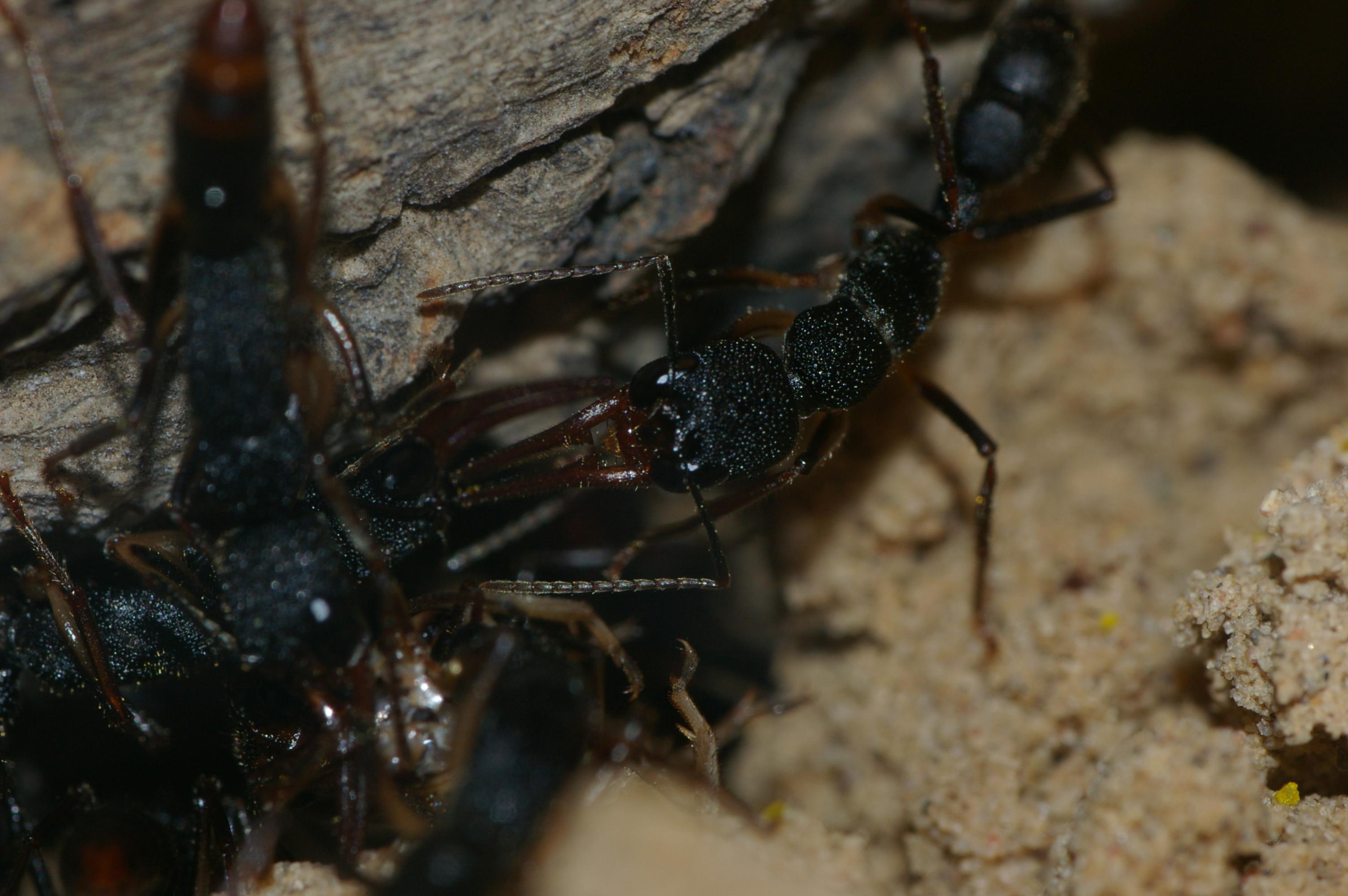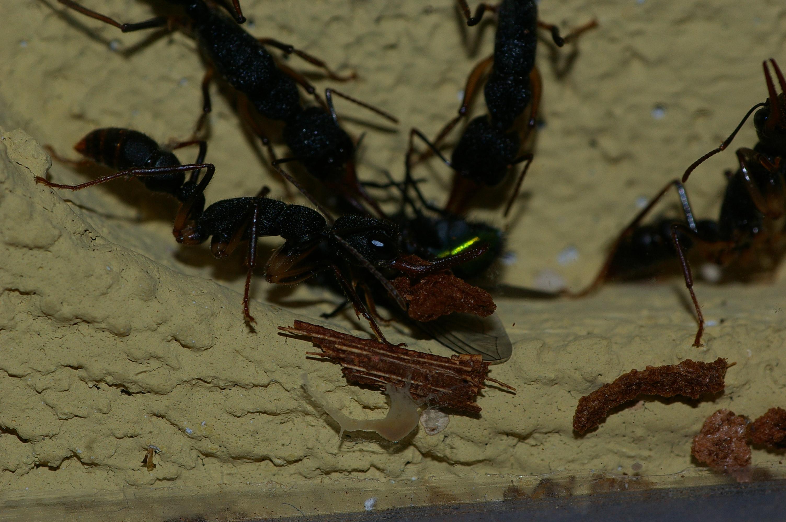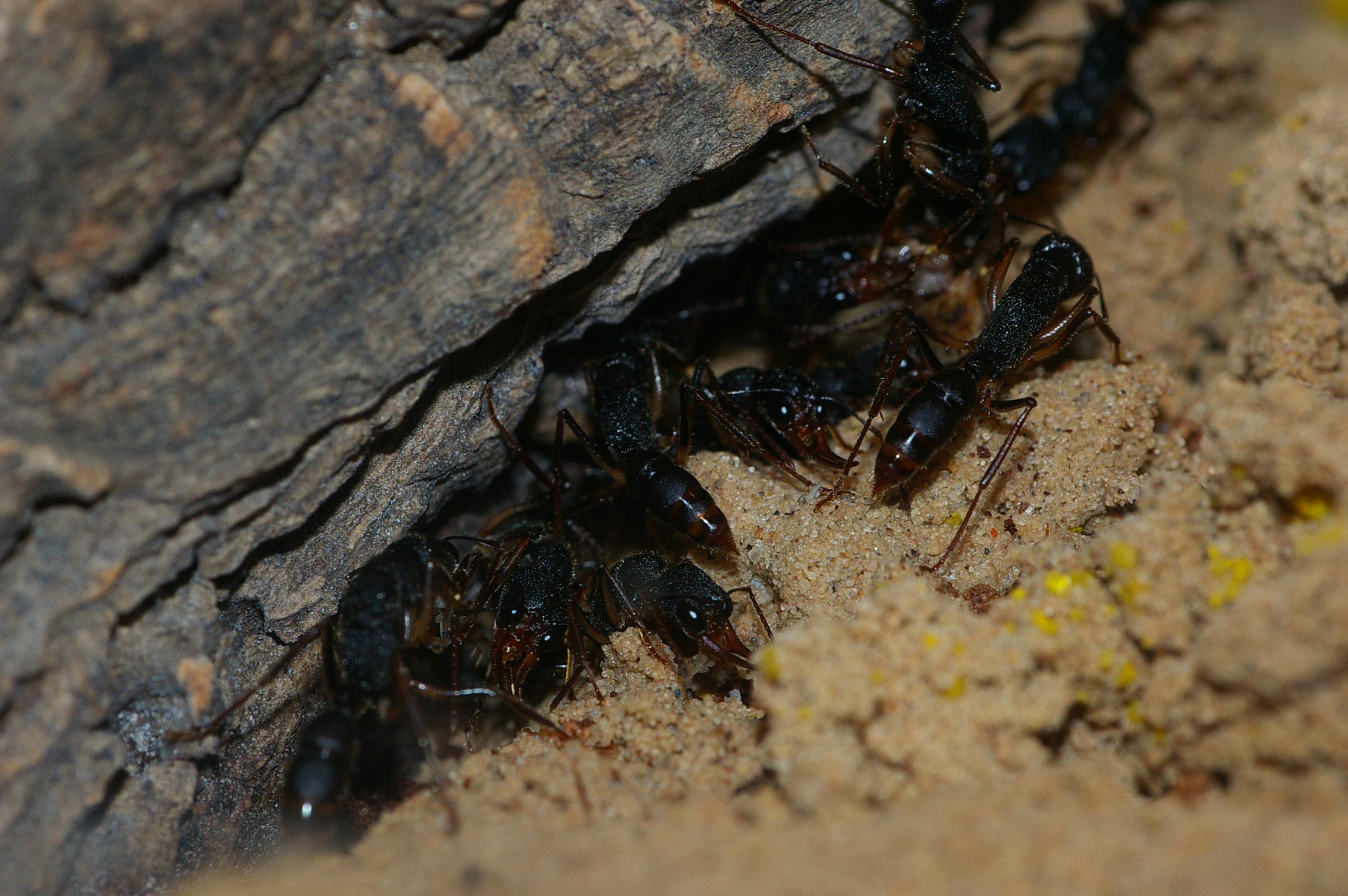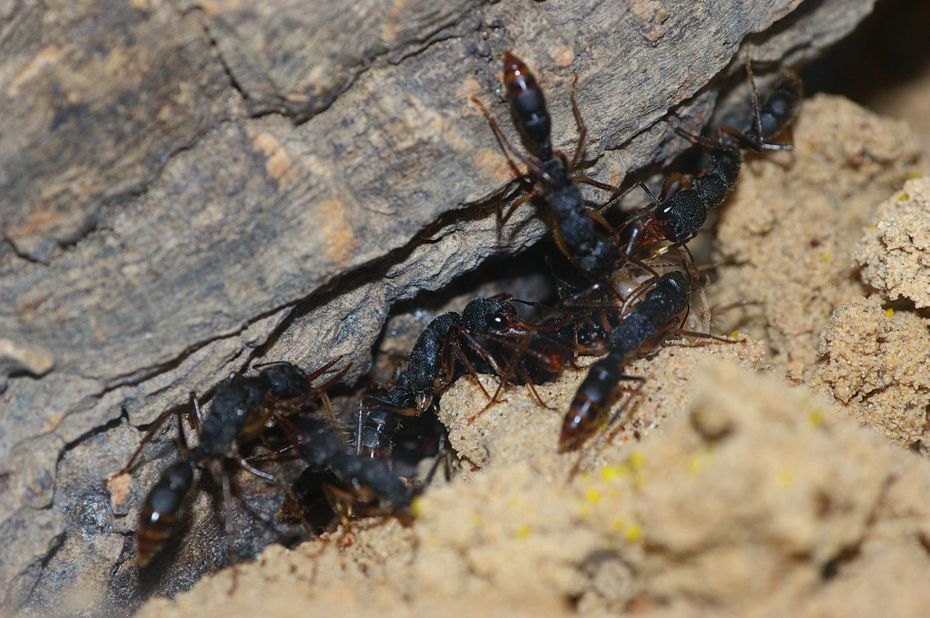 Bilder der vereinten Kolonie mit Gyne (vorher zwei Gruppen)beim Sonnen und Fressen: