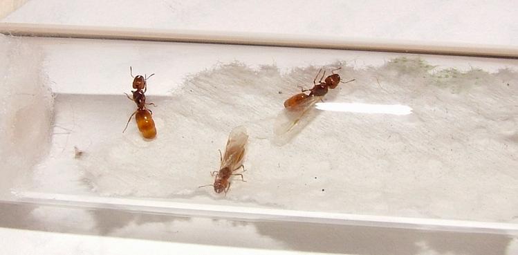 Hier ein Bild einer begatteten Gyne mit Königinnen, die ihre Flügel noch nicht abgeworfen haben...