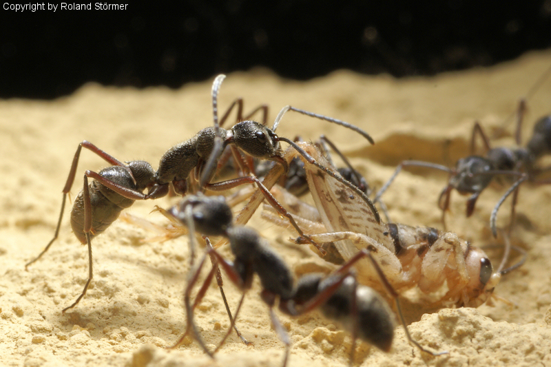 Alleine oder in kleinen Gruppen jagend, werden Beutetiere erst erstochen und dann ins Nest getragen. Die