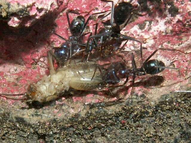 Ich glaube, Ă€hnliches, dann Pfropfung genannt, kommt auch bei anderen Arten vor. Ich hab davon gehört fĂŒr Arten von Odontomachus, beobachtet hab ich es bei Ectatomma.