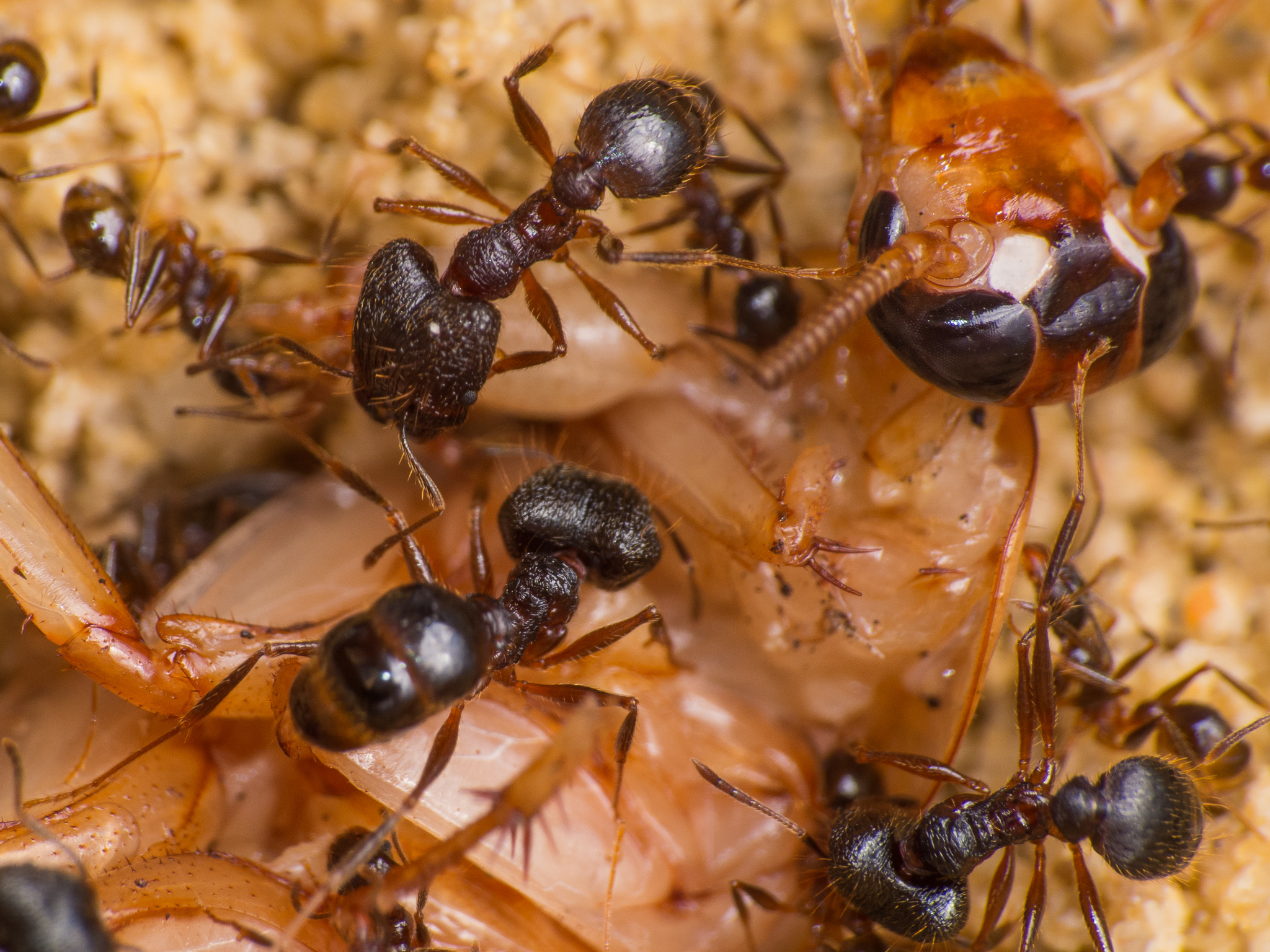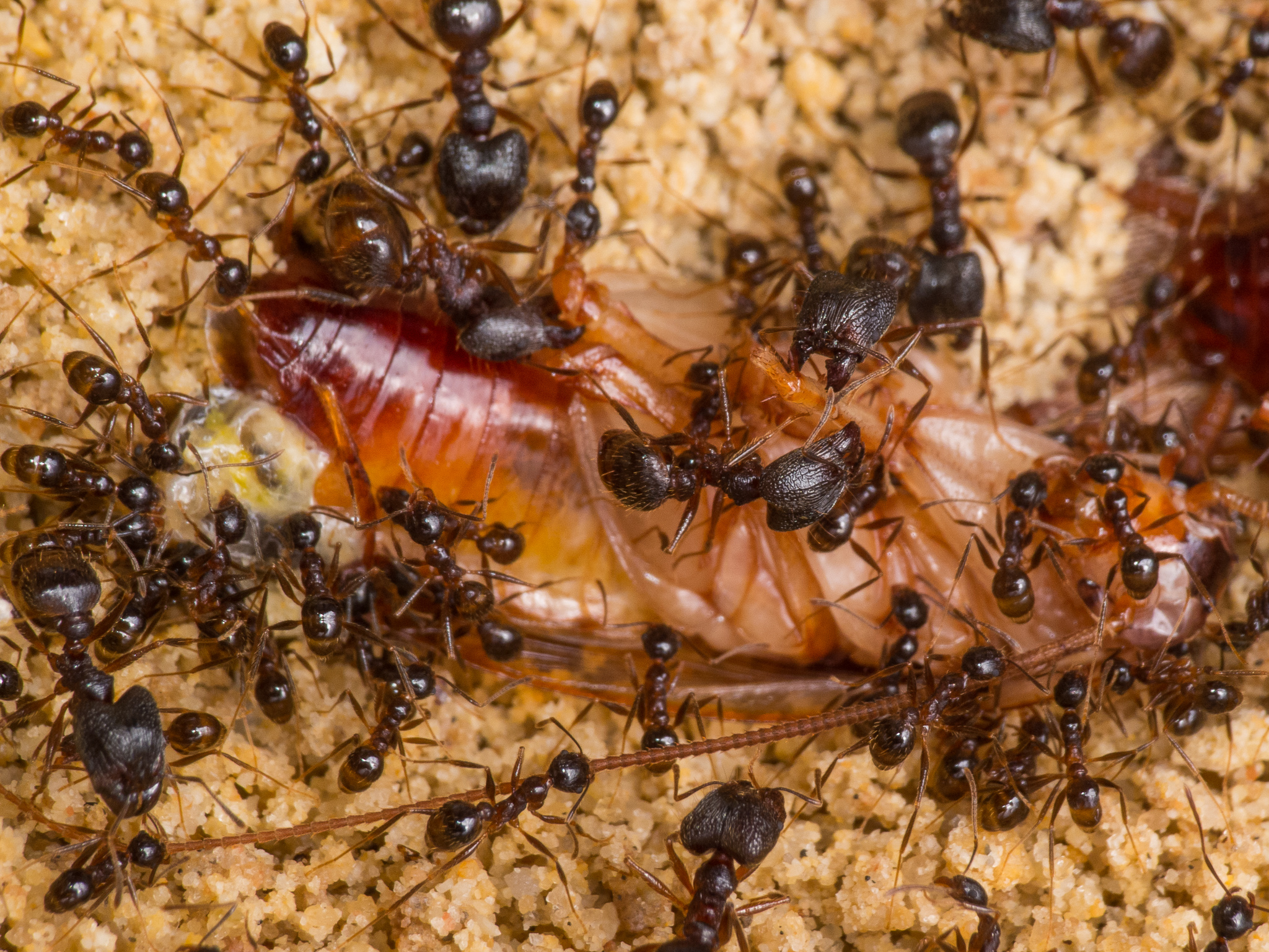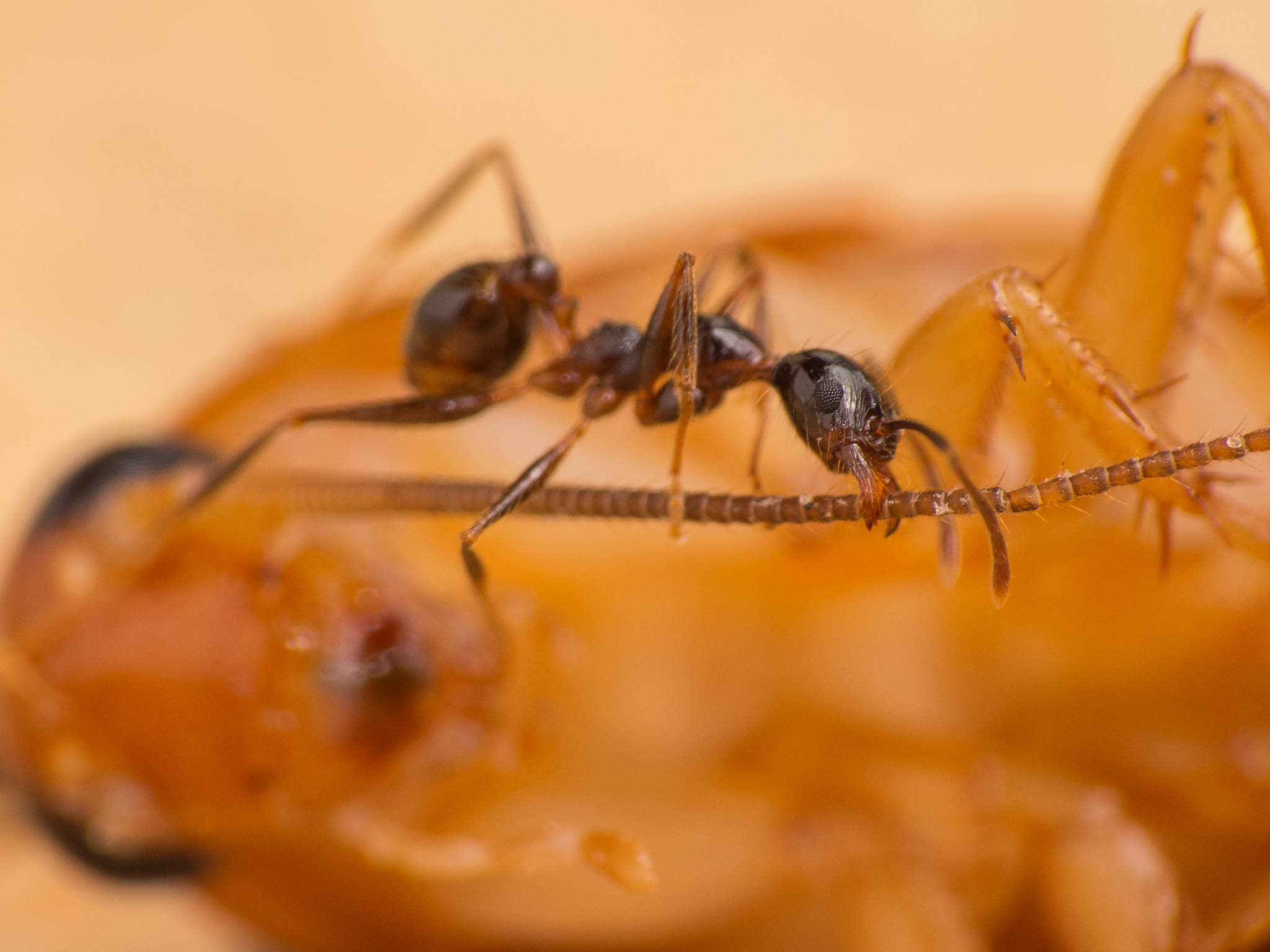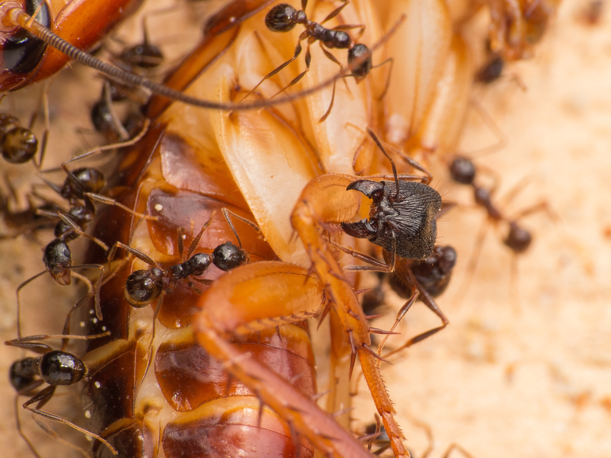Wie man sieht scheinen die kleinen Minor-Arbeiterinnen eine Vorliebe fĂĽr die FĂĽhler der Schaben zu haben: