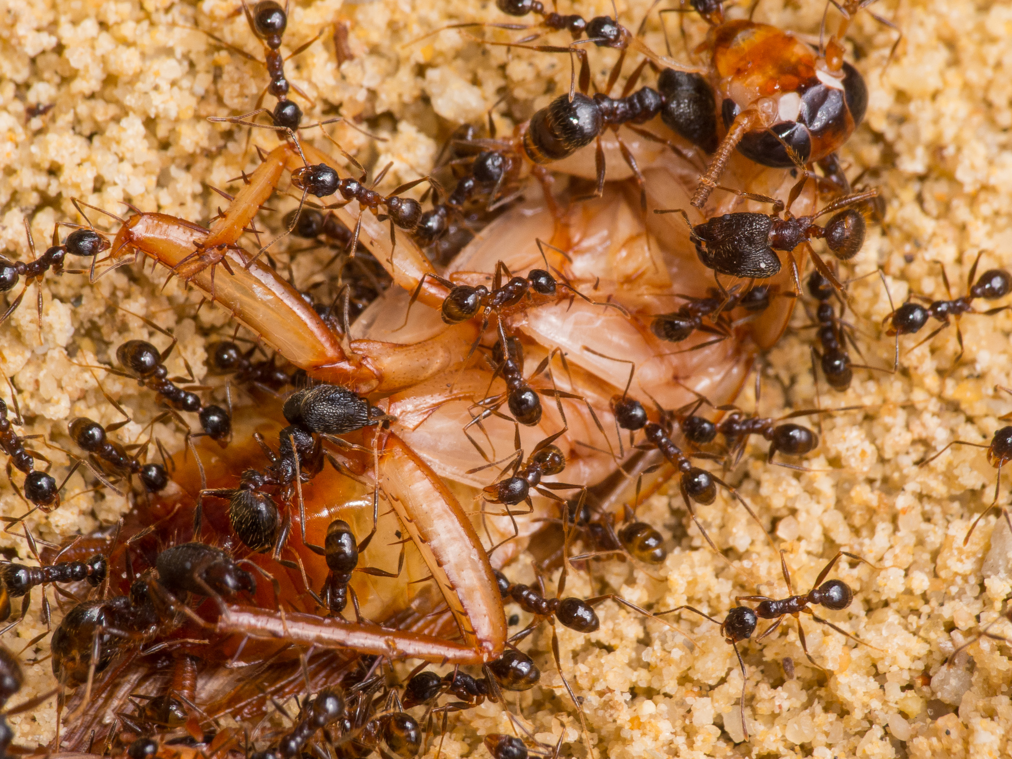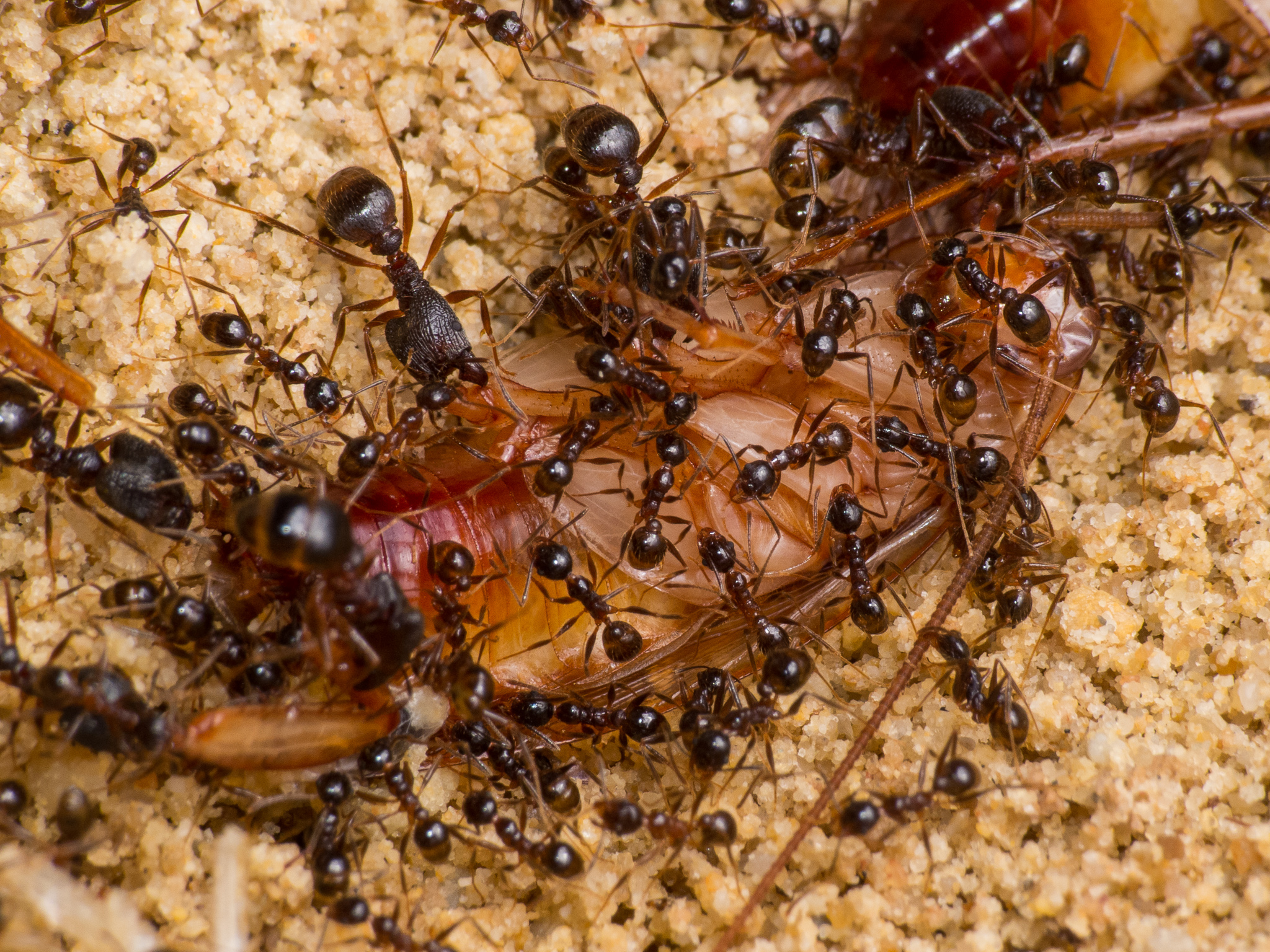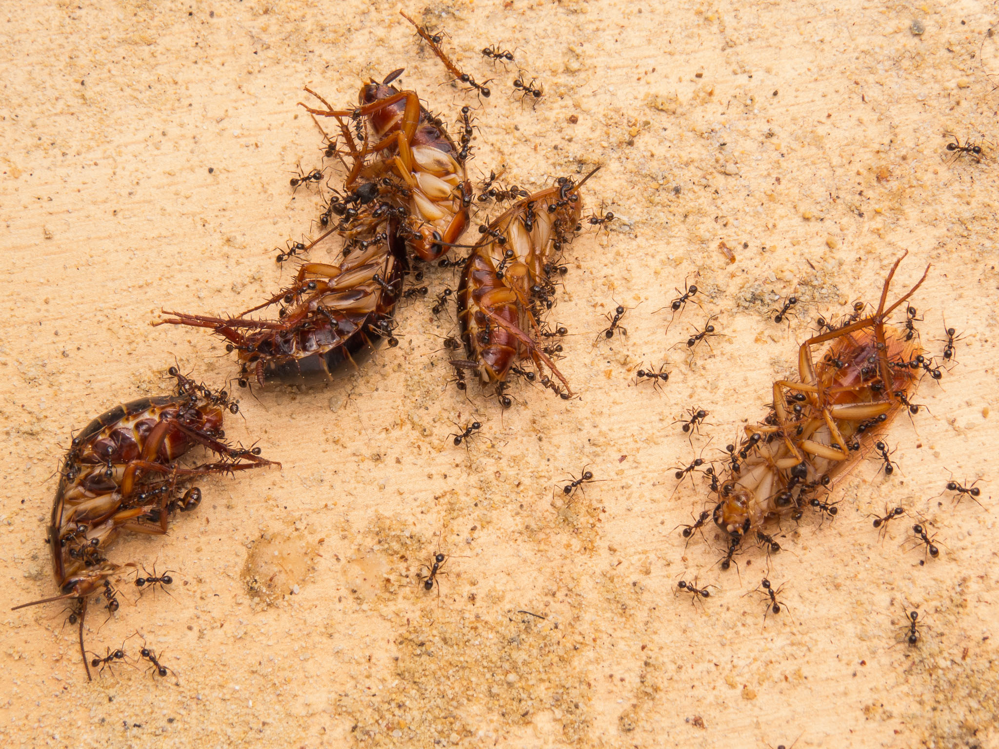 Wie man sieht scheinen die kleinen Minor-Arbeiterinnen eine Vorliebe fĂĽr die FĂĽhler der Schaben zu haben: