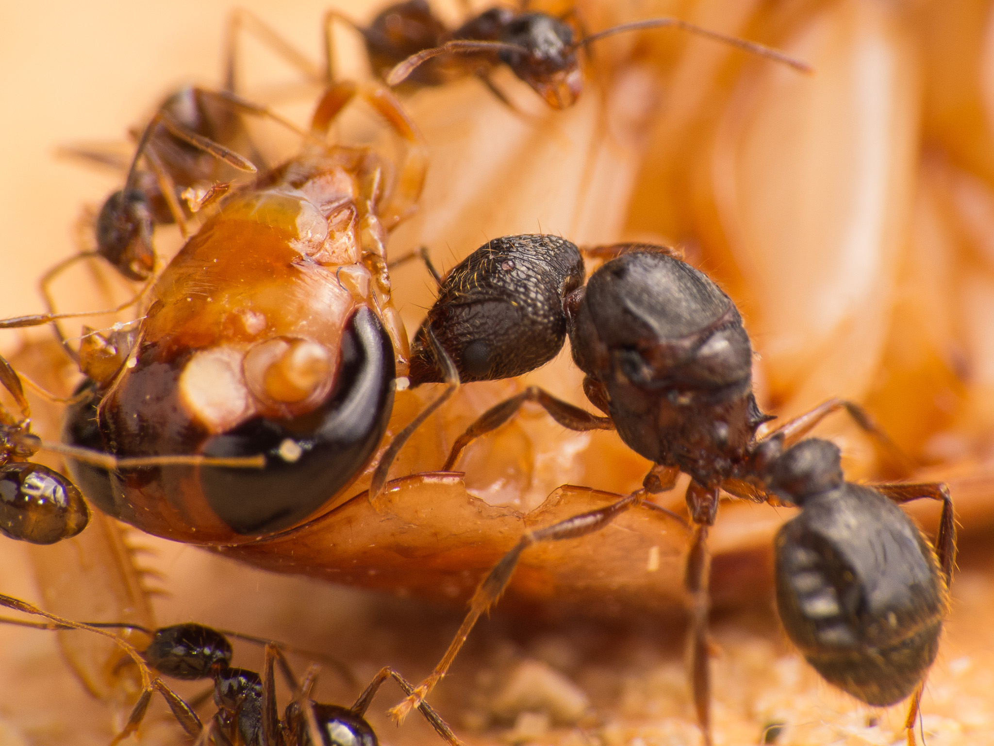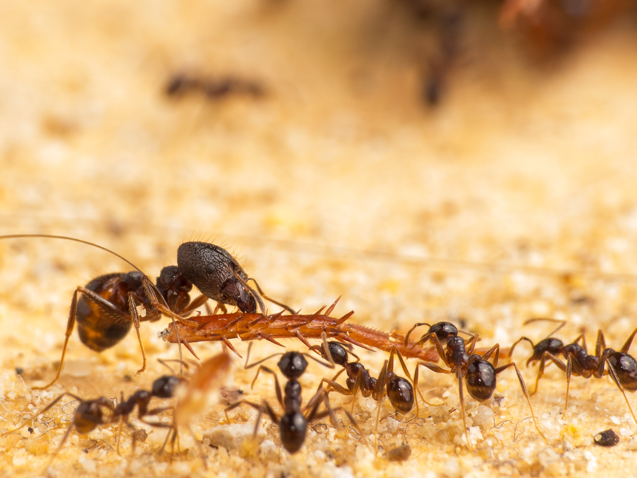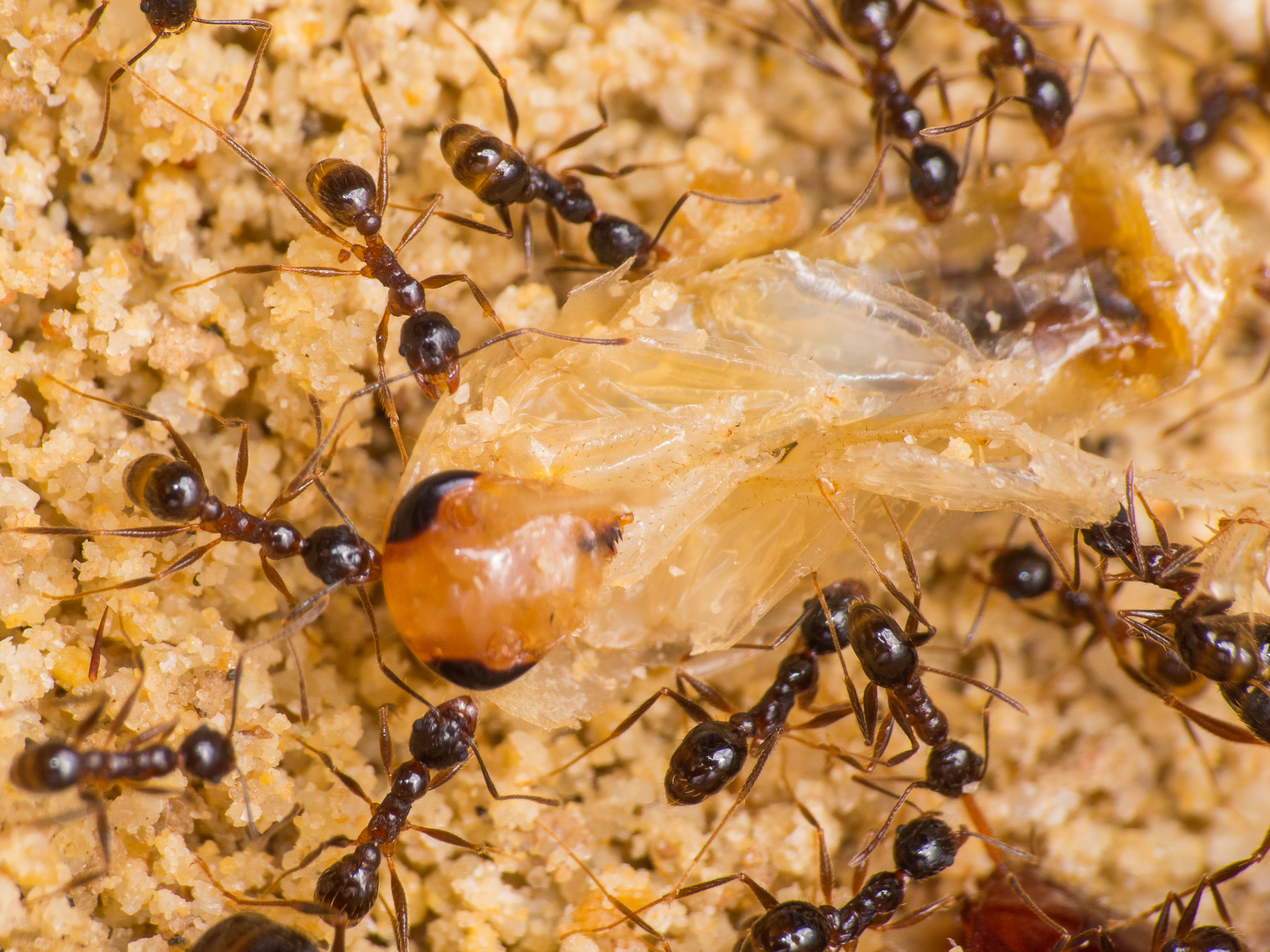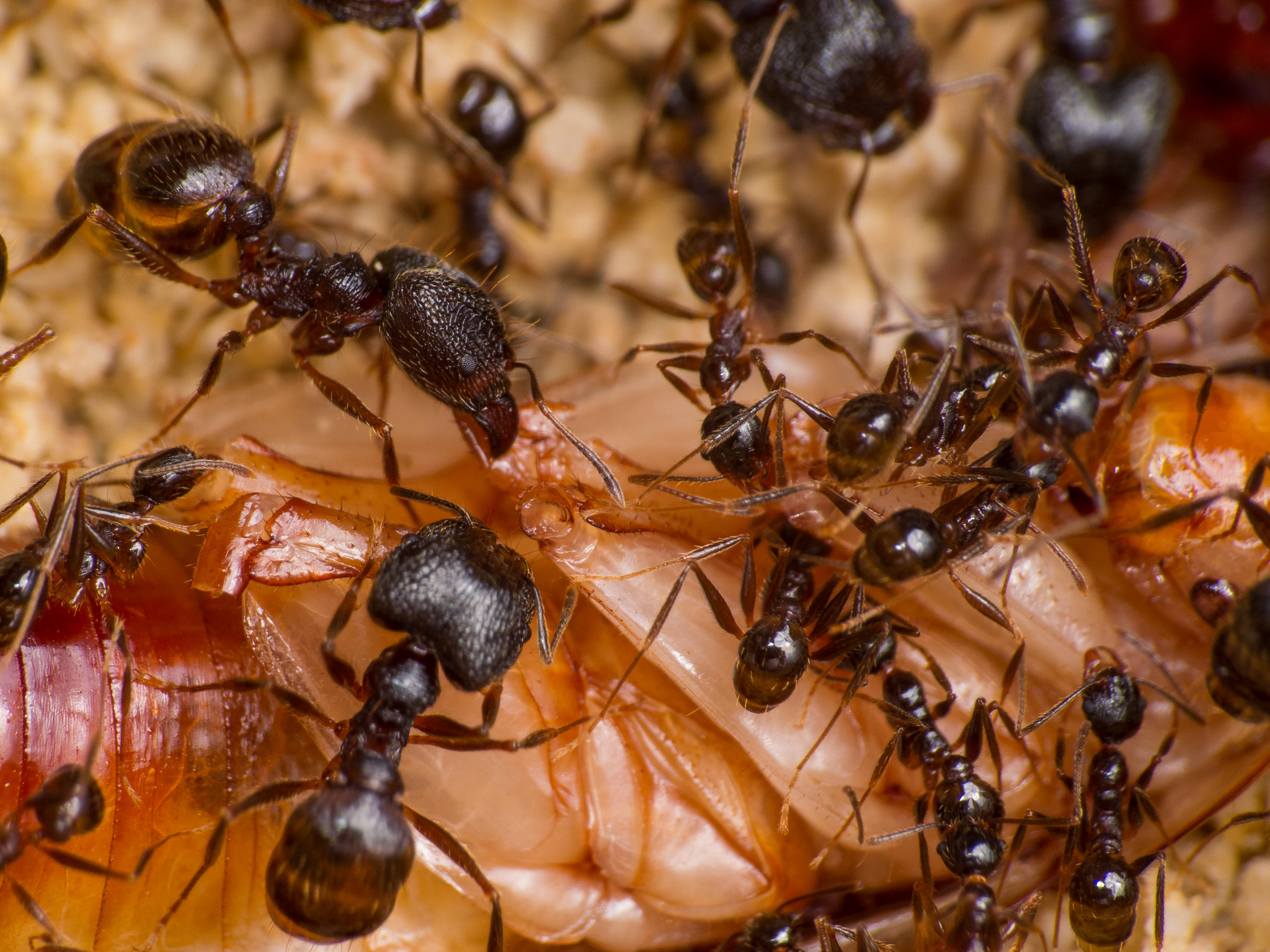 Wie man sieht scheinen die kleinen Minor-Arbeiterinnen eine Vorliebe fĂĽr die FĂĽhler der Schaben zu haben: