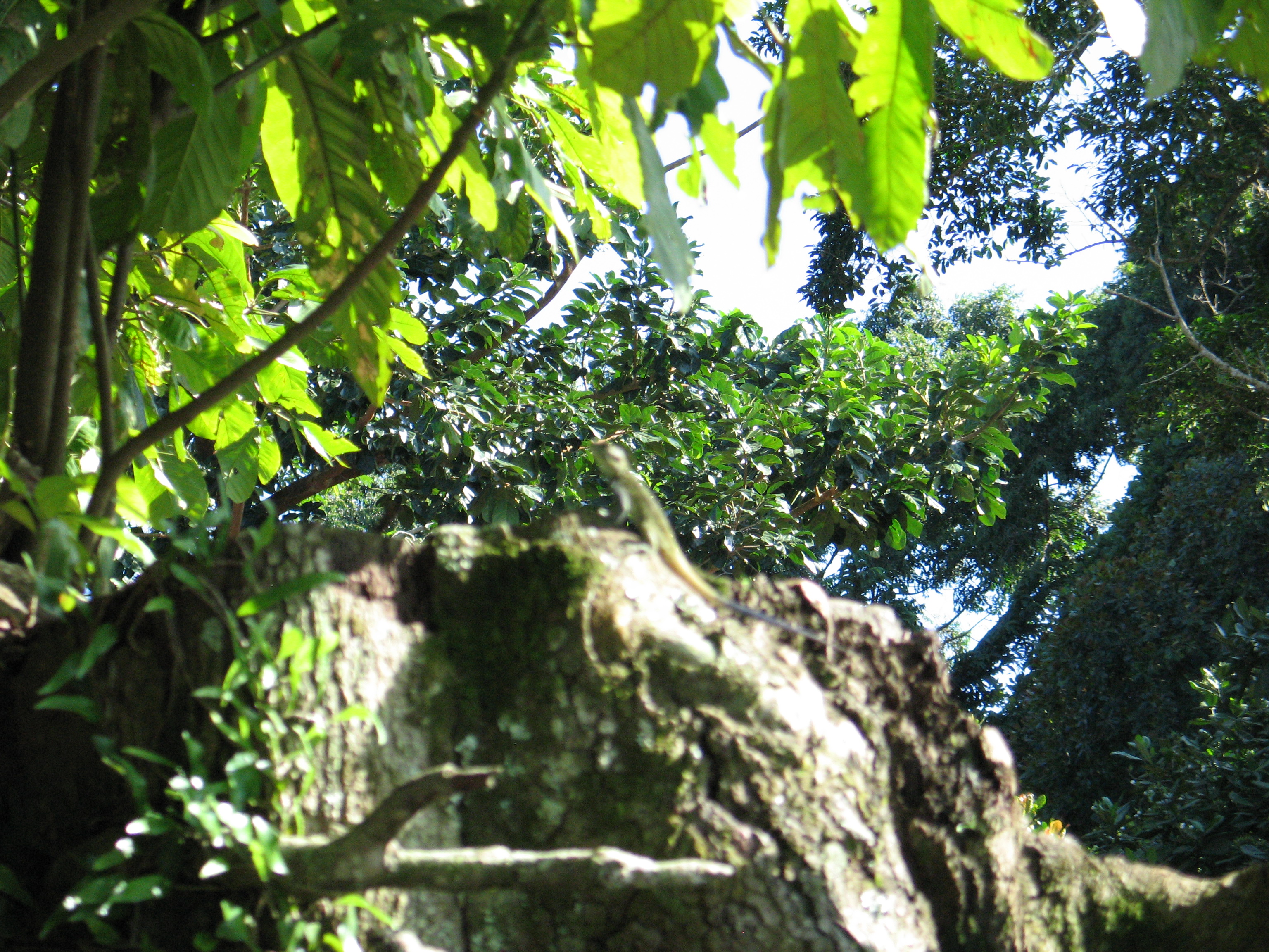 Die "halb so groß wie unsere" sind, wie bereits vor der Reise vermutet, Pheidole. An diversen Pheidolen mangelt es überhaupt nicht. Man verwendet sie, um zu sehen, ob das Obst noch gut ist. Ist es überreif, entsteht innerhalb höchstens einer Stunde eine solide Ameisenstraße. Überall, spätestens alle 5m, unabhängig davon, ob man sich drinnen oder draußen befindet, findet man einen ihrer Müllhaufen. Spannend sind diese Haufen nicht: sie haben einen Durchmesser von 3-5 cm und das war es dann. Diese Ameisen haben keinen Vertrag damit, in verschlossene Erdnussbutter oder Schokoladencremegläser zu klettern. Für anständige Bilder reichte meine Kamera aber einfach nicht aus.