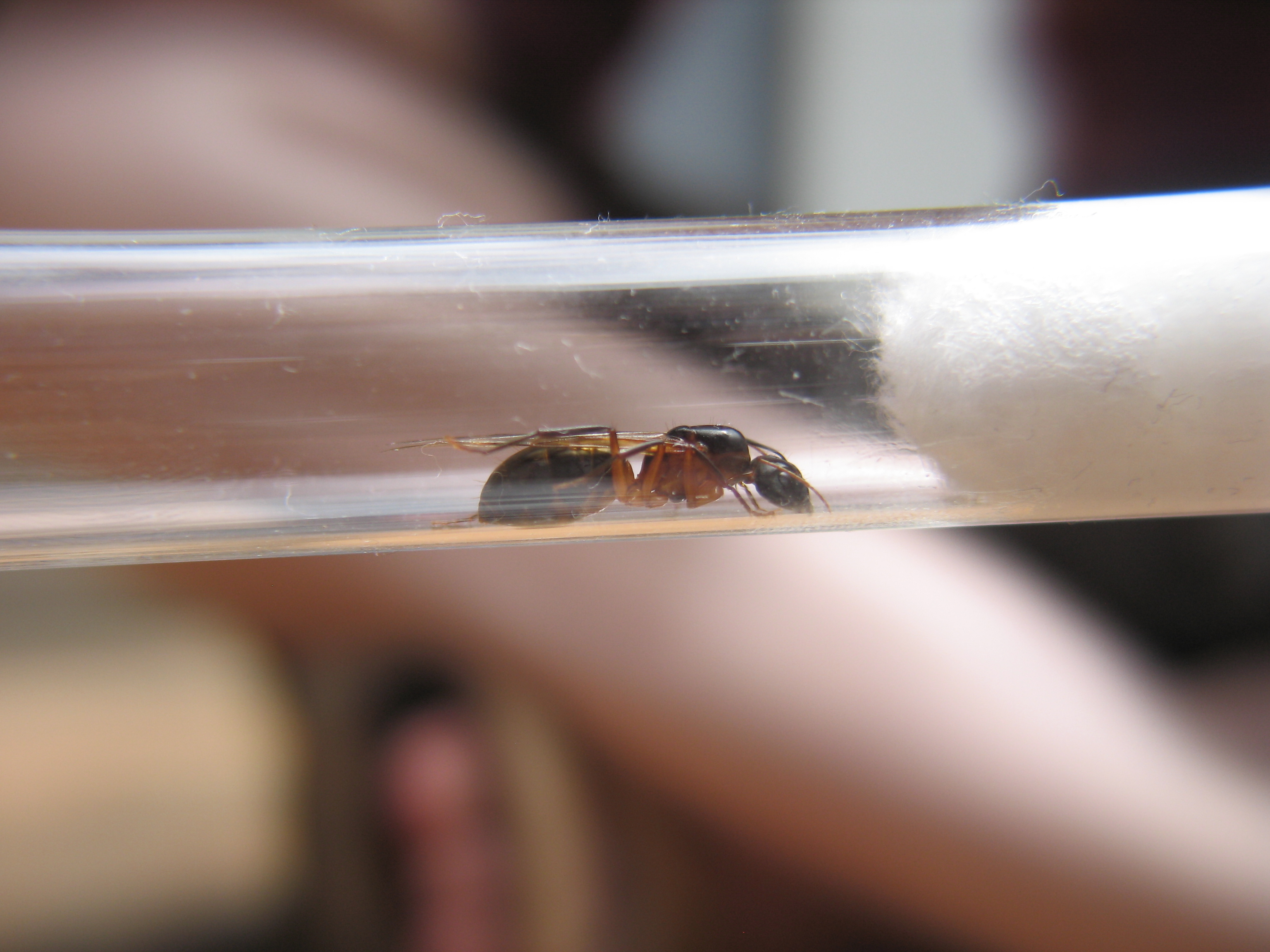 An meinem letzten Tag (Kamera natürlich schon im Koffer) auf dem Weg zum Flughafen fand ich in einem Stückchen Holz sogar ein Nest von so etwas wie Temnothorax oder Leptothorax