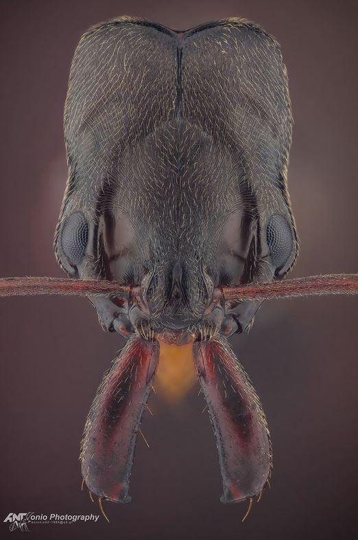 Schichtfotographie ist eine wunderschöne Sache, habe ich im Studium auch an Ameisen machen dürfen. Die tollsten und detailreichsten Bilder bekommt man damit. Es steckt allerdings sehr viel mehr Arbeit (und sehr viel mehr Bilder) hinter jedem Bild, als man denkt. Ich weiß nicht, ob modernere Geräte es leichter können, aber vor 15 Jahren hat man die hochauflösende Kamera programmiert, eine Menge Bilder in winzigen und gleichbleibenden Abständen zu machen (mit jeweils Mikrometern Unterschied), deren scharfe Ebenen dann mit viel Rechenleistung zu einem im gesamten scharfen Bild verschmolzen worden sind. Damals waren noch viele manuelle Korrekturen nötig, um Echos oder Schatten aus den Bildern zu entfernen. Bis man ein solch schönes Portrait hatte, konnte einige Zeit vergehen.
