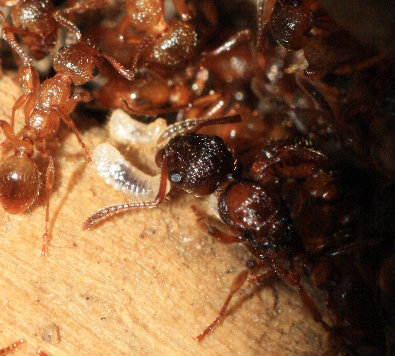 #1 Myrmica sp. (fĂŒttern von Larve) - Fotos