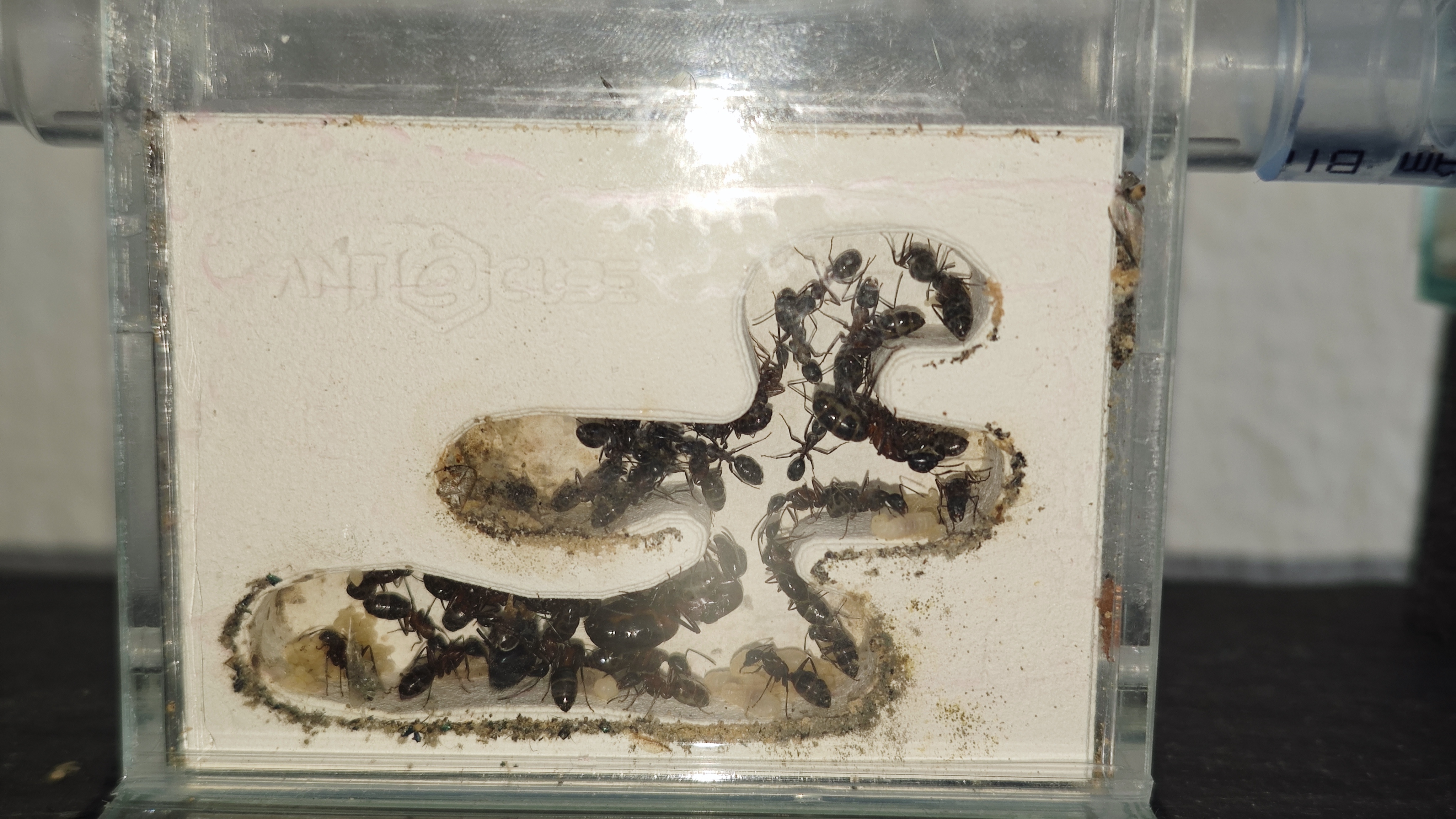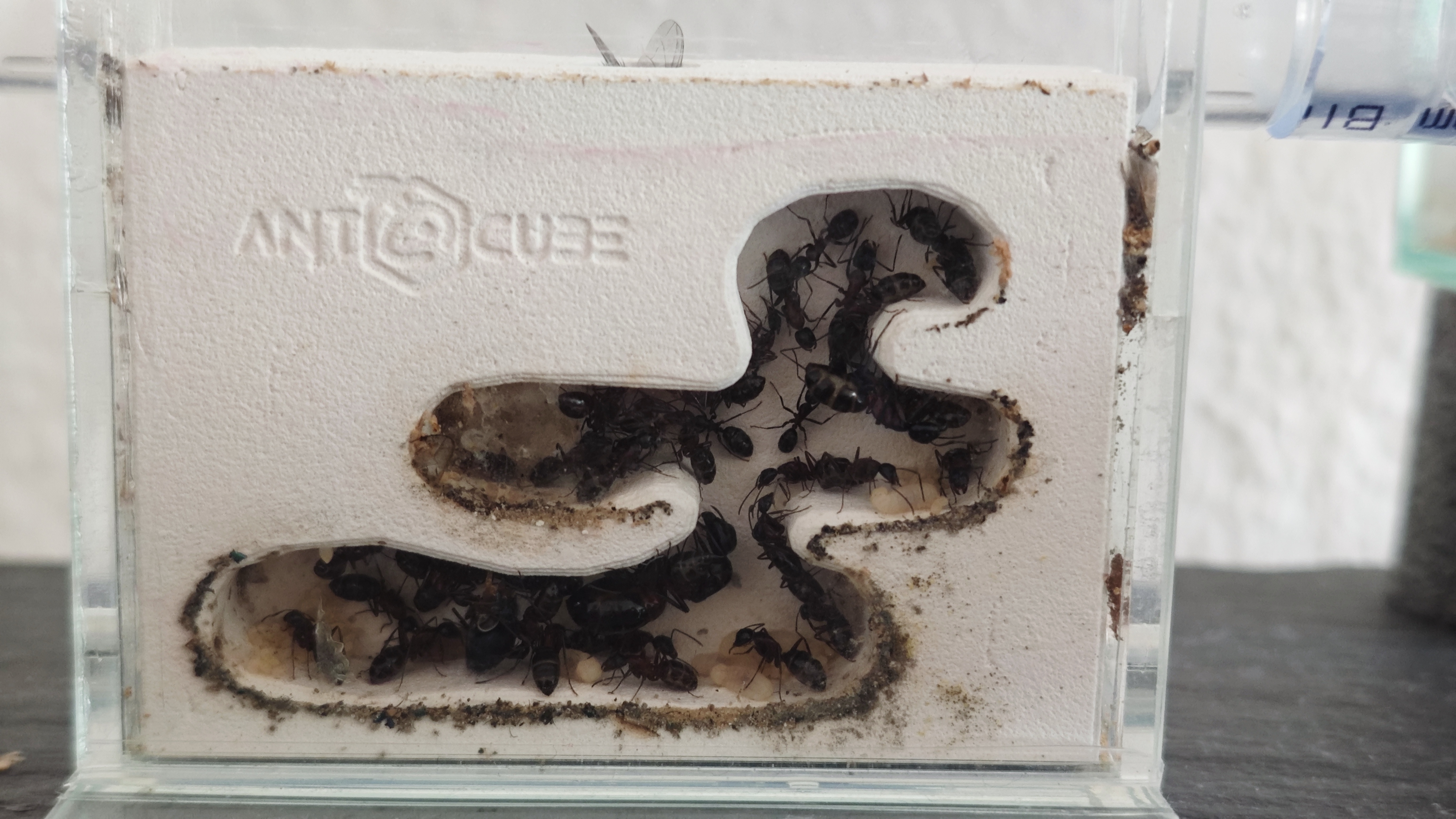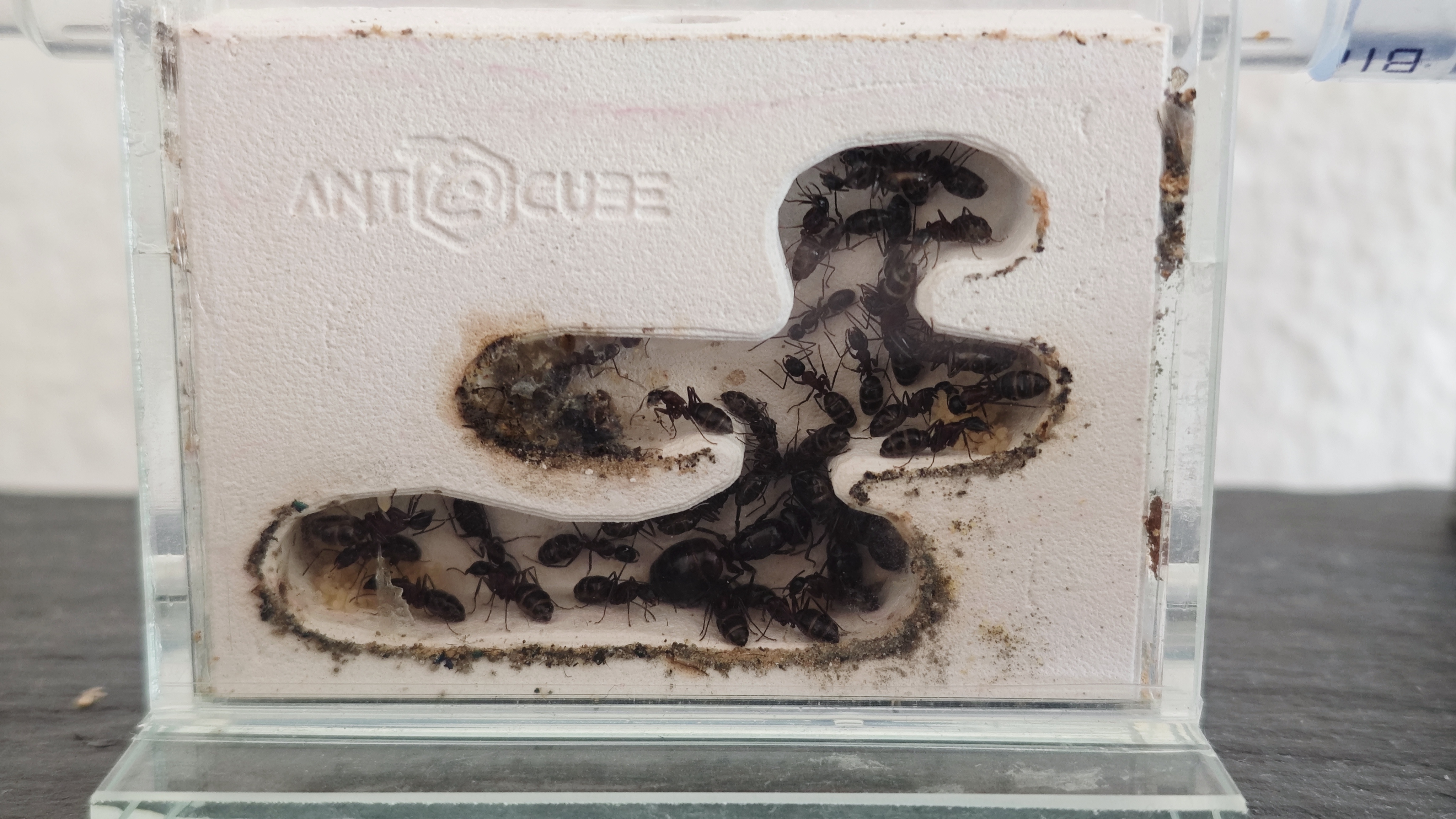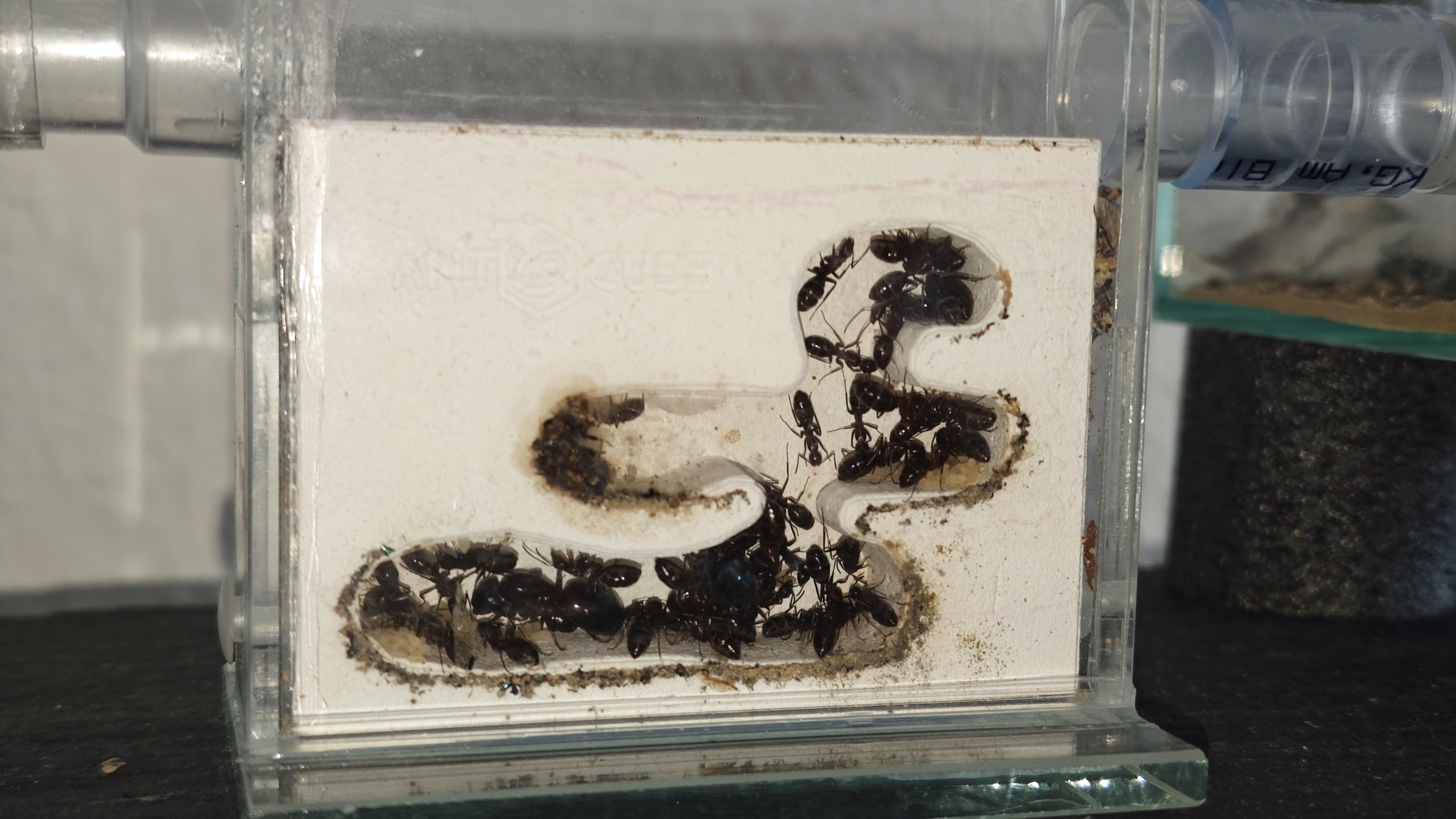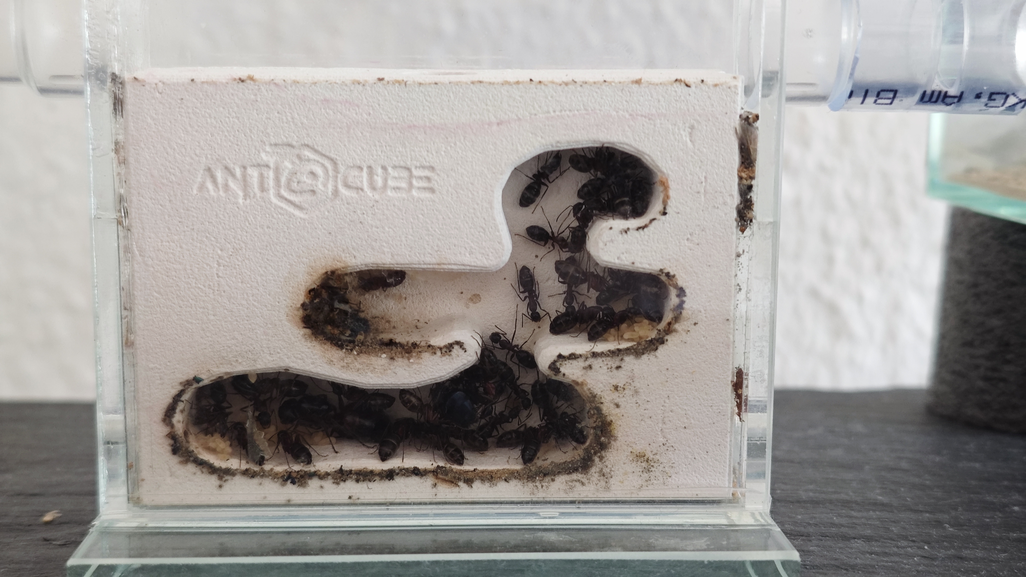 Eine erste Majore ist aufgetaucht. Sie ist fast doppelt so groĂź wie eine normale Arbeiterin. Leider im Nest nicht richtig erkennbar.