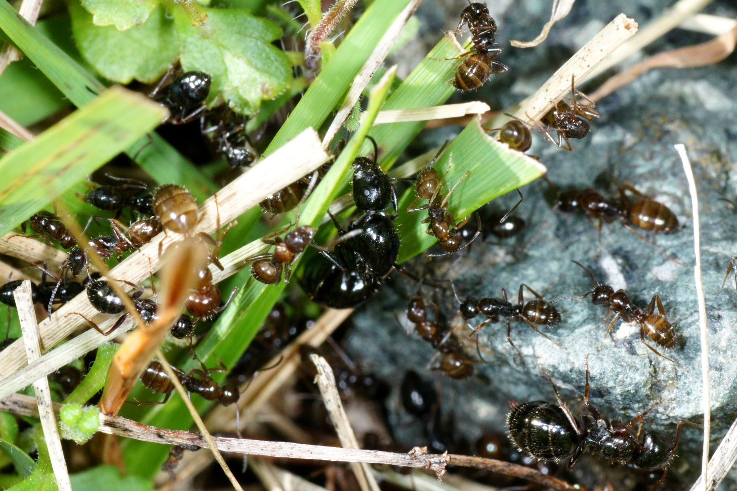 Nun, ich habe 2 Nester v. Camponotus piceus im Steingarten, wie aus mehreren Beiträgen ersichtlich wird und zwar schon seit 2007. Aus Nest I ist damals eine Gyne mit einem Teil der Arbeiter abgewandert und hat Nest II gegründet. Beide Nester produzieren seither Arbeiterinnen u. mehr od. einmal weniger Geschlechtstiere (http://www.ameisenforum.de/beobachtungen-im-freiland/47135-fast-synchrones-schw-rmen-bei-c-lateralis-u-c-piceus.html).
