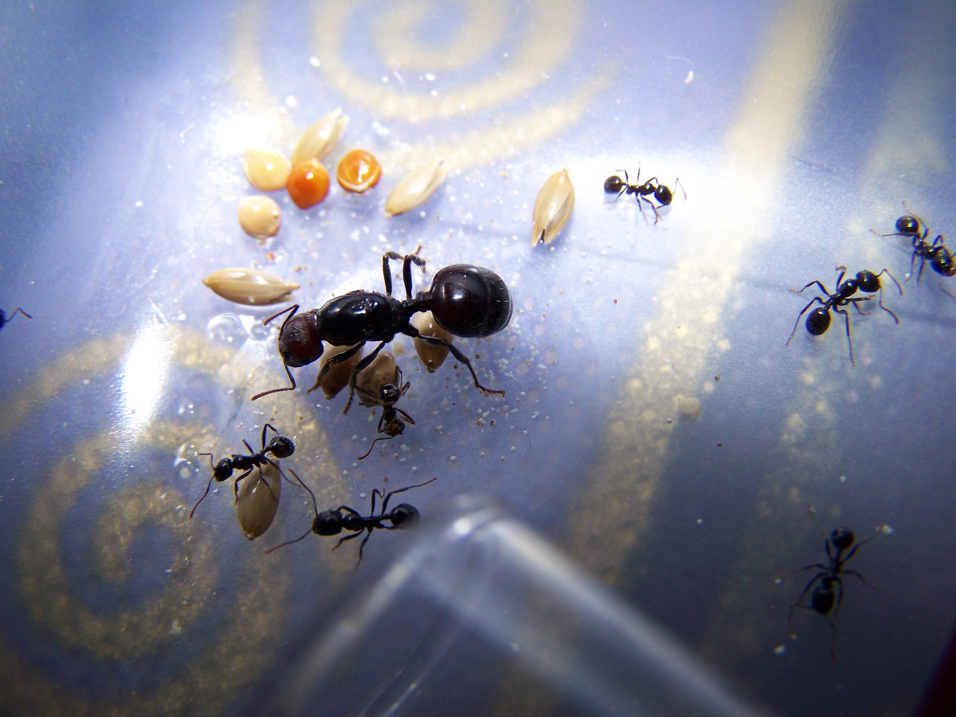 ich habe heute meine Messor barbarus mal beim Mittagessen bestaunen dĂŒrfen. Ich habe mir angeguckt, wie sie ihre Körner knacken und schĂ€len. Leider sind die Fotos von ihrem "Ameisenbrot" nichts geworden