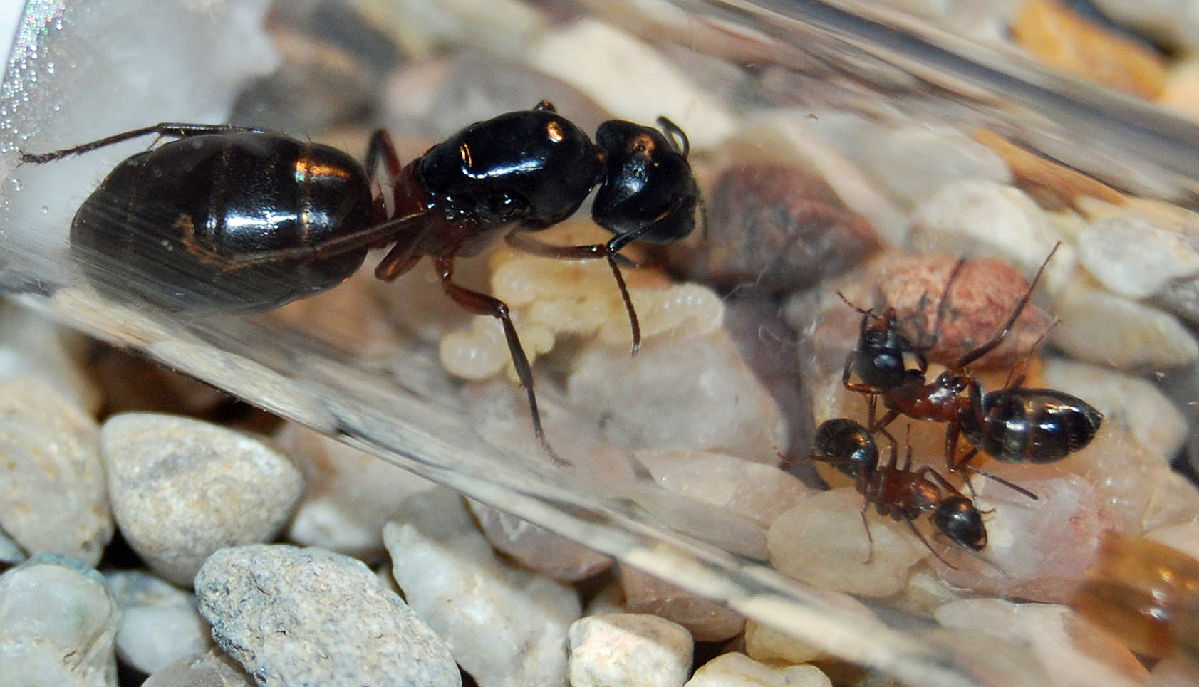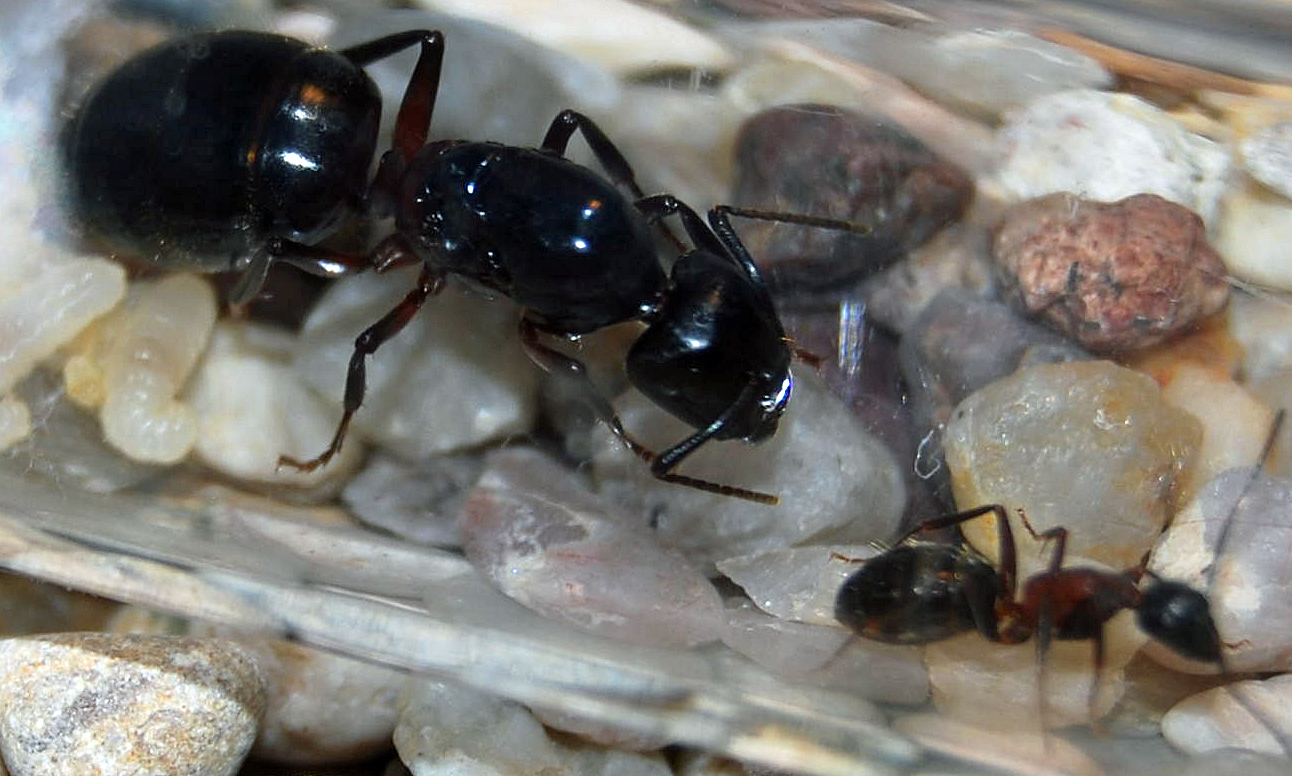 Hehe, so bin ab heute auch ein stolzer Besitzer einer Camponotus ligniperda- Kolonie. Sie besteht aus einer Gyne und 3 Imagines und ca 3 groĂen und 5 kleinen Larven . 4 Eier sind auch vorhanden.