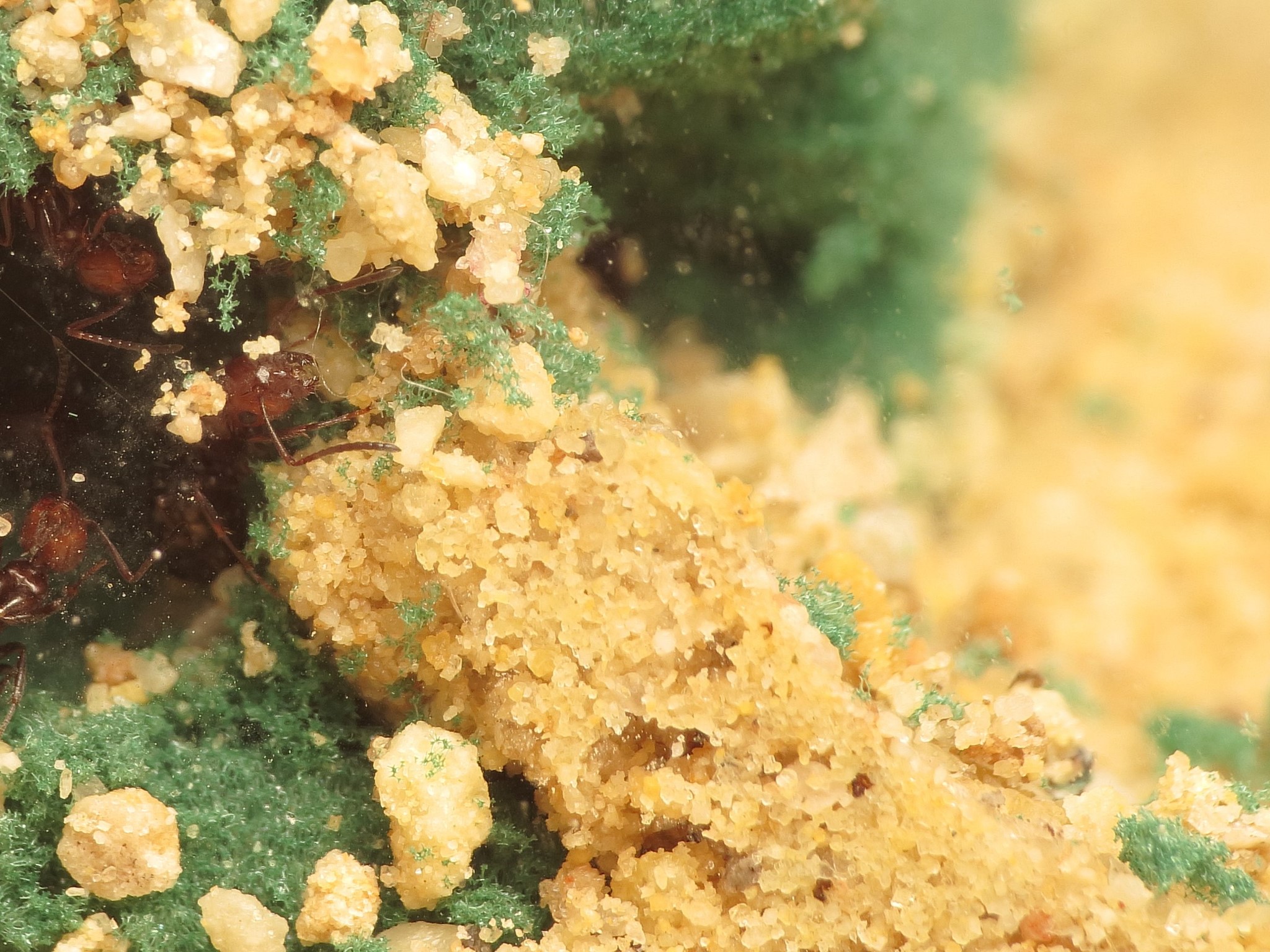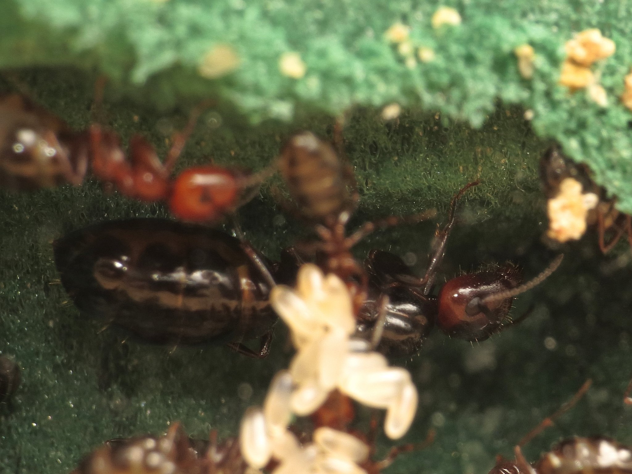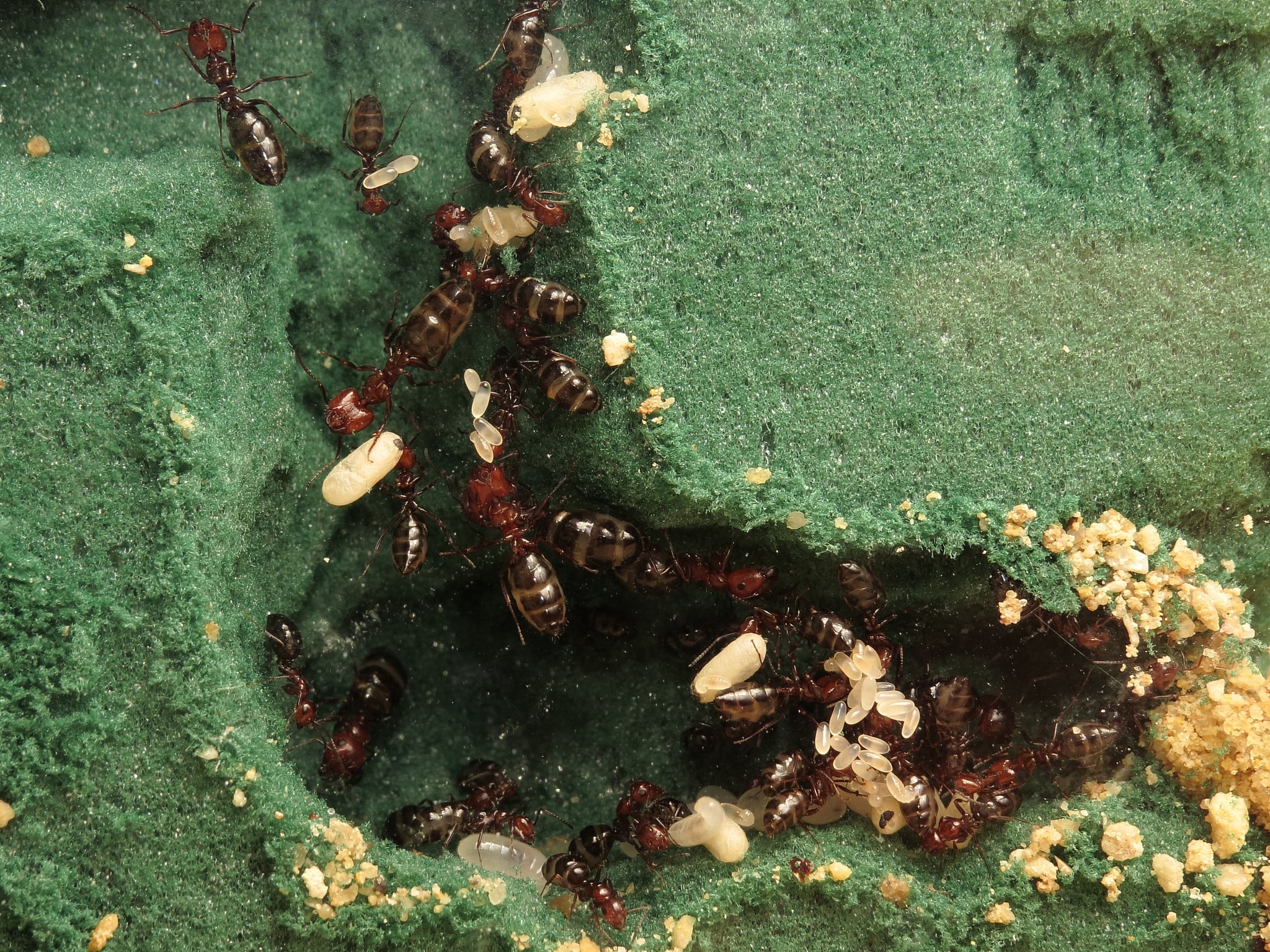 Auch ansonsten geht es der Kolonie momentan recht gut. Sie scheinen auĂerdem recht wĂ€rmeliebend zu sein, trotz derzeit heiĂer Temperaturen habe ich das Nest teilweise mit einer WĂ€rmematte erwĂ€rmt. Wie man sieht lagern sie die