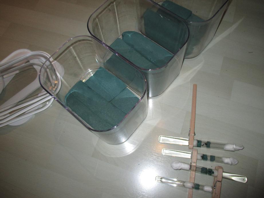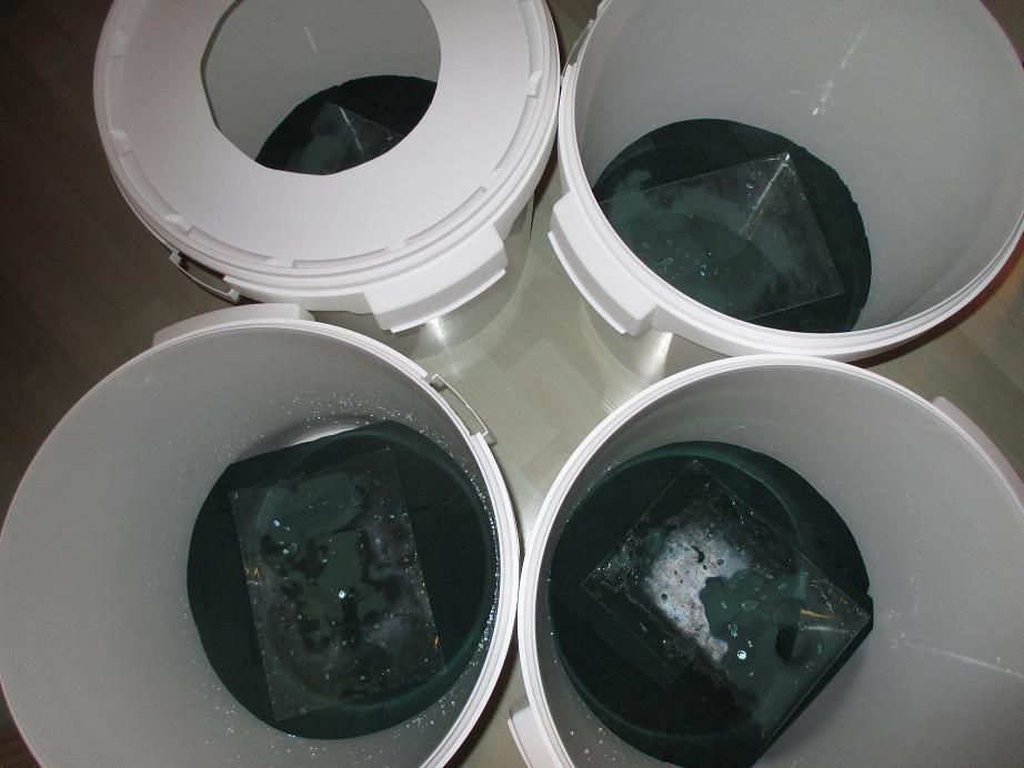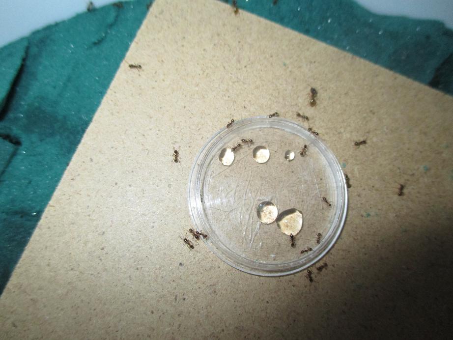Die nächsten Schritte wären, Deckel auf der Innenseite mit Paraffinöl zu bestreichen und anschließend auf die Behälter zu machen, RG-Wassertanks verteilen und ja, dann anschließend die Kolonien umsiedeln. Werde wohl anfangs Alufolie auf die Nester legen, damit sie es auch schön dunkel darin haben.
