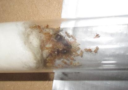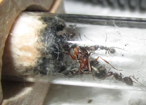 Die Pheidole pallidula Kolonie zog sich komplett in ihr RG-Nest zurück, alles sah gut aus. Keine einzige