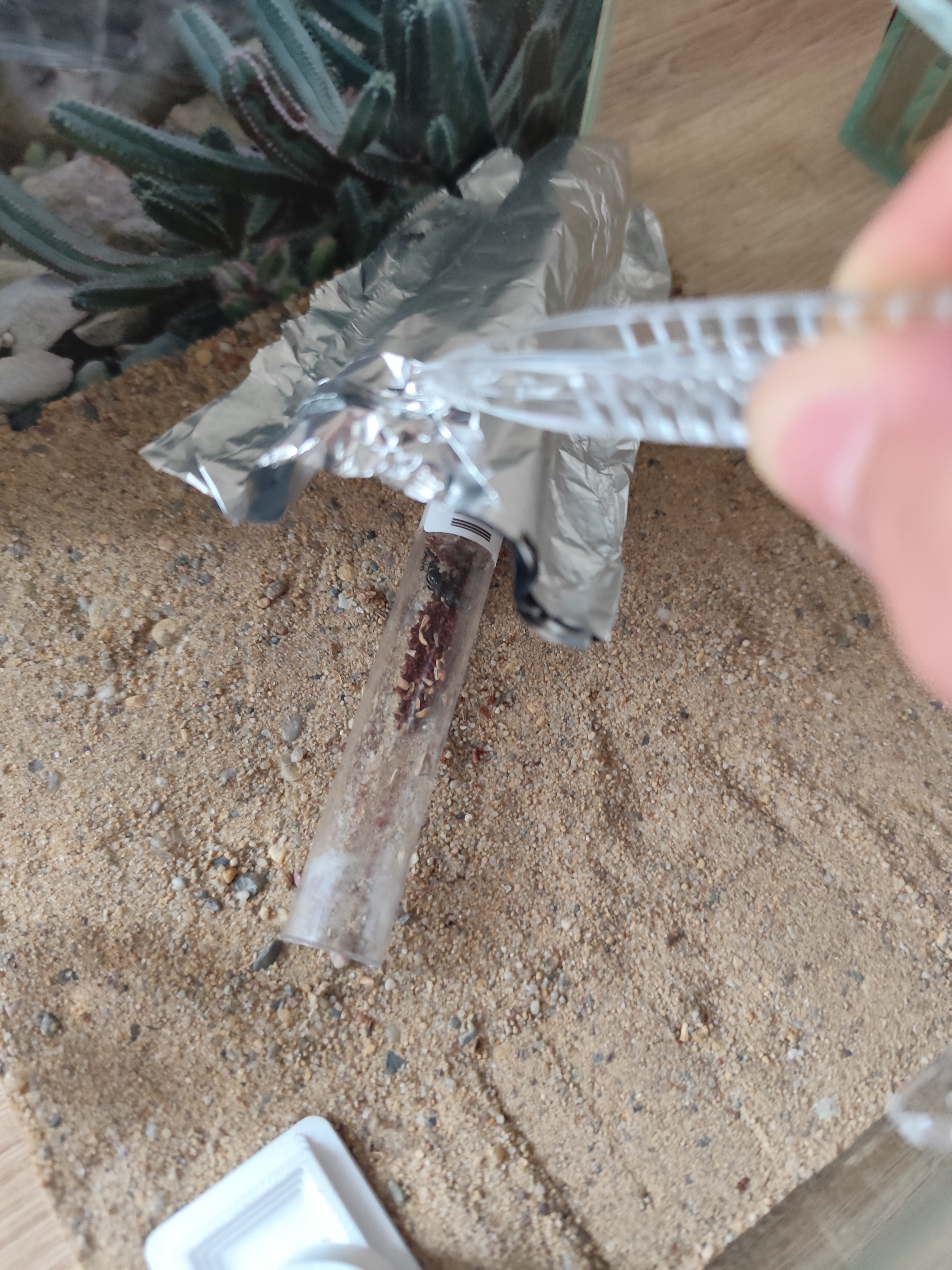 Im trockenen teil des Reagenzglases wird der Samenberg immer grösser. Es scheint fasst als wollen sie mit den Samen den weg versperren.