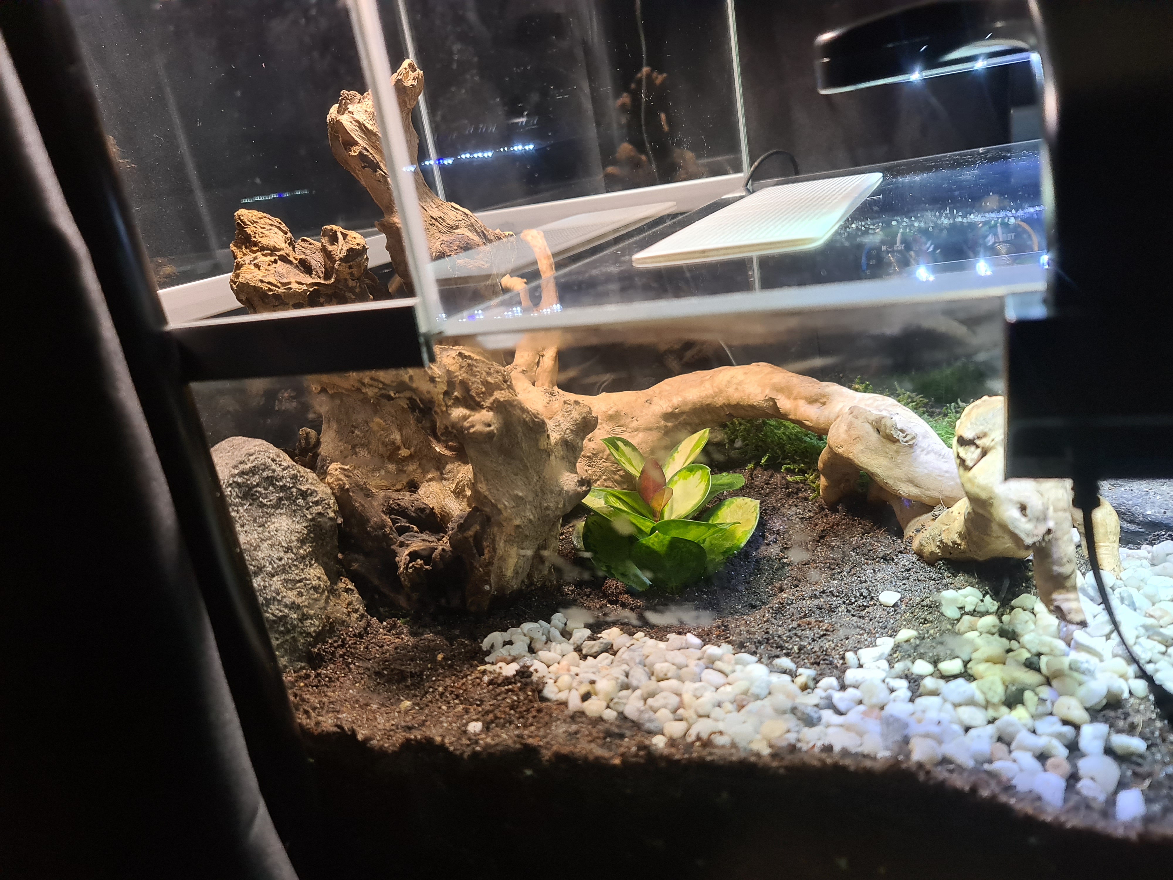 Zwei Ventilatoren sorgen für Luftzirkulation und Frischluftzufuhr. Zusätzlich gibt es ein Pflanzenlicht mit Tag-Nacht-Simulation und ein kleines Nachtlicht zum Beobachten.