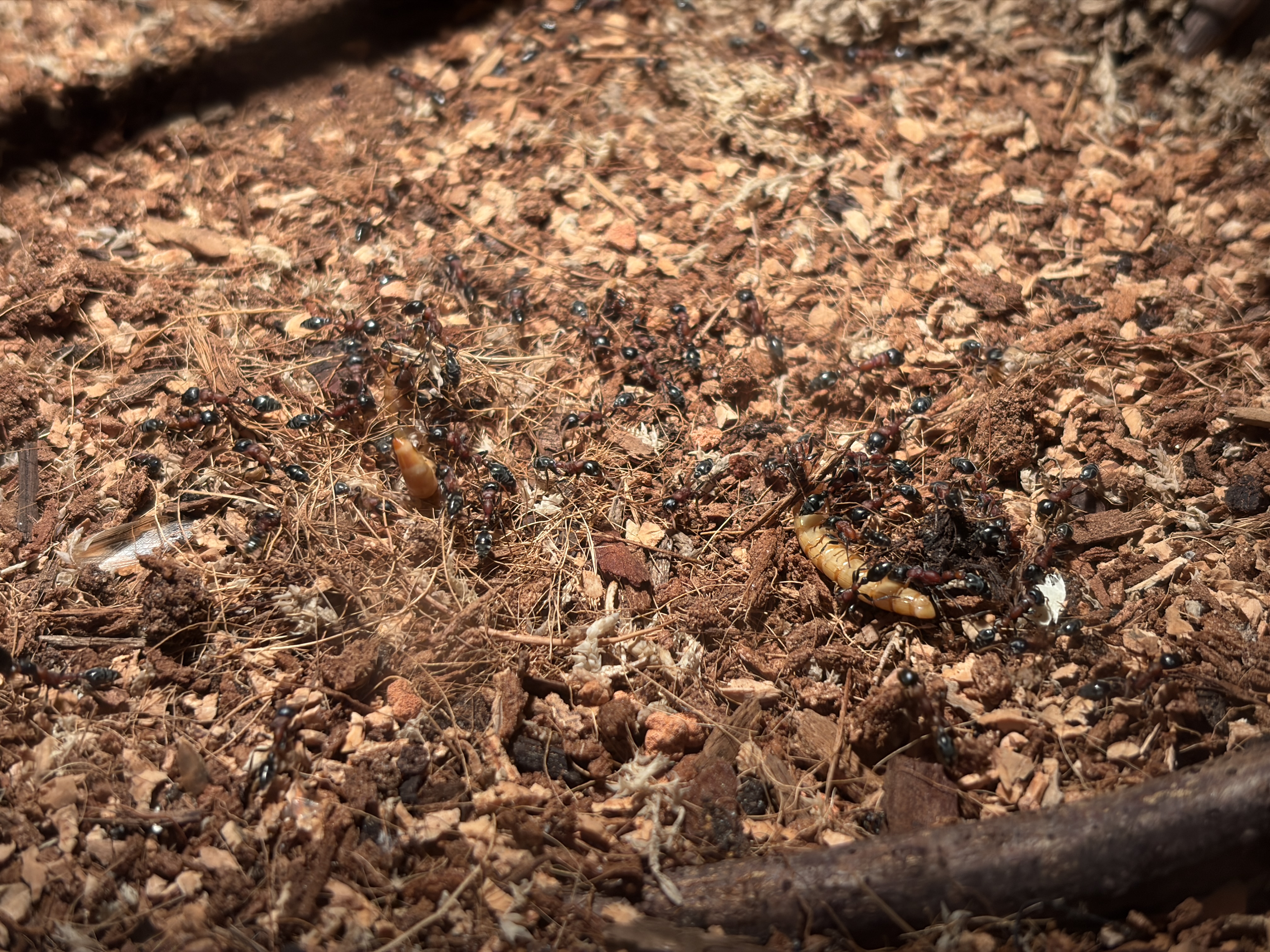 Ich habe die Kolonie alle 3 Tage mit 4 MehlwĂŒrmern gefĂŒttert.