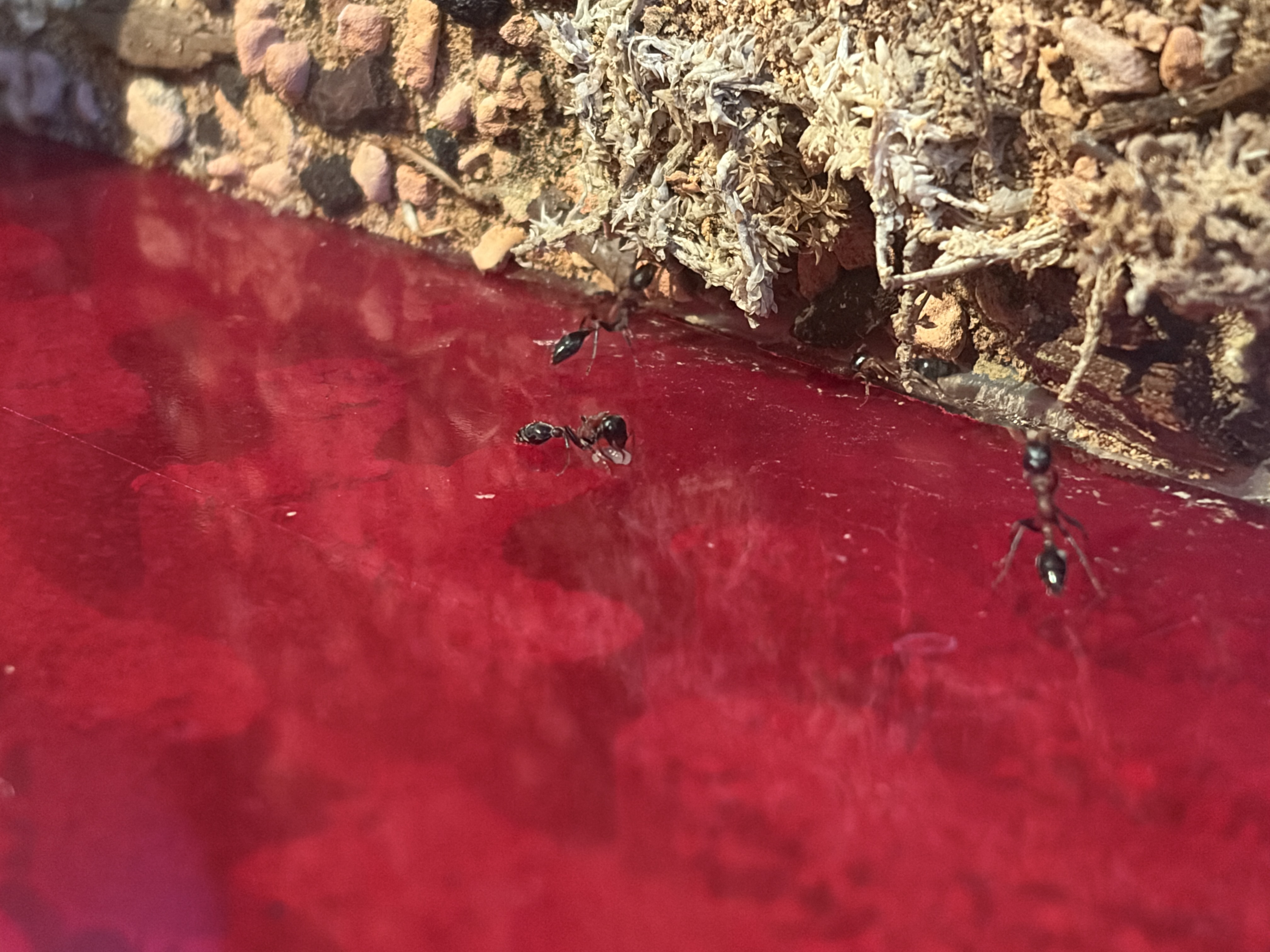 Tetraponera rufonigra kann sich mit genĂŒgend Zeit und Motivation durch Aquariumsilikon beiĂen.