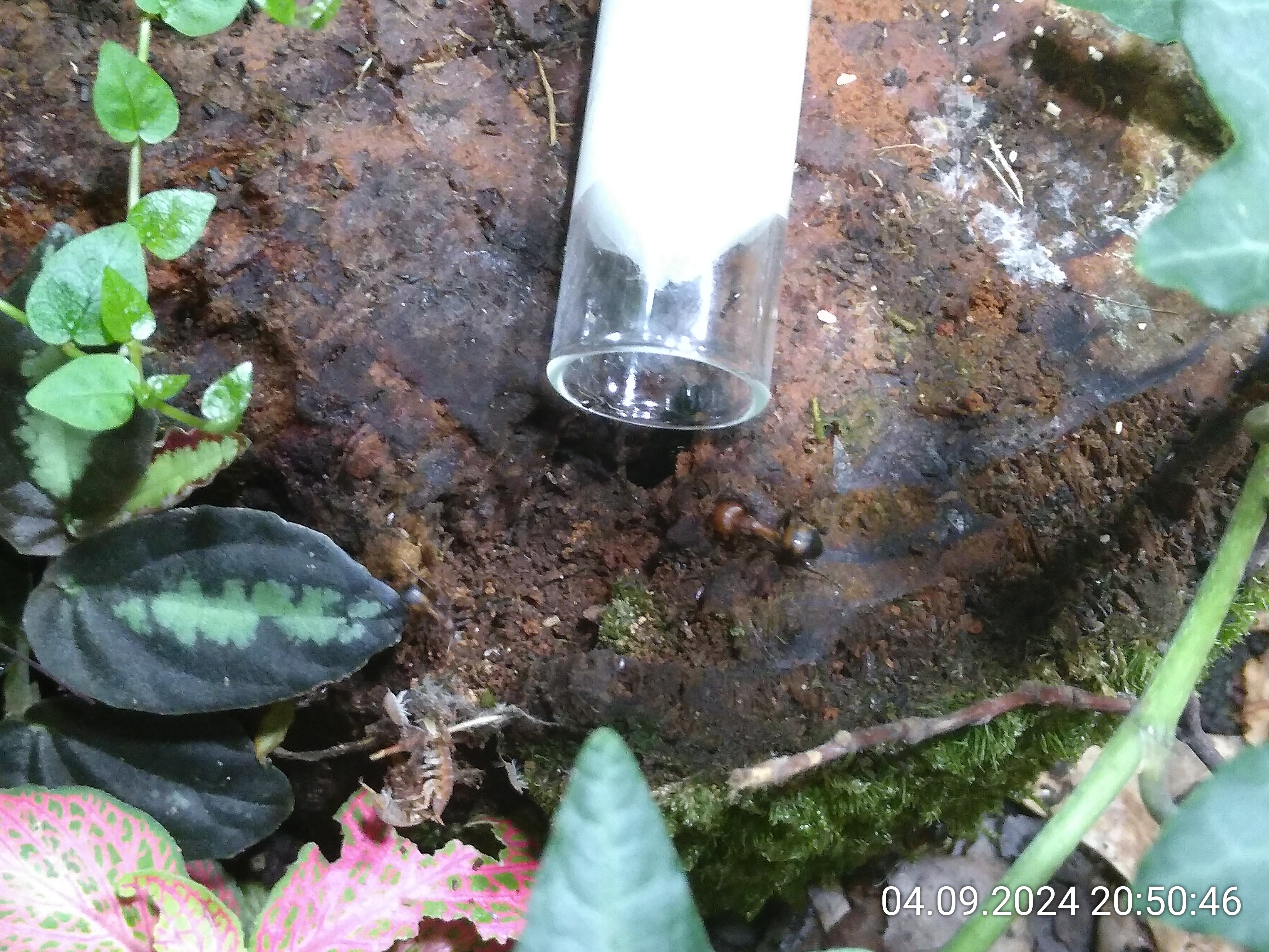 Gestern Abend wollte ich einfach mal sehen, was sich hinter der Verdunkelung so tut. Ich war ziemlich überrascht, dort Ameisen zu sehen. Nein, nicht die Schnappis, sondern Nicos. Und zwar locker 30 Stück!