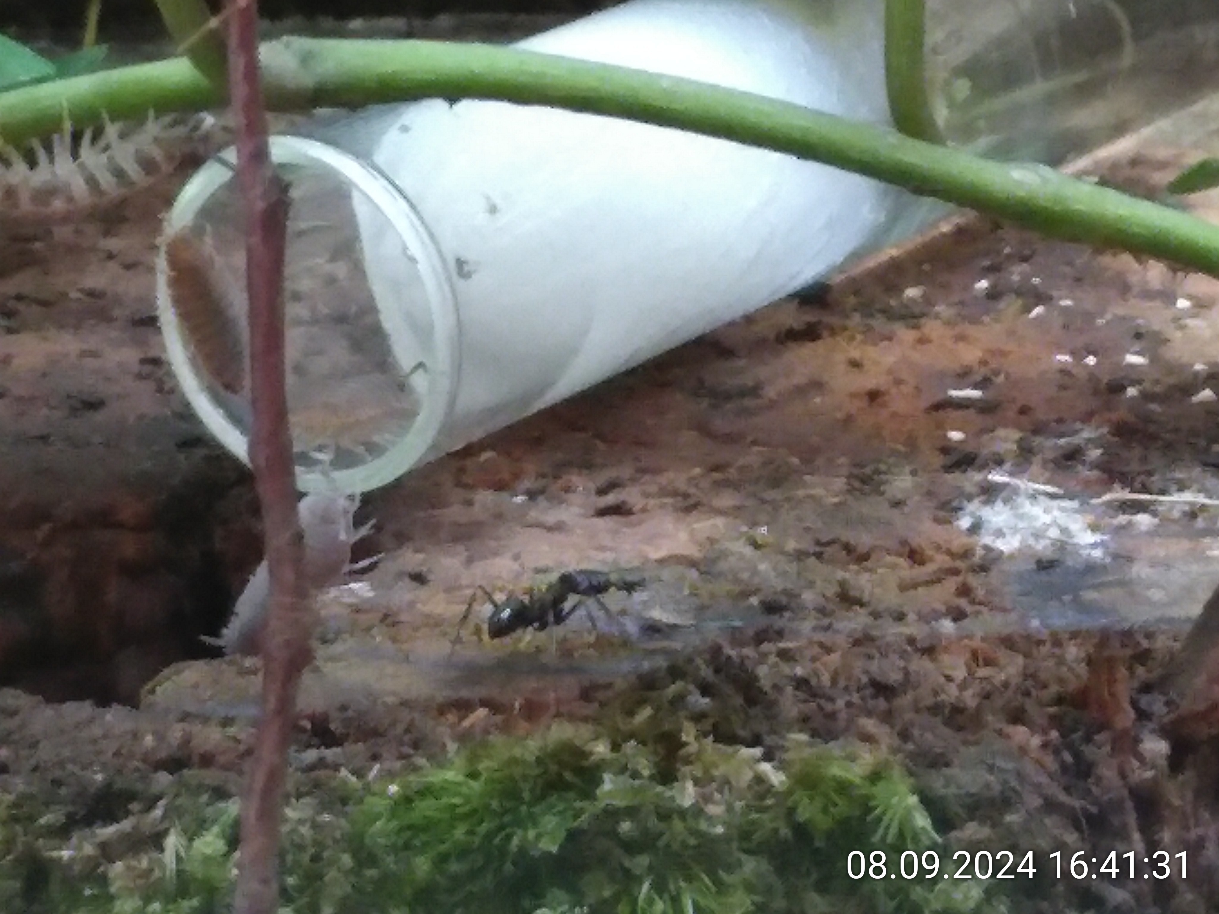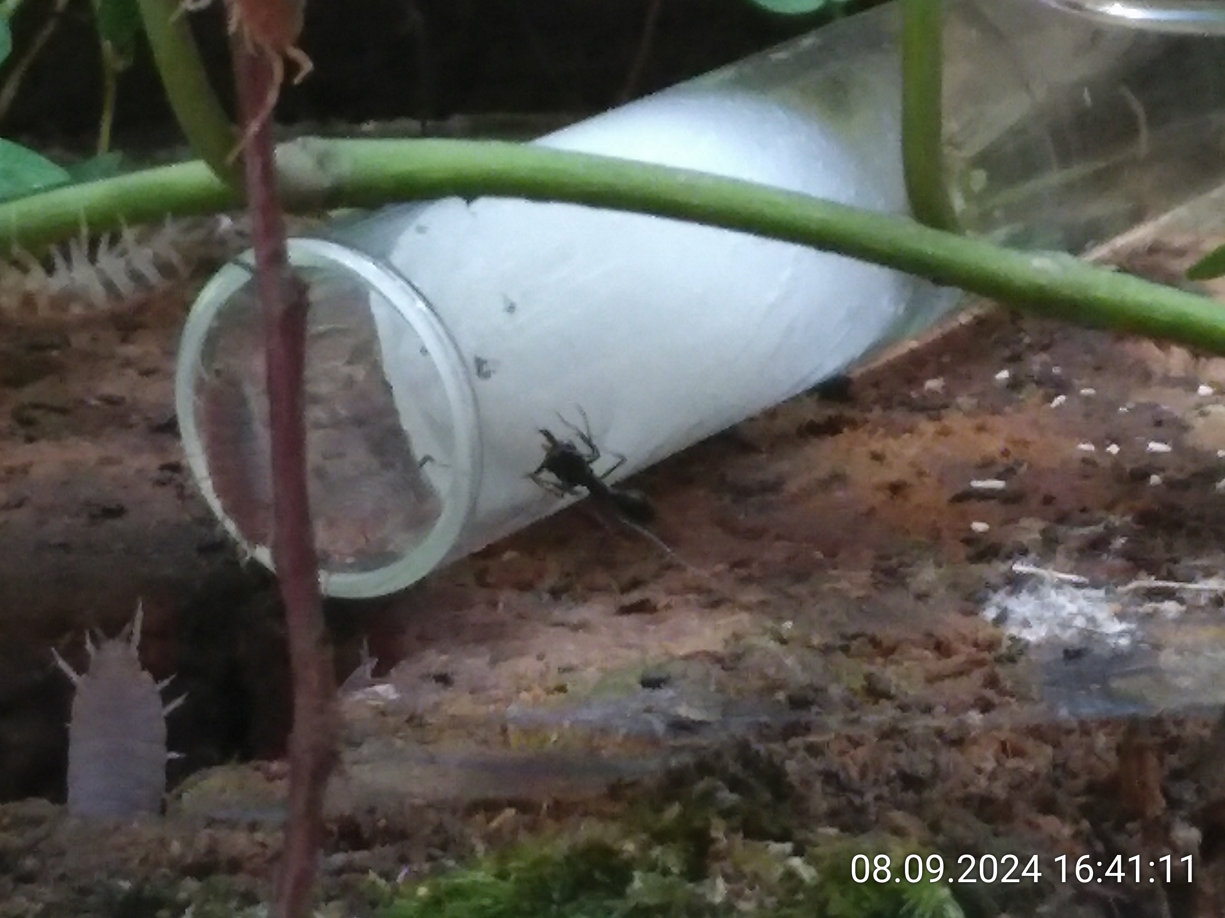 Mittlerweile fühle ich mich nicht mehr "schuldig", dass ich fast nichts für sie tun muss. Ich sehe ja, dass es reicht, ihnen eine passende Umgebung zu bieten. Sie verdursten offenbar nicht, finden Proteine und das Süße besuchen sie zumindest manchmal auch. DieBrut . die sie bei ihrem Einzug vor zwei Monaten mitgebracht haben, müsste komplett geschlüpft sein. damit hätte sich ihre Zahl auf ca. 20 erhöht. Trotzdem scheinen sie Larven aufzuziehen. Ein sehr gutes Zeichen, wenn man keinen Nesteinblick hat.