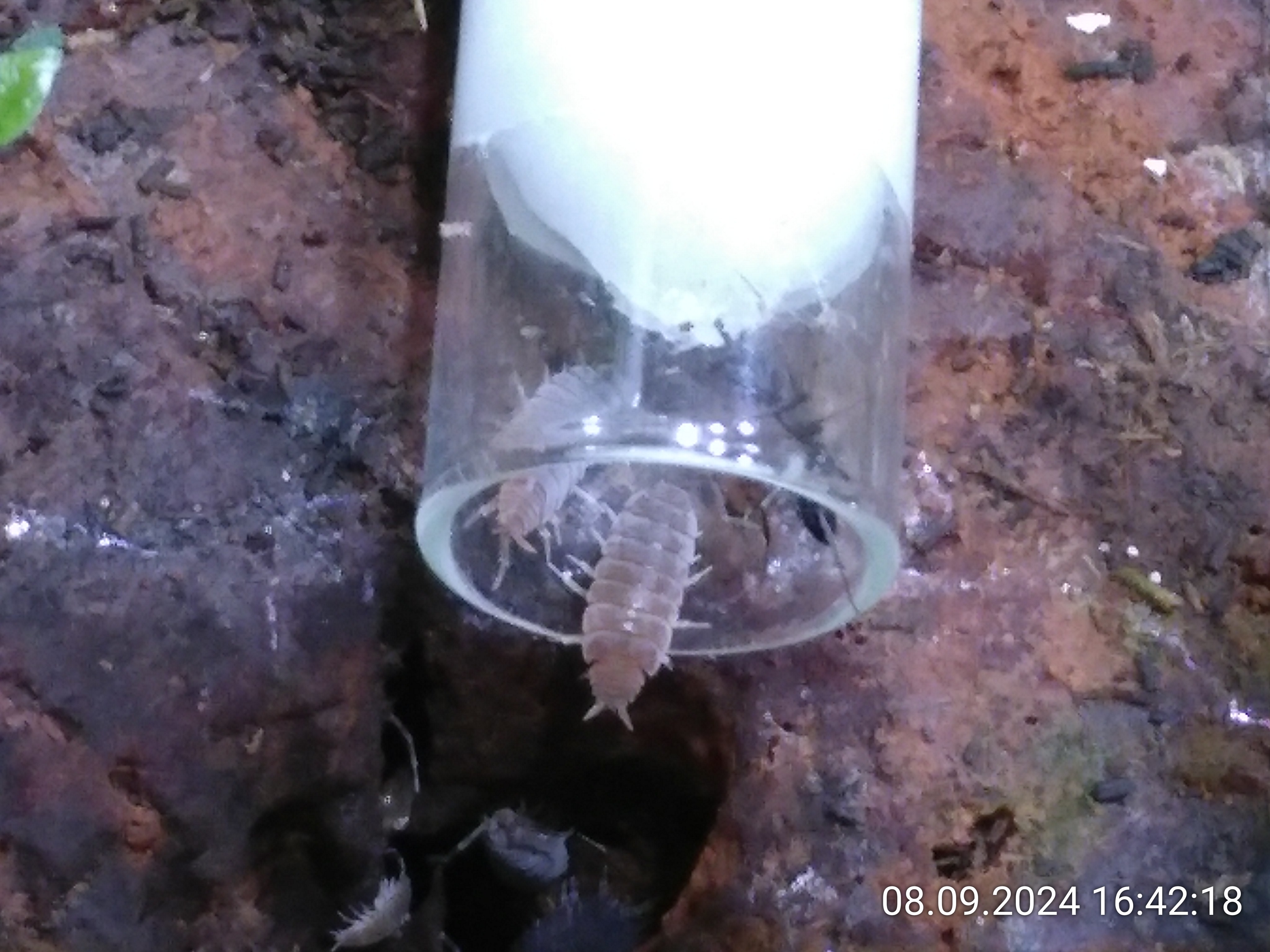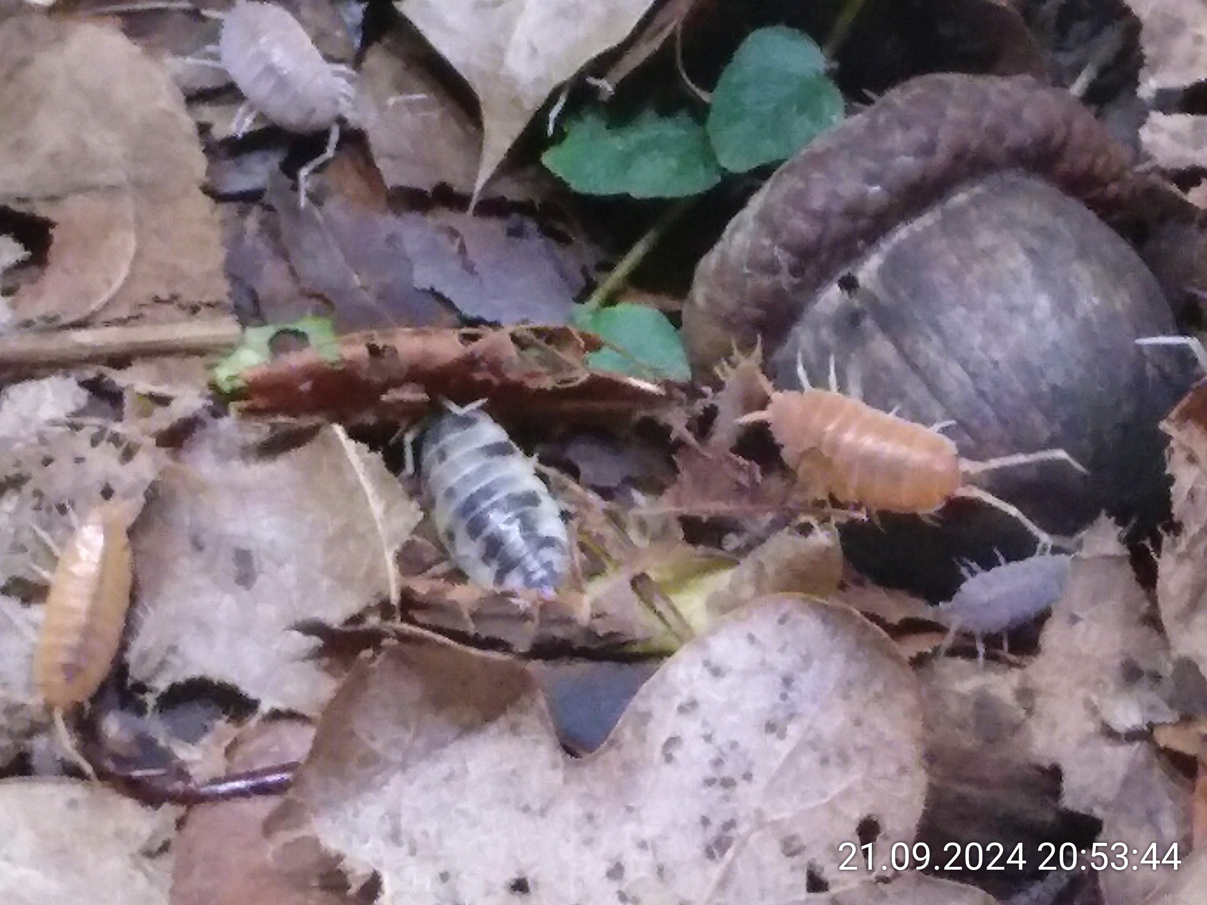 Im Moment fressen sich die Asseln durch den Teil des Baumstumpfs, wo der Eingang zum Nico-Nest war. Die letzte Nico habe ich vor ein paar Tagen umgesiedelt und danach auch keine mehr gesehen. Sie scheinen ihren Eingang auch nicht (mehr) zu verteidigen. Vielleicht war es das jetzt wirklich... Anfangs war da nur ein kleines Loch am seitlichen Teil, mittlerweile ist es ein Krater, in den mehrere Asseln passen.