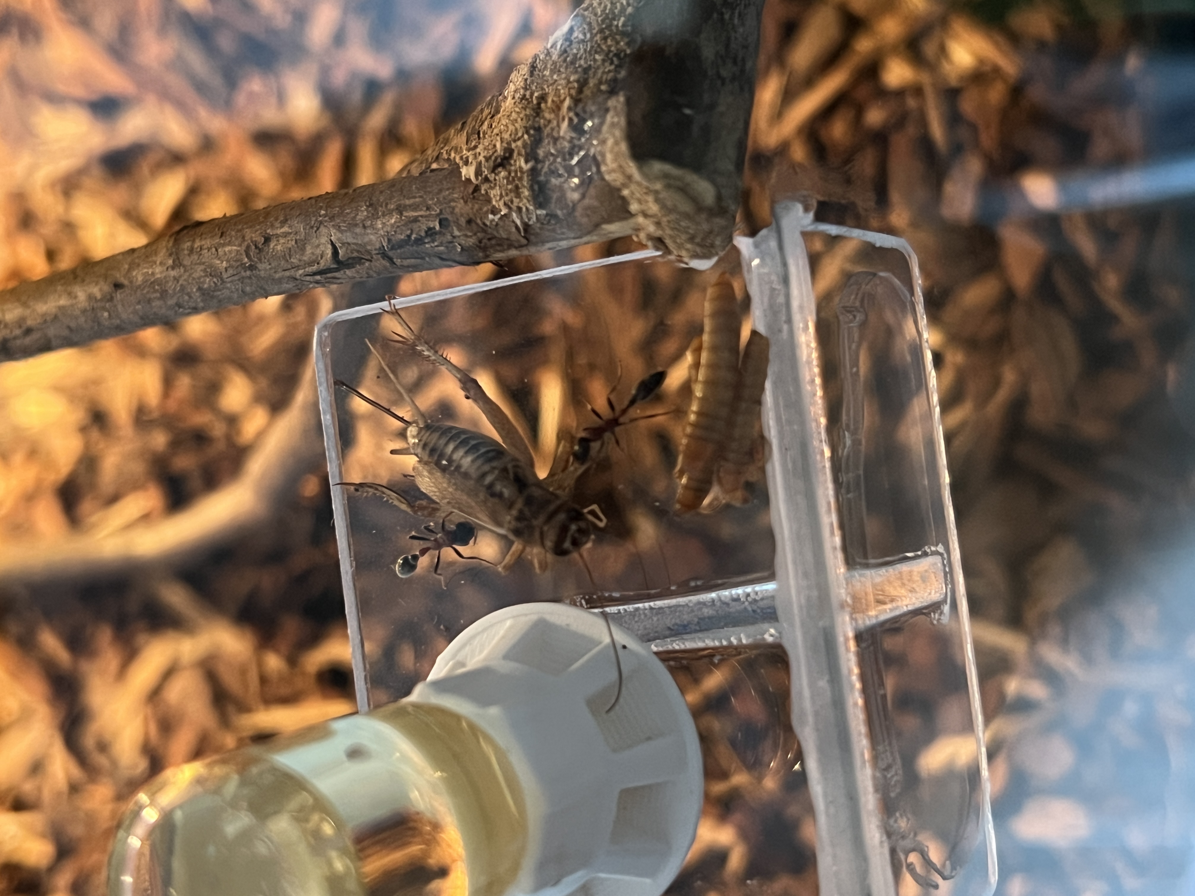 Heutige FĂŒtterung: 3 MehlwĂŒrmer und ein mittleres Heimchen.
