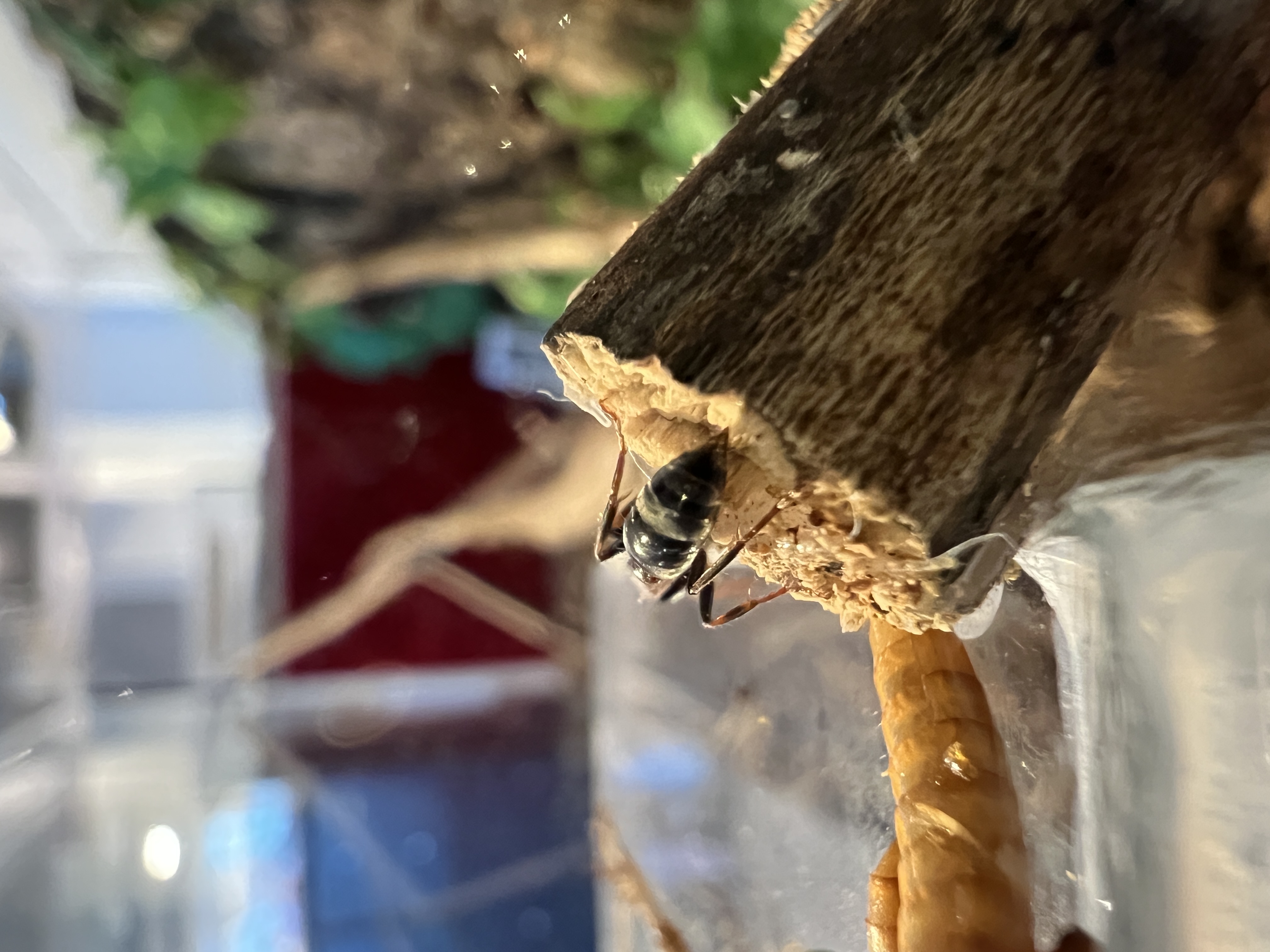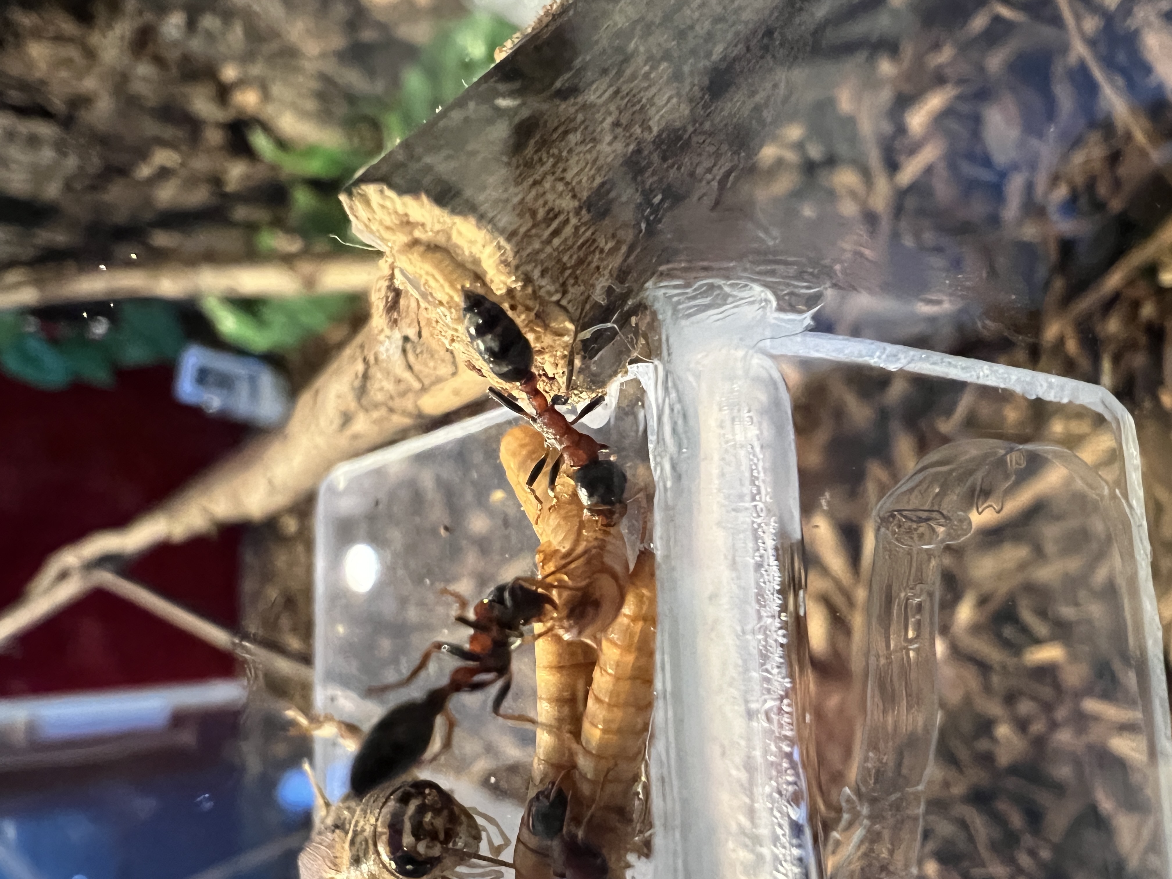 Ich halte meine Ameisen so natĂŒrlich wie möglich also biete ich den Tetraponera die dinge an die sie in ihrem natĂŒrlichen Habitat zum Nestbau benötigen Bambus röhren und KorkĂ€ste,etc. So simuliere ich einen sonnenbeschienenen Waldrand, dort wo man diese Art auch hĂ€ufig finden kann.