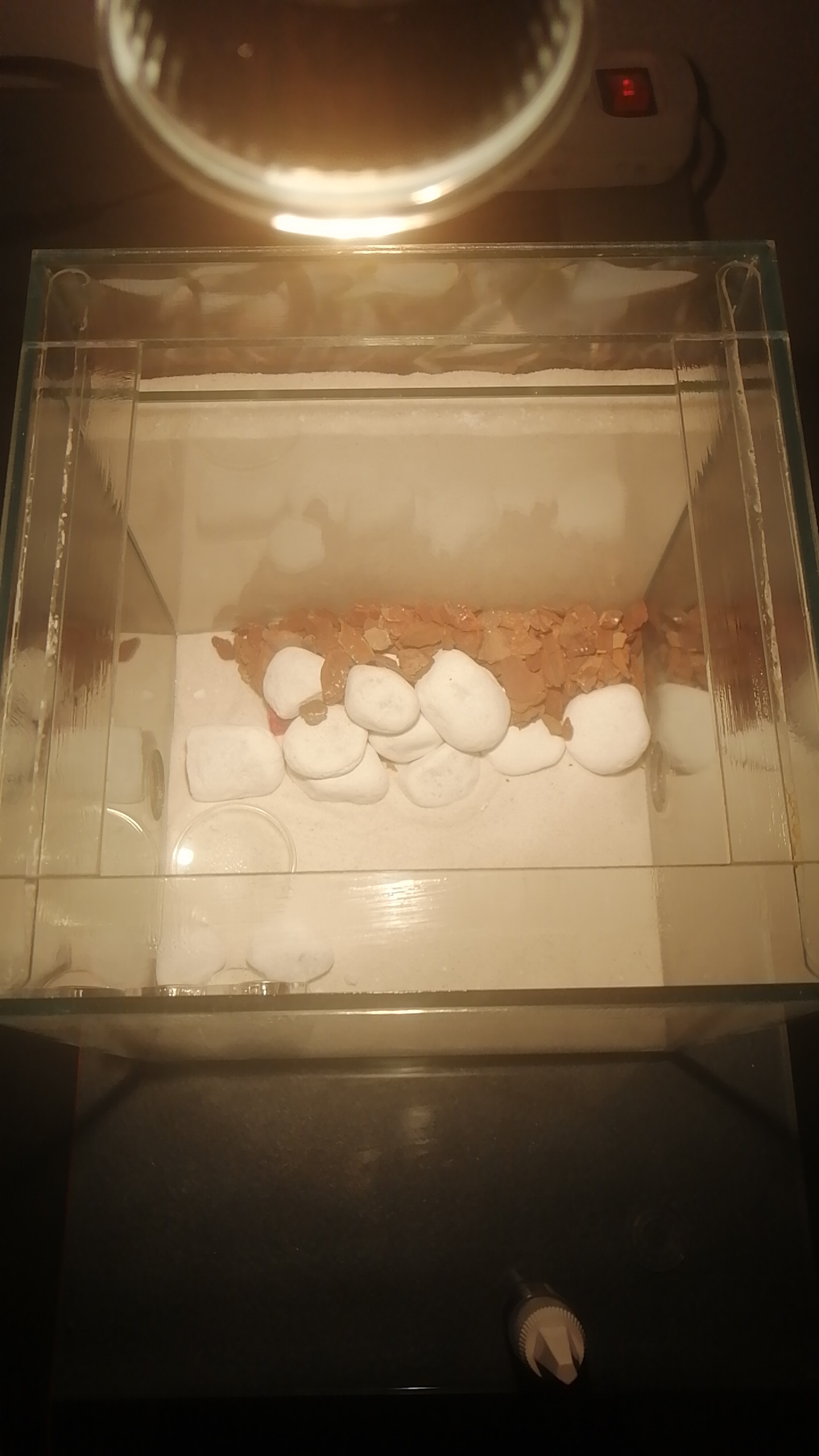 Ach und als kleine side Story. Voller enthusiasmus wollte ich ursprünglich eine Halogen 35 Watt starke Lampe an die Öffnung setzen. Es sind zwar gemütliche 32 Grad innerhalb von einer Stunde geworden, aber ja.. brennende Ameisen sind auch nicht das wahre, erklärte mir der Kunden support. Also Lampenständer gekauft, und zufrieden bin ich dennoch nicht. Momentan liege ich bei 21 Grad. Das sollte kein Dauerzustand werden. Da ich jedoch nicht ständig an Höhe der Beleuchtung und Luftzufuhr selber spielen möchte gab es im Baumarkt eine kleine Neuland Möglichkeit