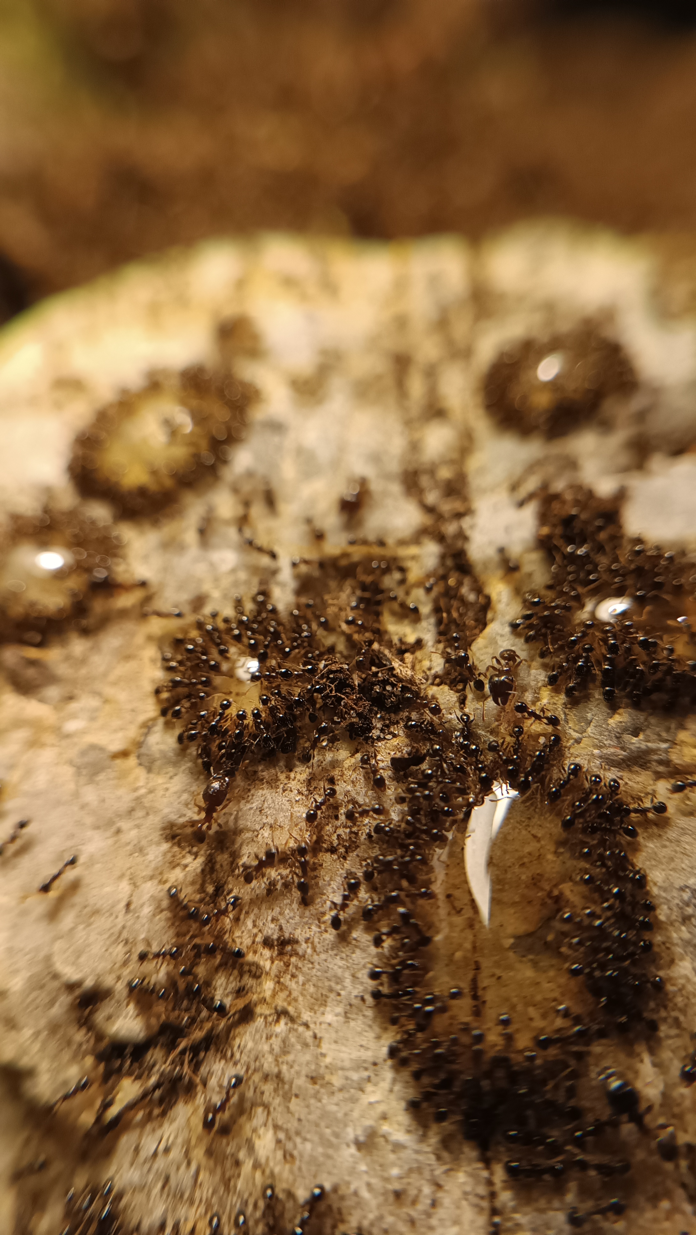 Ich frage mich nämlich wieviele Königinnen meine große Pheidole megacephala Kolonie hat bzw. wieviele Arbeiterinnen pro Königin. Sie leben in einem 80l Aquarium. Es ist immer gut gefüllt mit Ameisen und sie verspeisen jeden Tag 5 Mehlwürmer manchmal auch mehr. Wenn ich ein großen vergrabenen Stock in der Mitte des Aquariums hochnehme, kommt eine Menge Brut und ca. 5 Königinnen zum Vorschein.