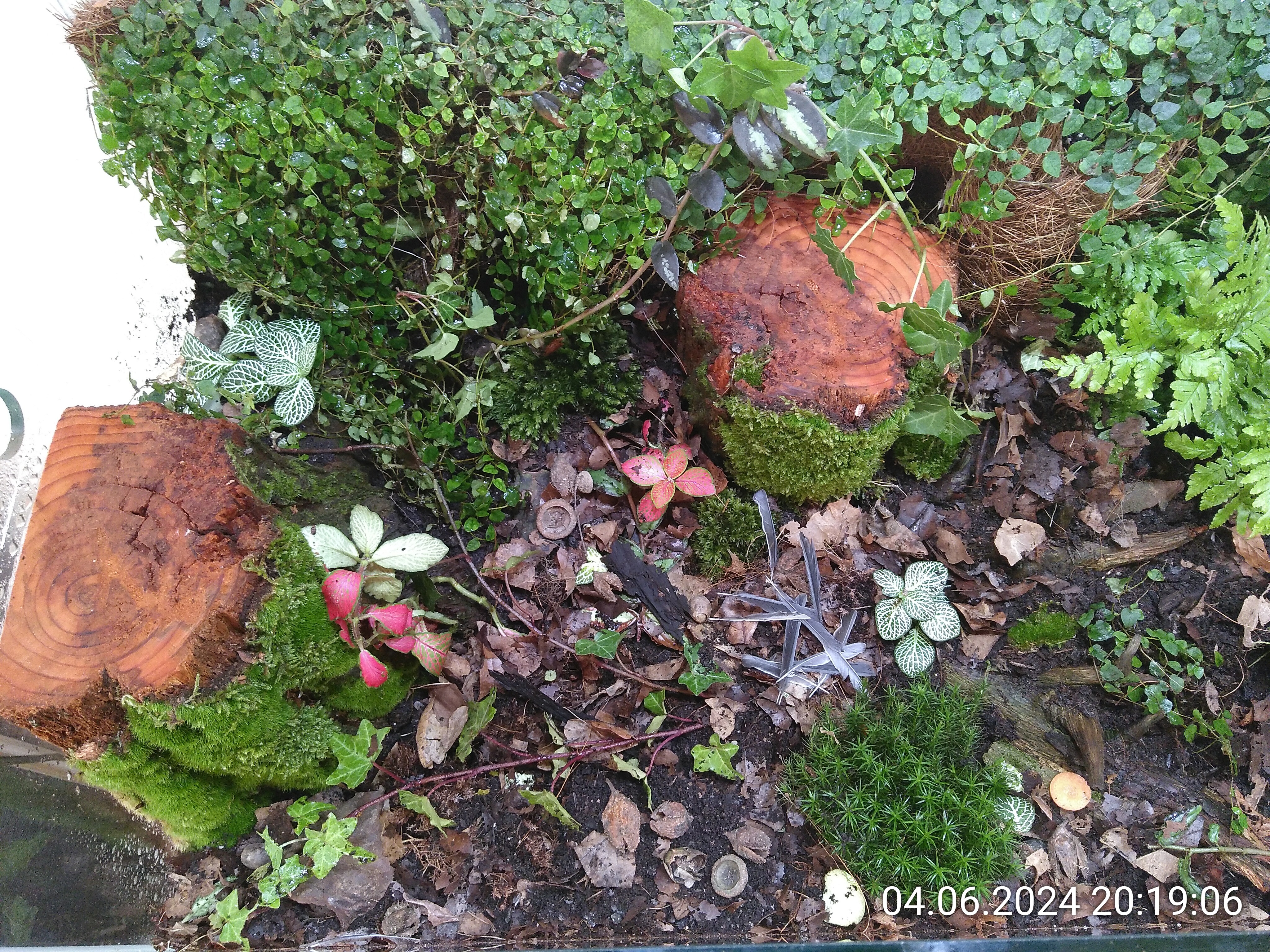 Viel habe ich nicht über sie herausgefunden. Antwiki sagt: "Nests in rotting wood on the ground or in tree stumps or among the roots at the base of trees." Joschi meinte auch, dass sie gern in verrrotendem Holz nisten. Damit war klar, wie ihr Nest aussehen sollte. Außerdem mögen sie es feucht und eine "waldige" Umgebung. Mehr Infos brauchte ich nicht. So ein Habitat kann ich ihnen auf einem knappen halben Quadratmeter einichten.