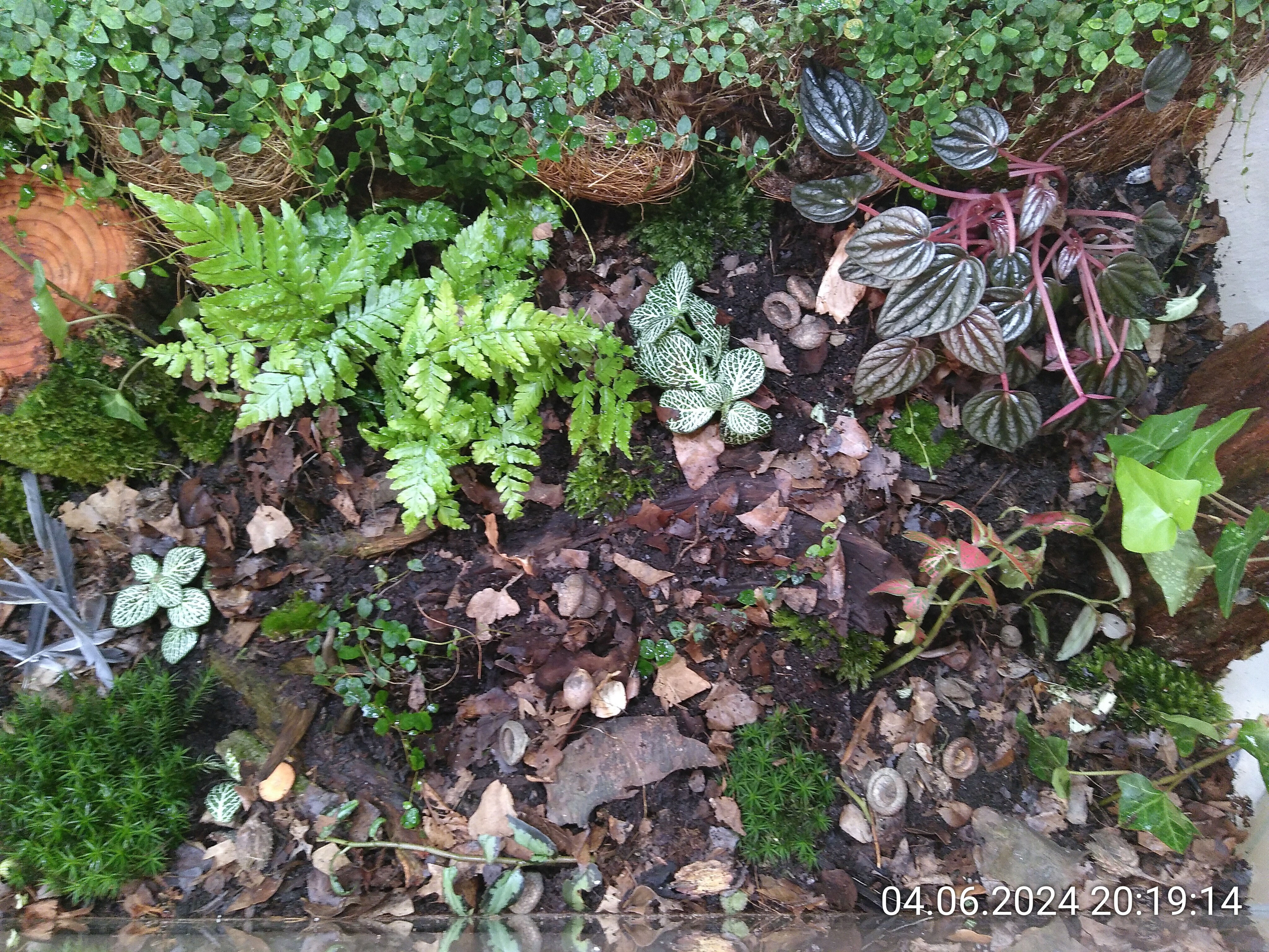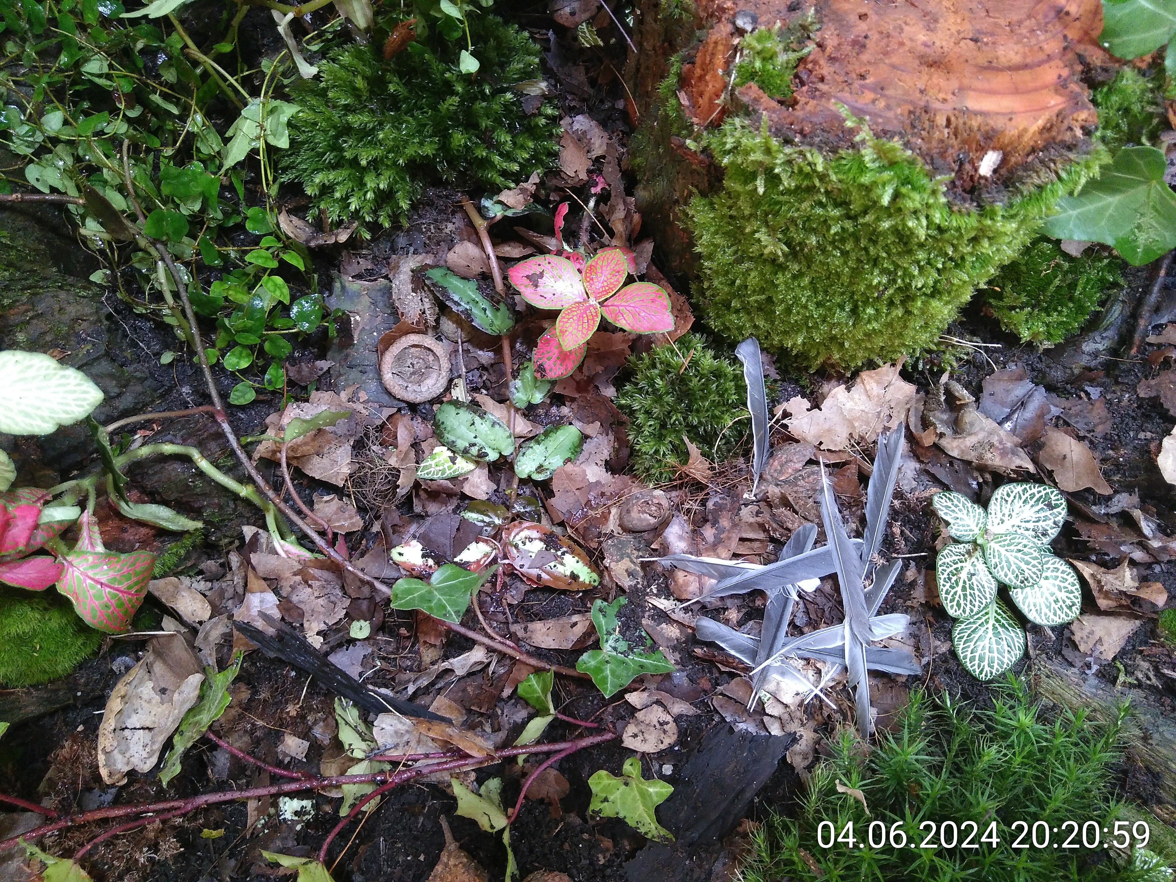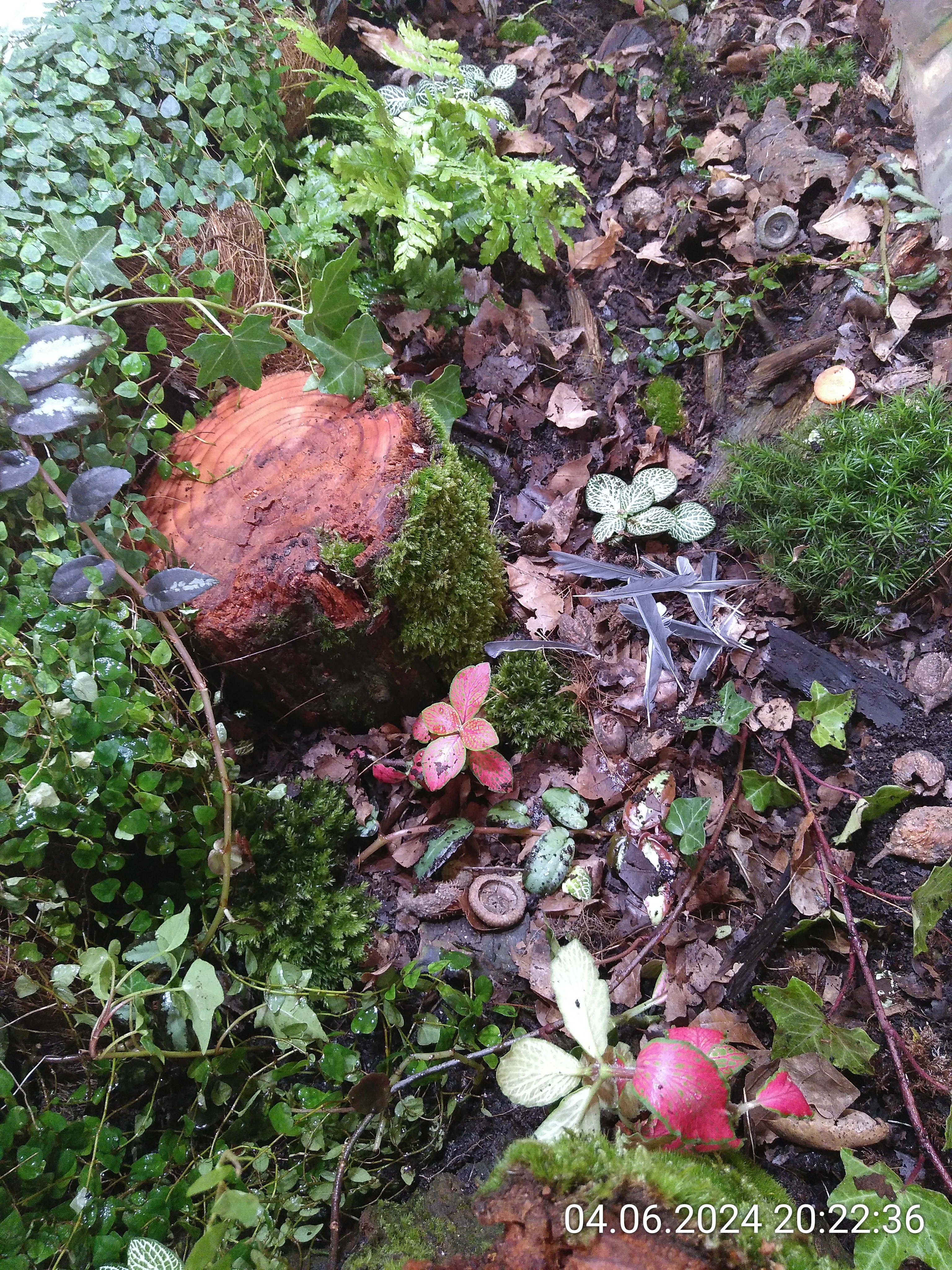 Schon besser, sieht aber immer noch nicht nach Waldboden aus. Also habe ich noch ein paar Holzstückchen und Baumrinde verteilt.