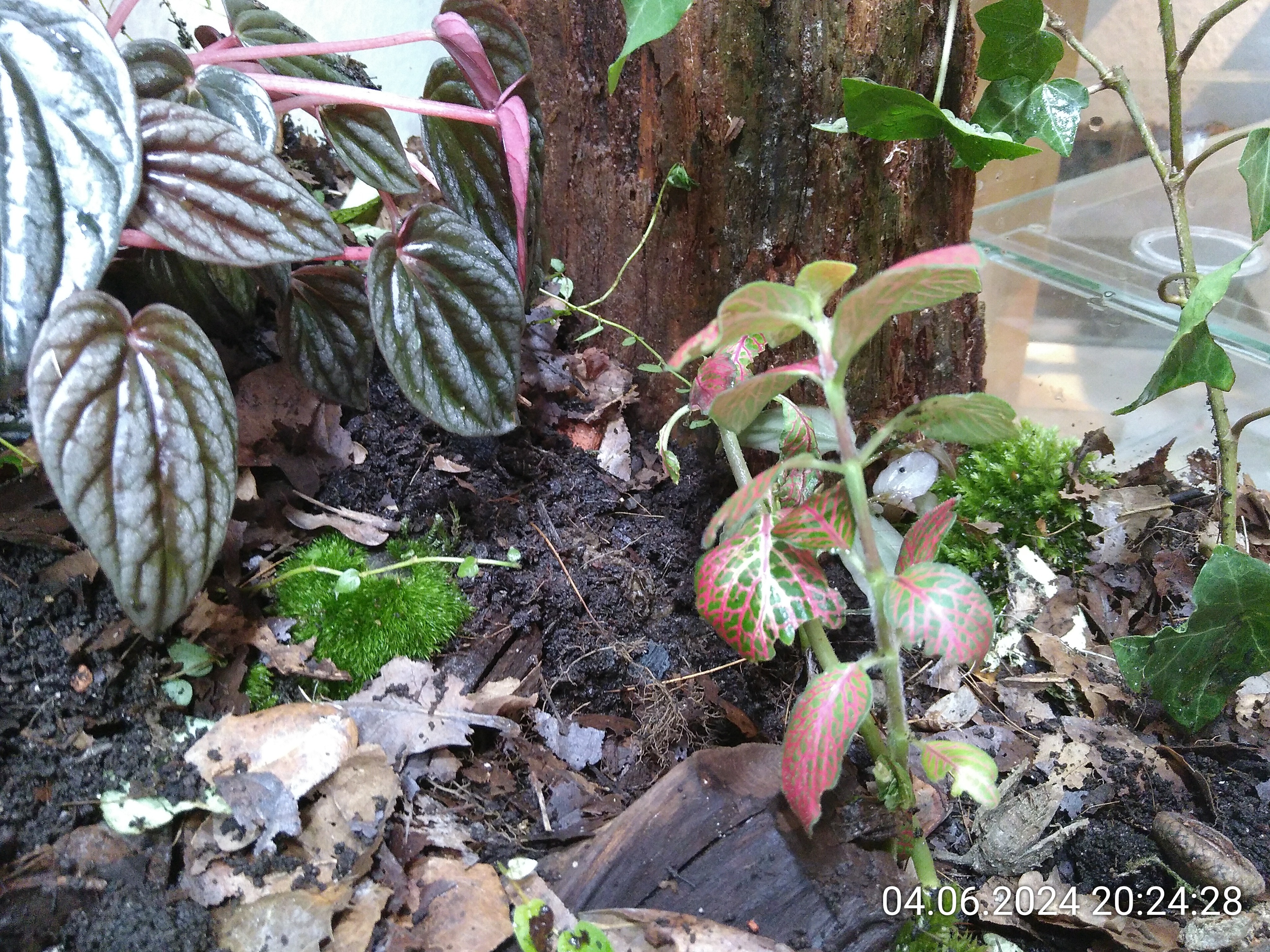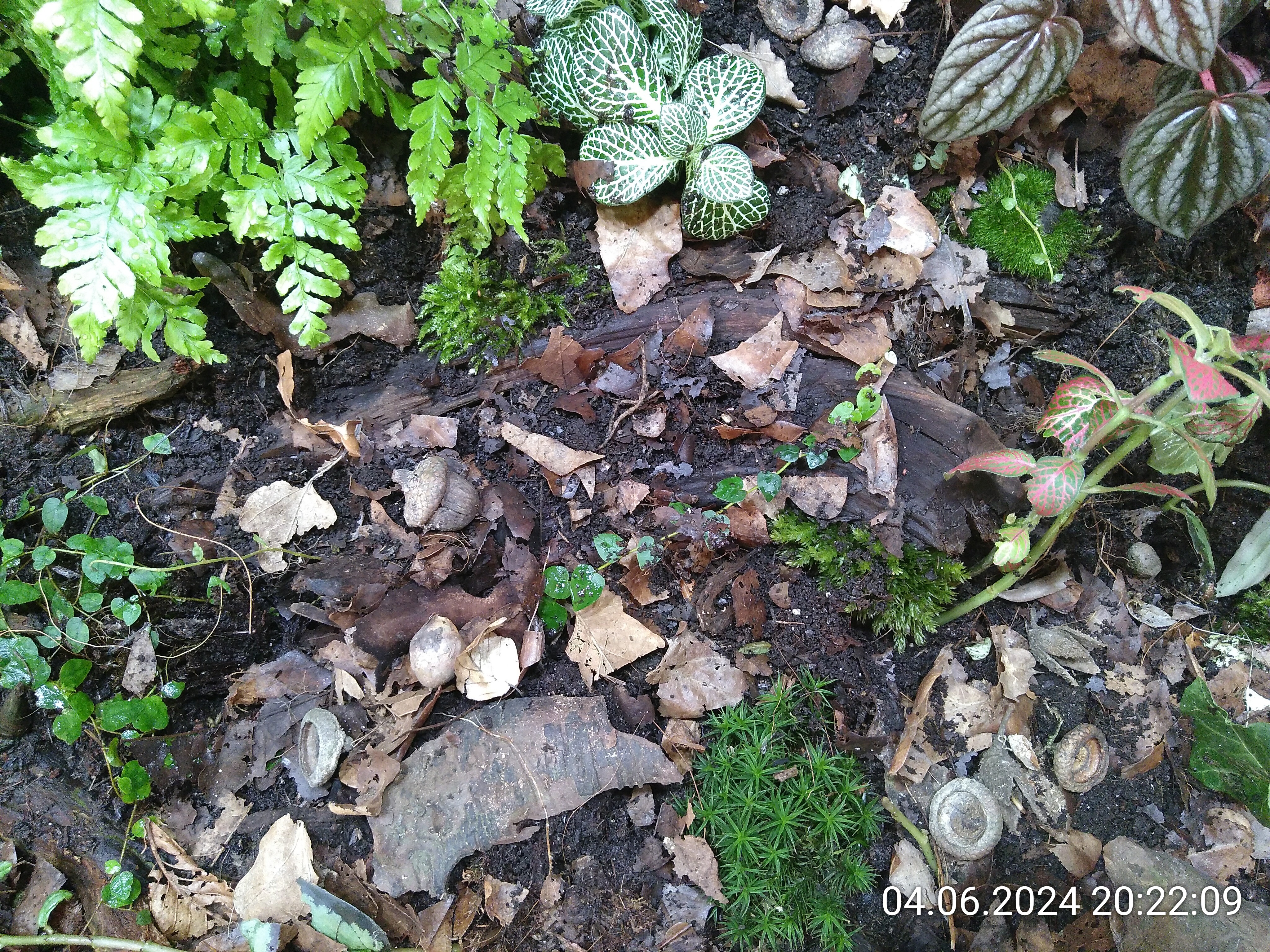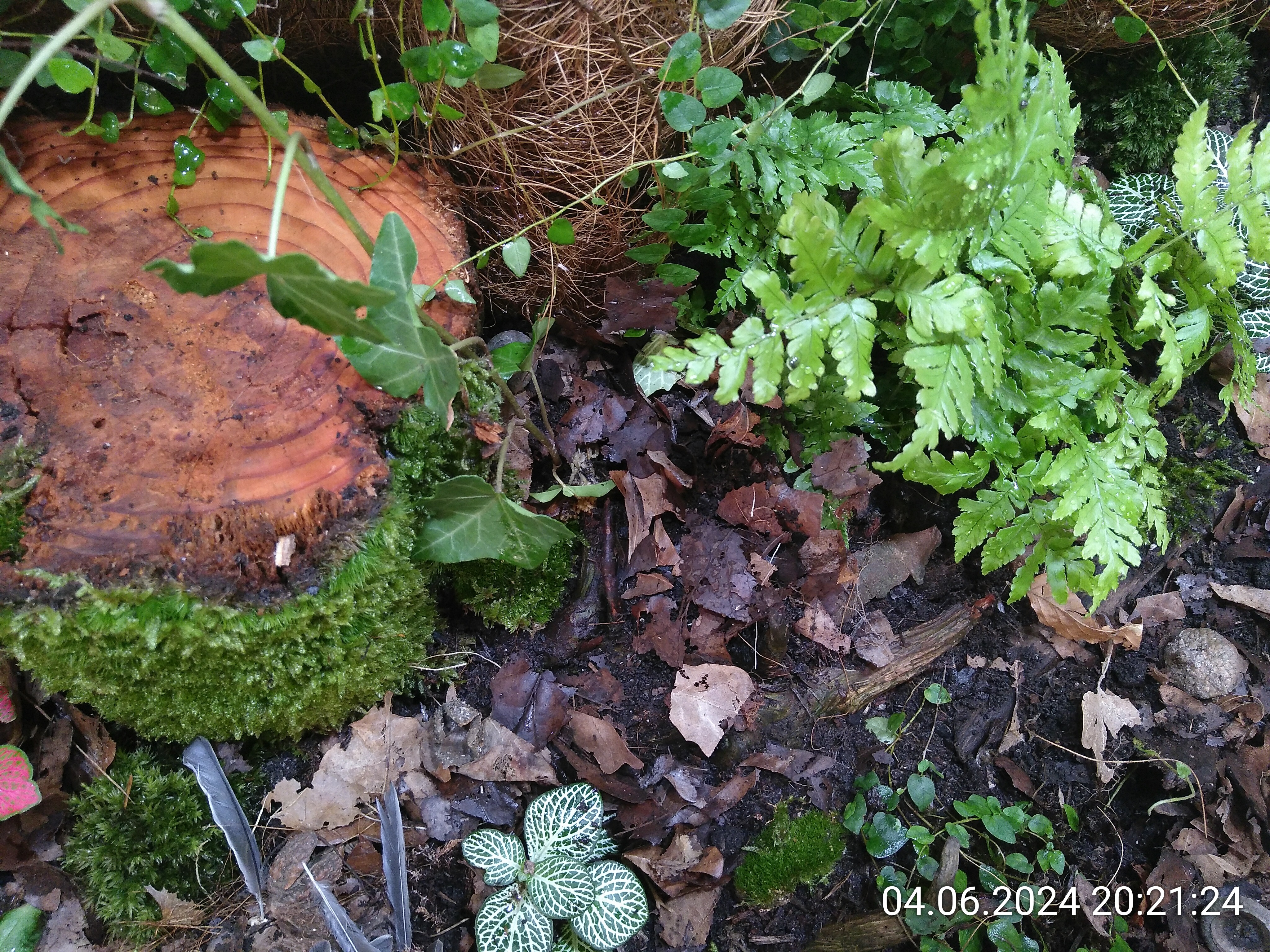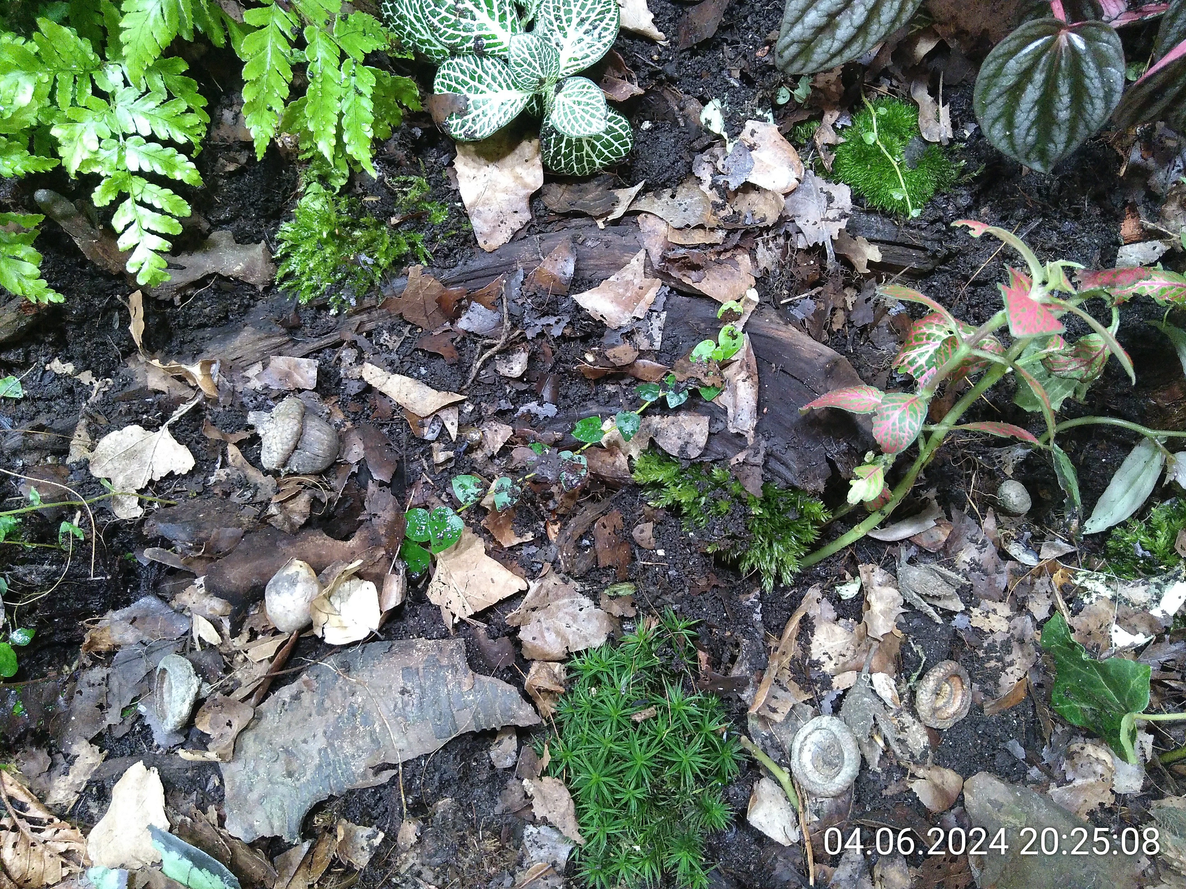 Schon besser, sieht aber immer noch nicht nach Waldboden aus. Also habe ich noch ein paar Holzstückchen und Baumrinde verteilt.