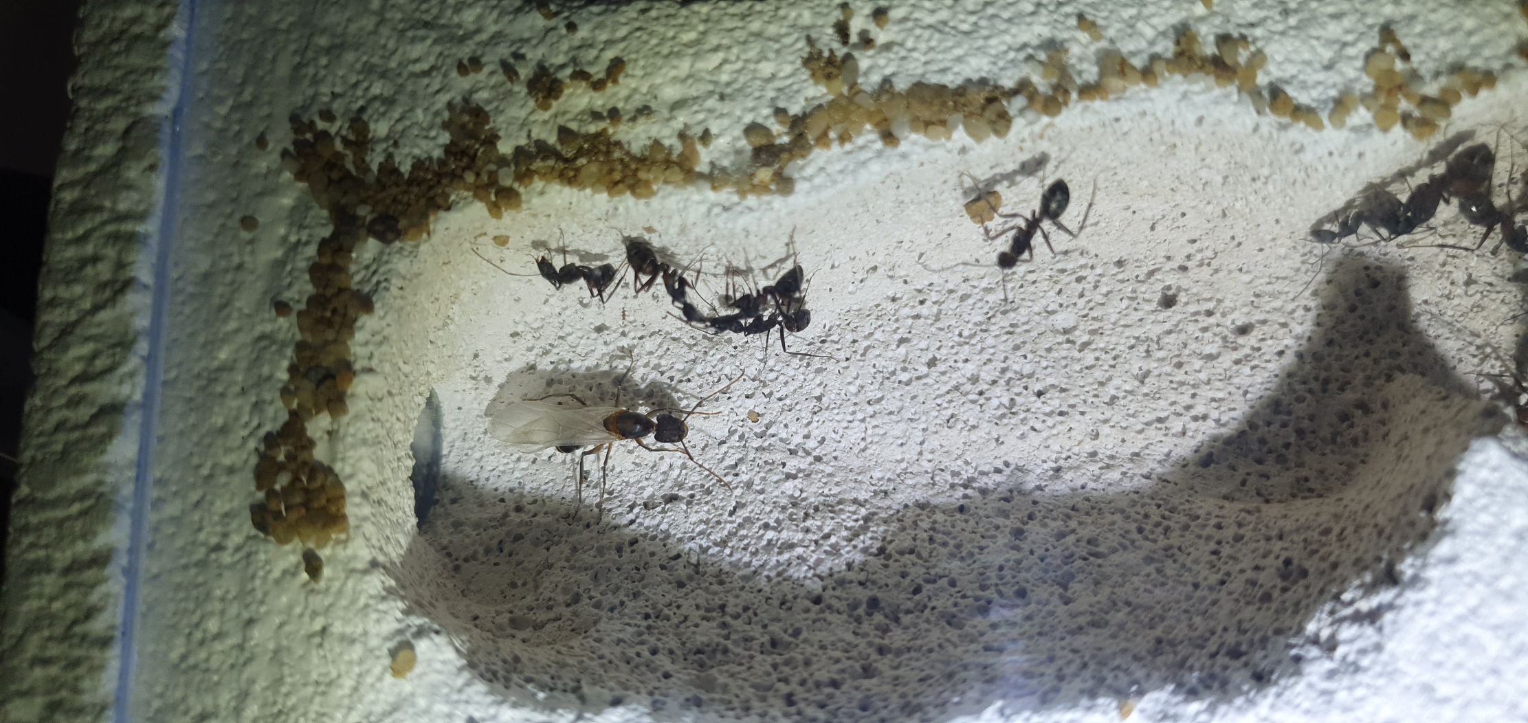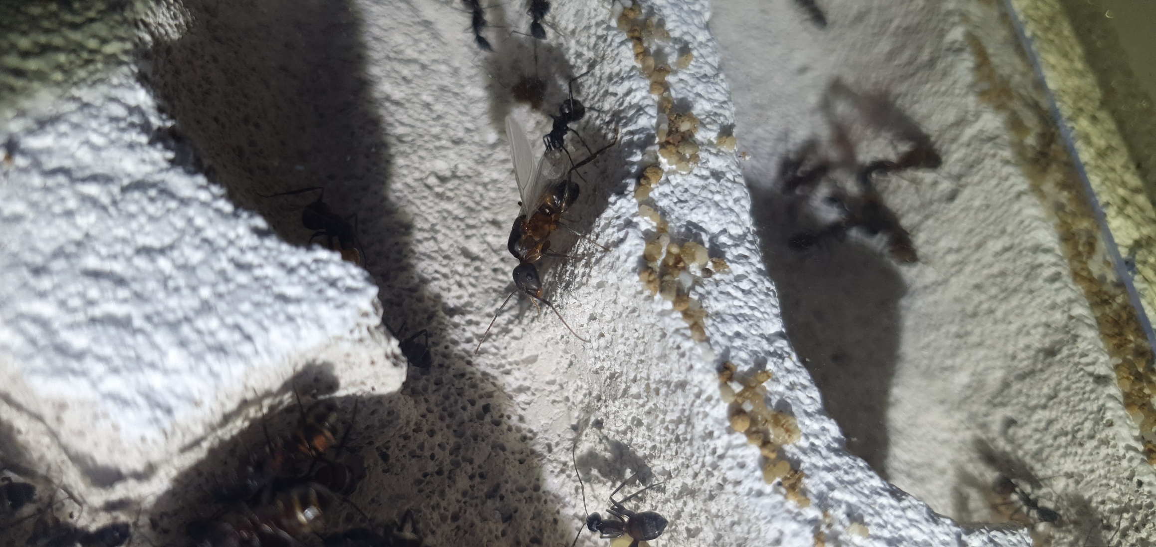 Camponotus-Männchen haben einen kleinen, dreieckigen Kopf und sind insgesamt ziemlich schmächtig, das ist also eine Jungkönigin.