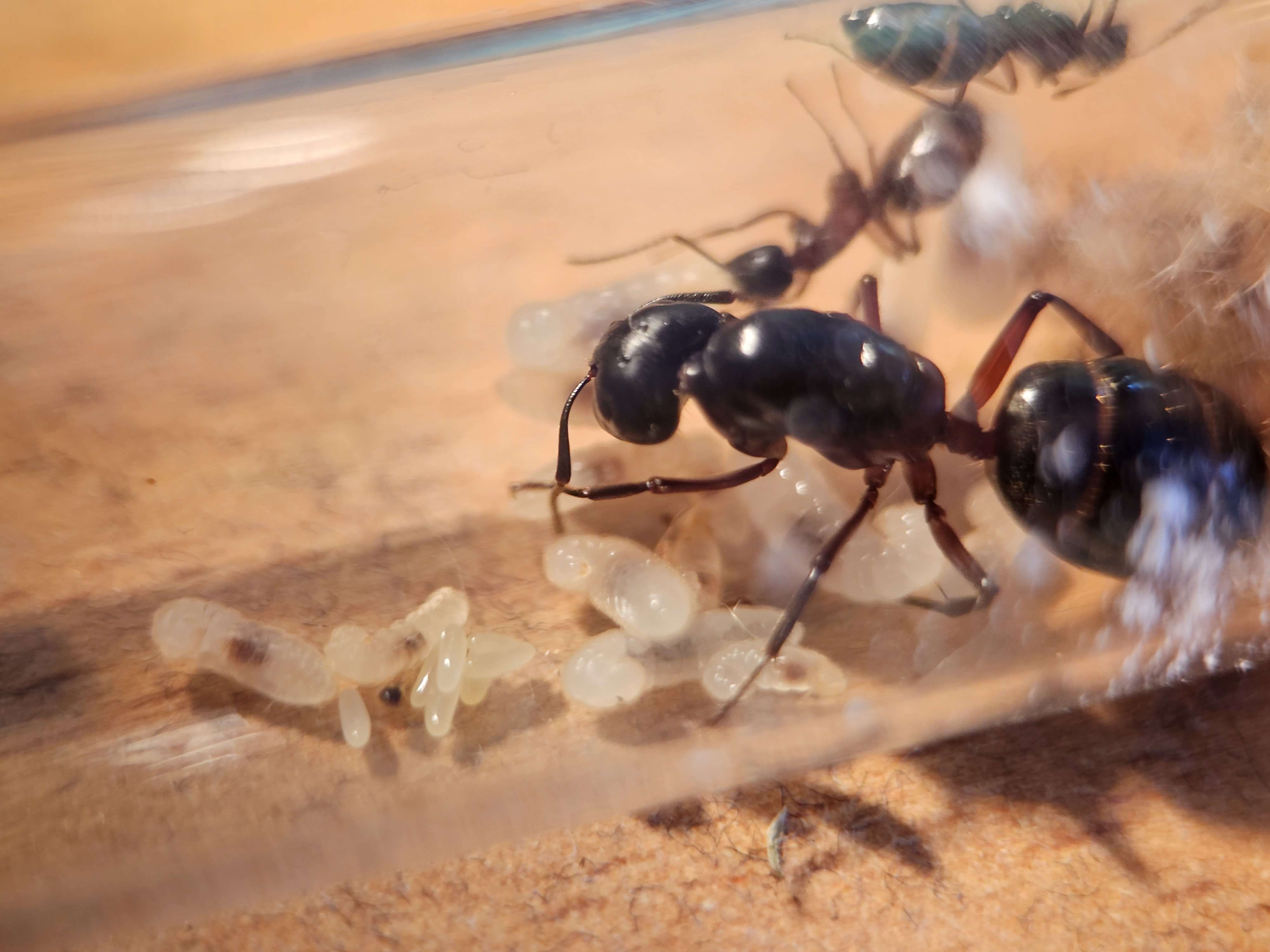Nein weder die ligniperda noch die herculeanus haben neue Eier gelegt alle 4 Gynen haben ein extrem angeschwollenGaster aber sie sind auch erst seit 2 Wochen aus der Winterruhe draußen ich hoffe das wird noch meine Lasius cf. niger haben auch noch keine neuen Eiger gelegt. Ich habe alle 4 Camponotus Gynen kleine Heimchen gegeben und auch große aber es scheint so als wären sie nicht so interessiert an den Proteinen.