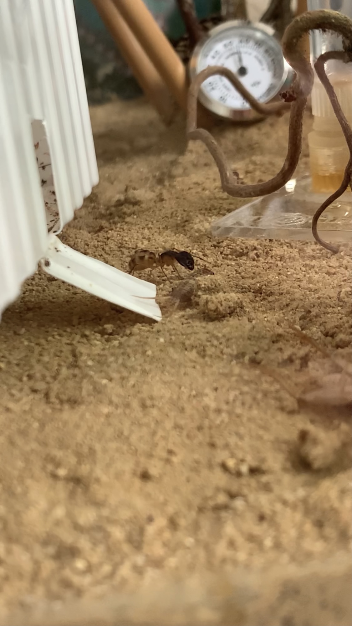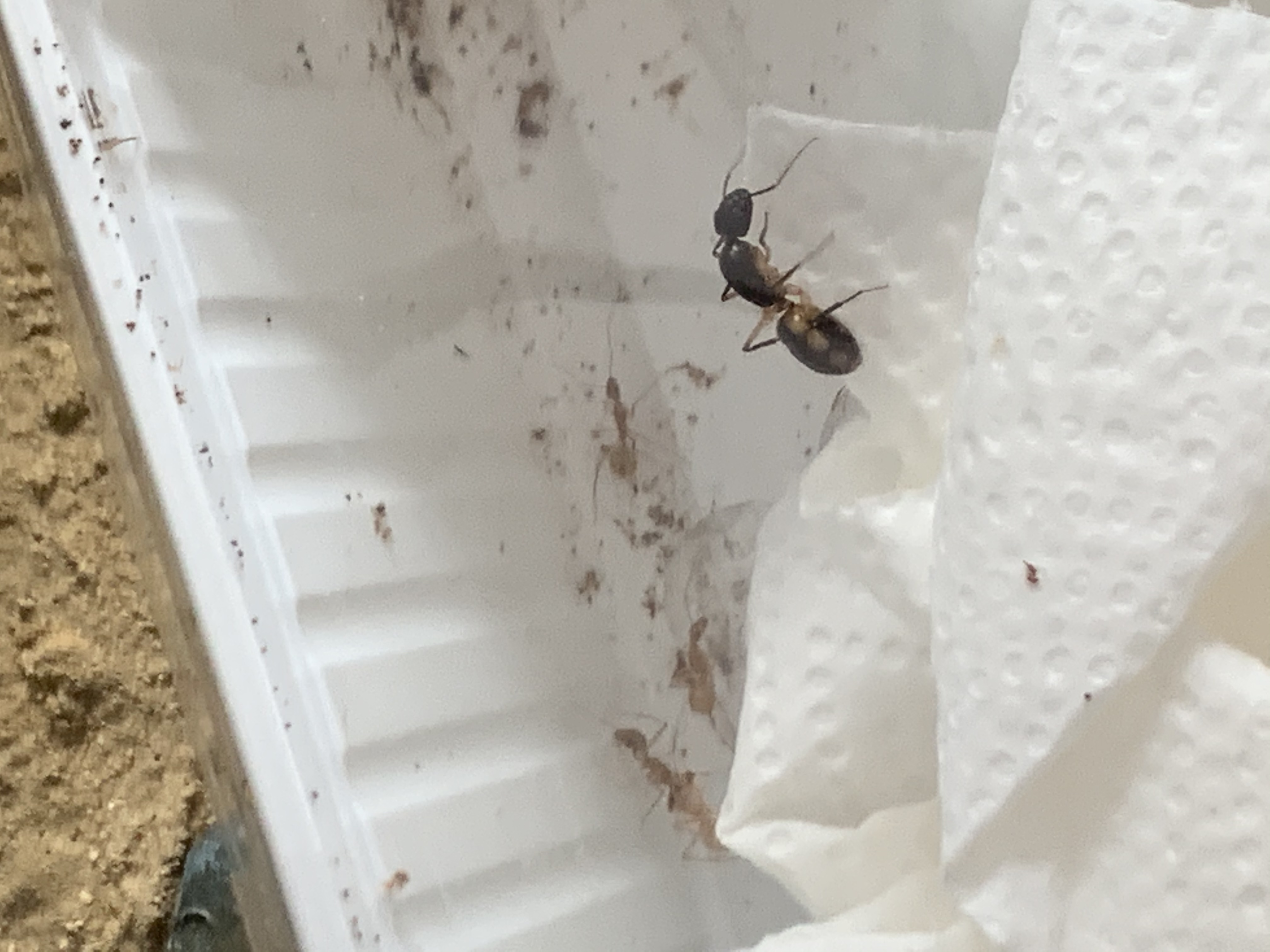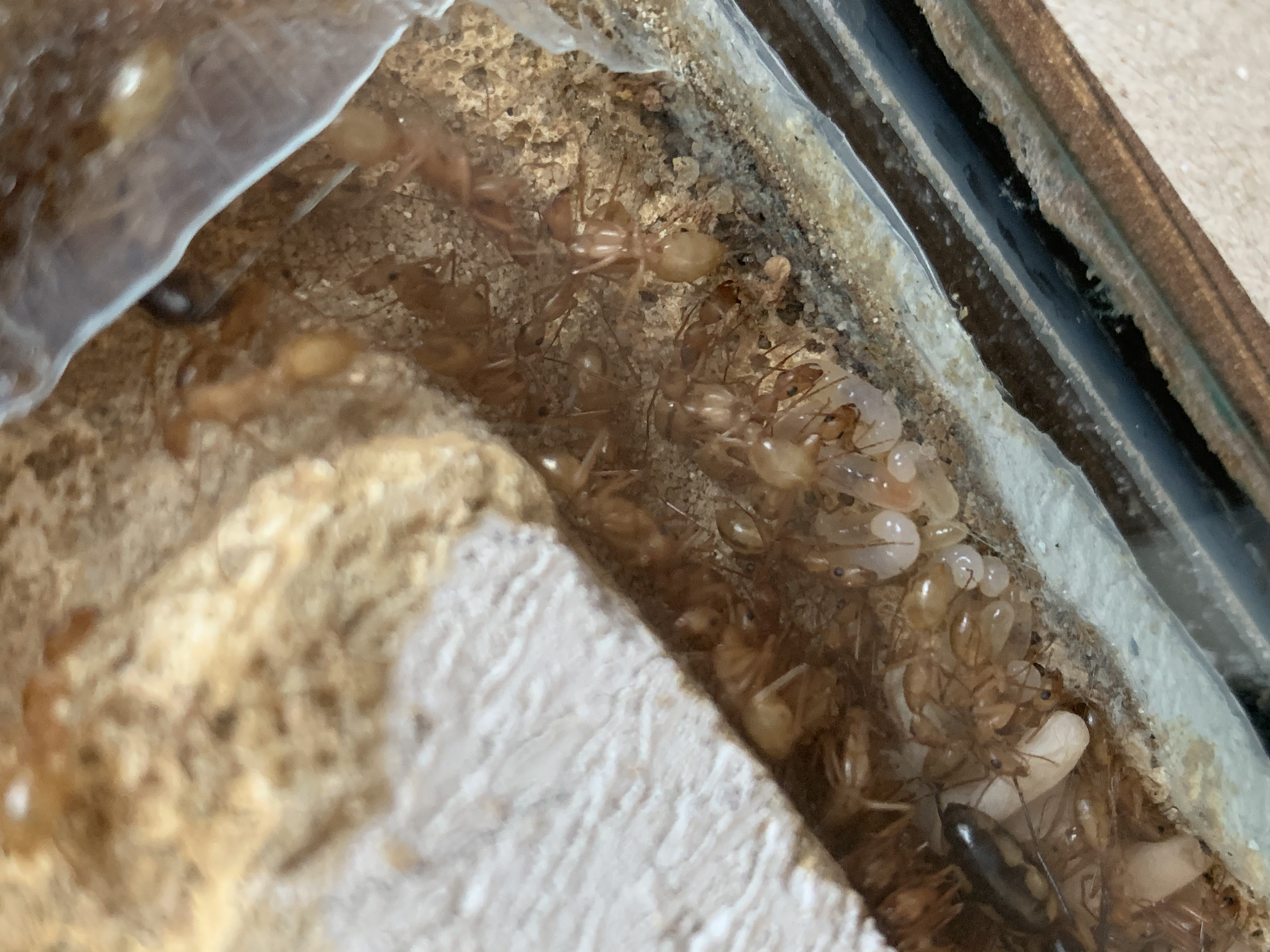 Zuckerwasser wurde leider am Anfang nicht angenommen, weshalb ich Invertzucker hergestellt habe. Ich befeuchte mein Nest ĂŒber die grĂŒnen SchlĂ€uche, aber derzeit sind sie komplett trocken.