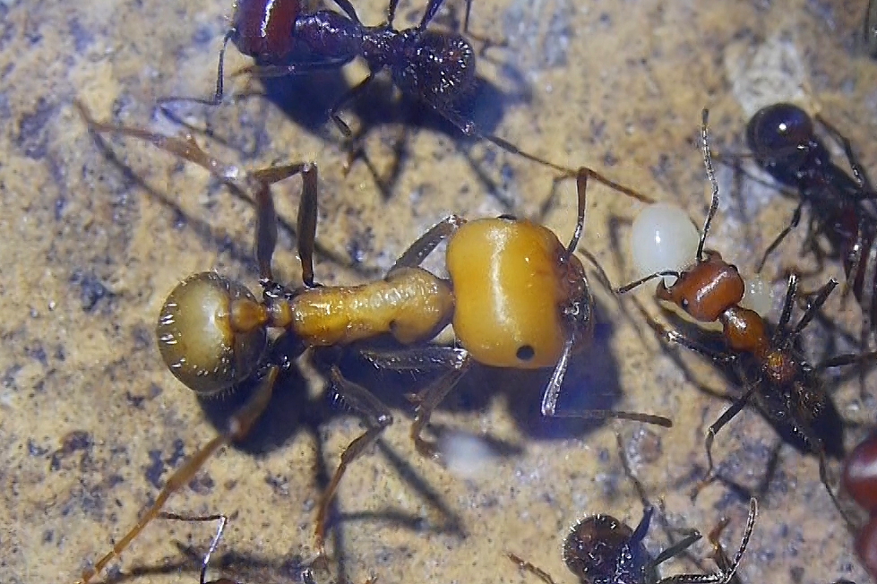 Wenn ich z. B. mein Messor cephalotes Volk in eine nackte Arena kippen würde, könnte ich damit sicherlich Videos mit viel Aktion ablichten.
