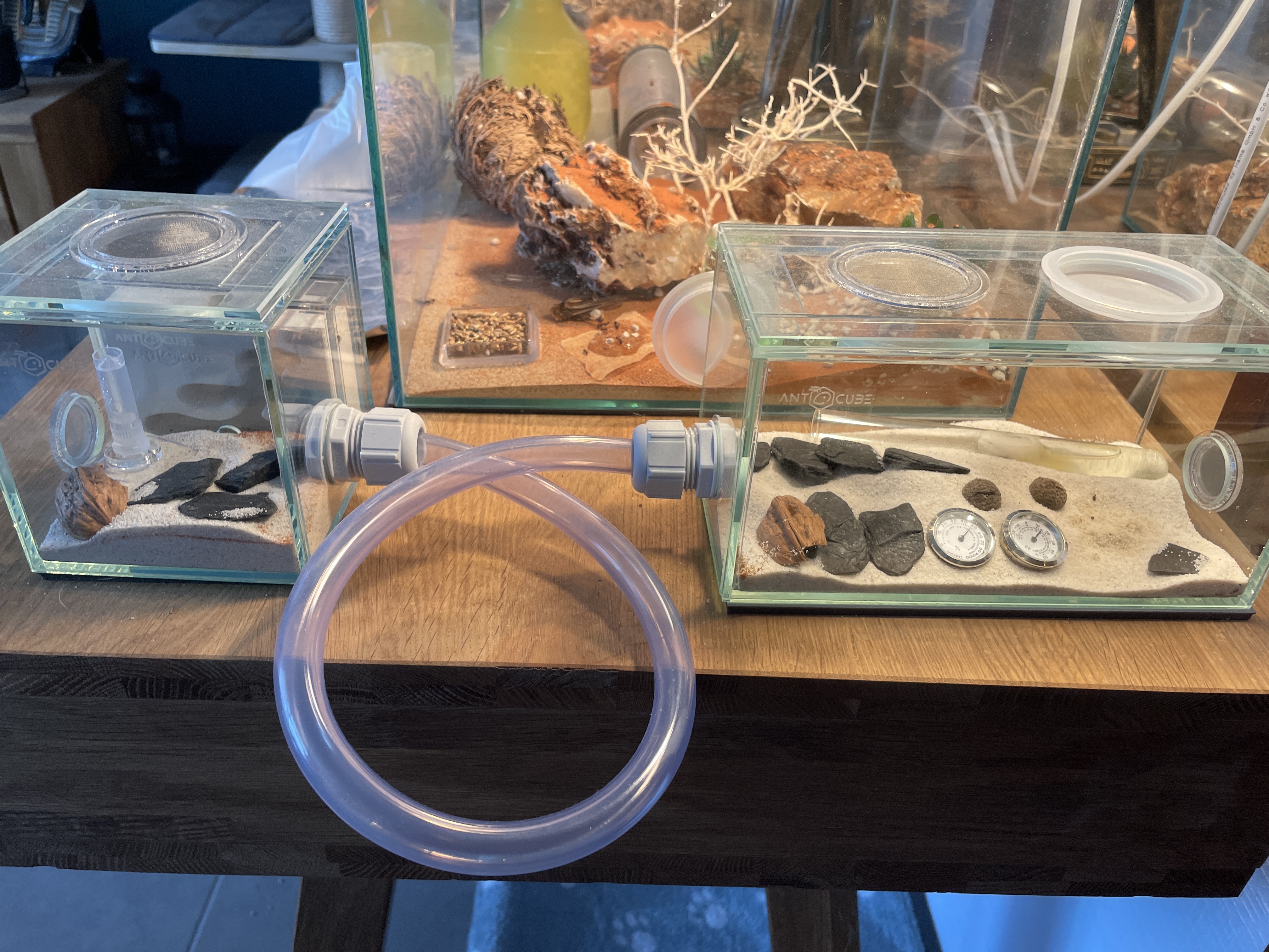 Da muss ich Serafine zustimmen. Ich habe oft versucht Gemeinschaftsbecken zum Laufen zu bringen, es hat zwei mal funktioniert aber das Areal muss wirklich groĂ sein. Bei einer Kolonie mit mehreren hundert Arbeiterinnen erstreckt sich die "NestnĂ€he" gern mal ĂŒber das ganze Formikarium, in der die Ameisen sehr territorial sind.