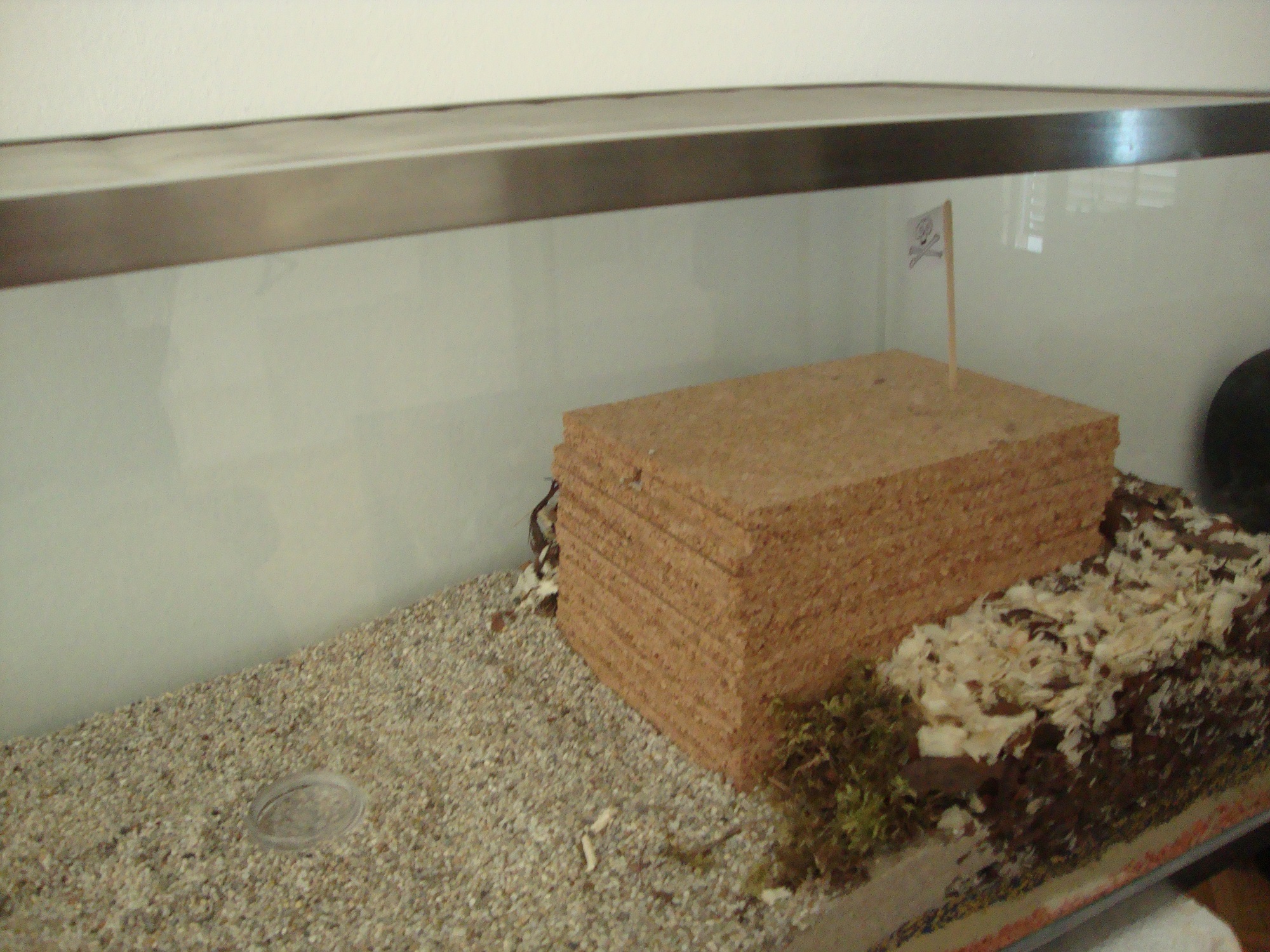 Zwecks Beobachtbarkeit: Was hĂ€ltst du davon eine kleine (Plexi)Glasplatte dazwischenzulegen so dass der vorgebohrte Gang darunter liegt? Dann könntest du immer mal nachschauen und in einem Bericht wĂŒrde sich das auch besser machen (<-Zaunpfahlwink).