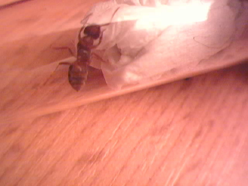 Verglichen mit meiner Formica fusca Gyne ist diese hier ein richtiges Energiebündel, jetzt wo sie im Dunklen sitzt hat sie sich beruhigt (bzw sie knabbert am Wattestopfen, scheint ein kleiner Panzerknacker zu sein), aber sowie das Licht angeht (beim Fotos machen) war die Hölle los, dementsprechend sind leider auch die Bilder (ausserdem hab ich nur ne Webcam. Ich hab 30 Bilder gemacht und die besten rausgesucht, mehr geht leider nicht).