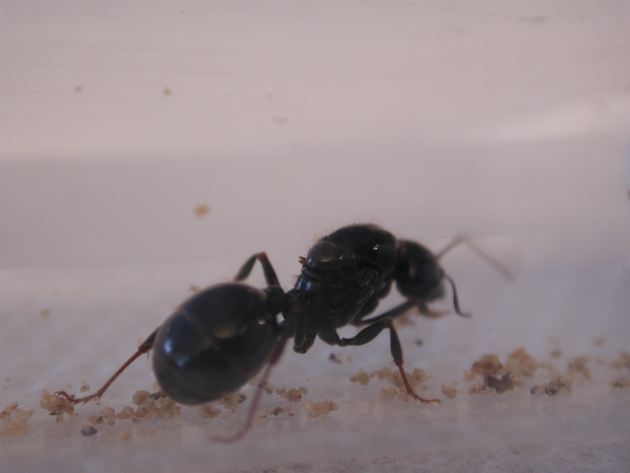 Wieso hast du den vorgeschriebenen Text nicht ausgefüllt? Da hätte man das Ratespiel ein wenig eingrenzen können! Die Königinnen von Messor structor, die ich bisher gesehen habe, waren alle etwa 10mm lang und vergleichsweise grazil gebaut.
