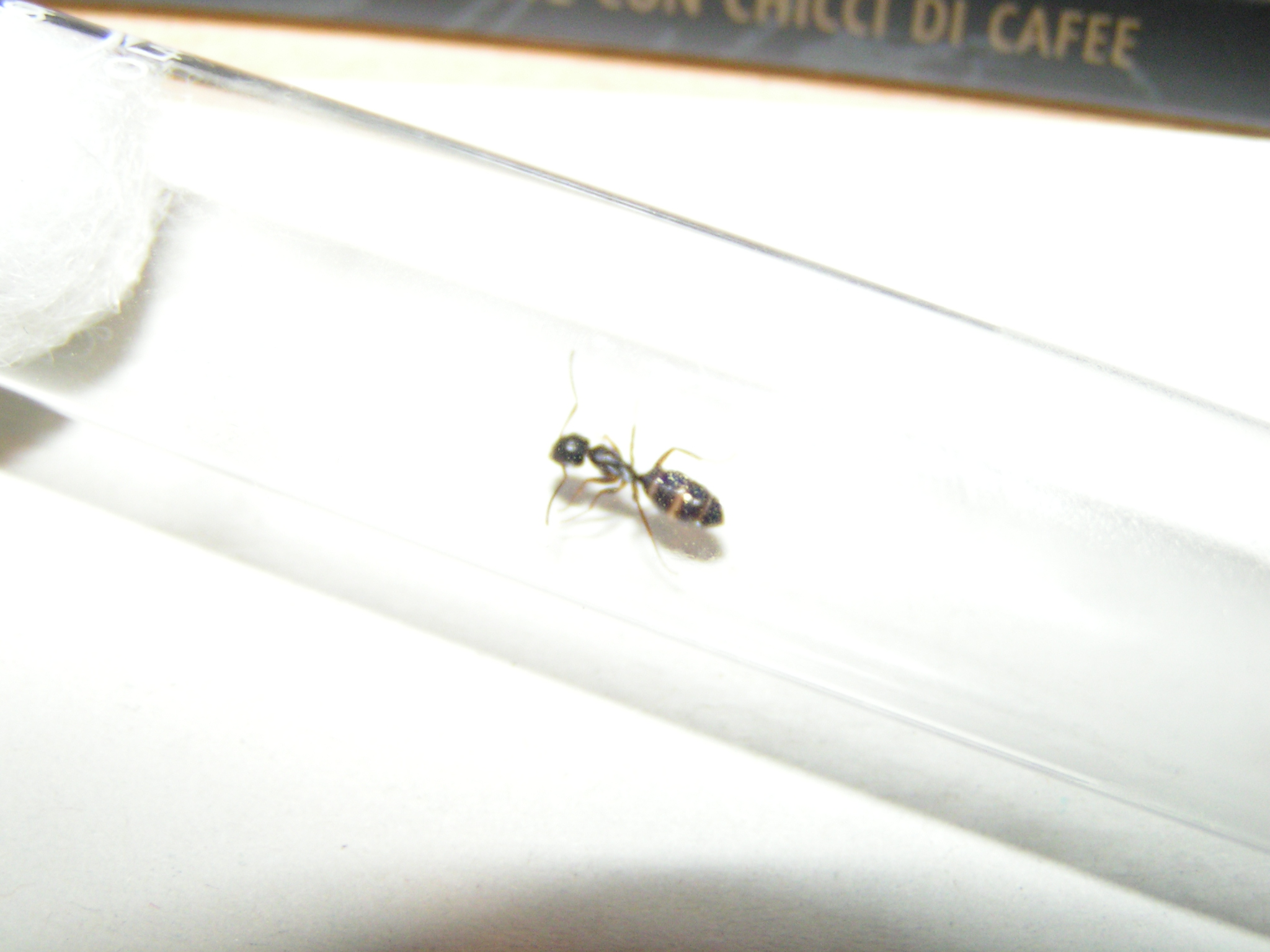 Da ich mich bis jetzt nur mit Ameisenköniginnen der Größe Lasius niger und aufwärts beschäftigt habe, da sie einem einfach öfters über den Weg laufen, kann ich nicht mal sagen ob es sich überhaupt um eine Königin handelt.