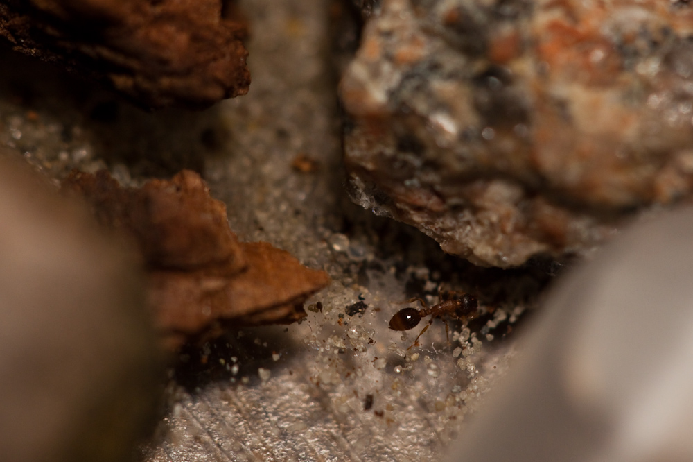 Den ersten Tag lang wurde viel im Becherglas fouragiert, der Nesteingang wurde mit Holz zugebaut, seit dem ist nun eher ruhe eingekehrt, es sind max. 0-4 Arbeiterinnen draussen unterwegs. Das verhalten schätz ich mal als aggressiv ein; meine Pinzette musste Bisse erleiden