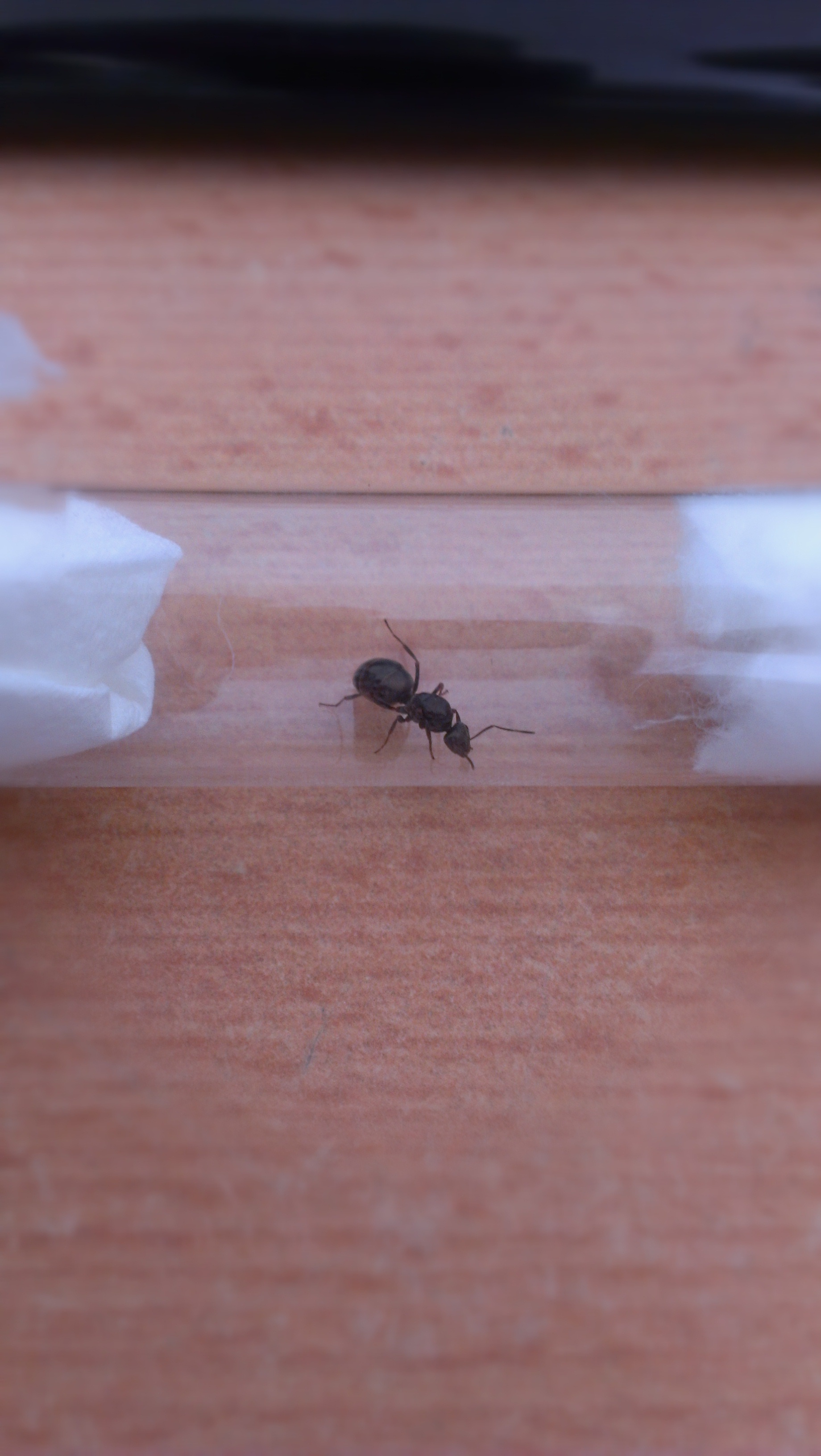 Die Gyne besitzt bereits 8 Arbeiterinnen und hat keine Brut mit in die Winterruhe genommen! Sie ist relativ groß, flink und die Arbeiterinnen ebenfalls! Hoffe das Foto reicht.. Bekomm mit meinem Handy nicht sooo gute Bilder hin