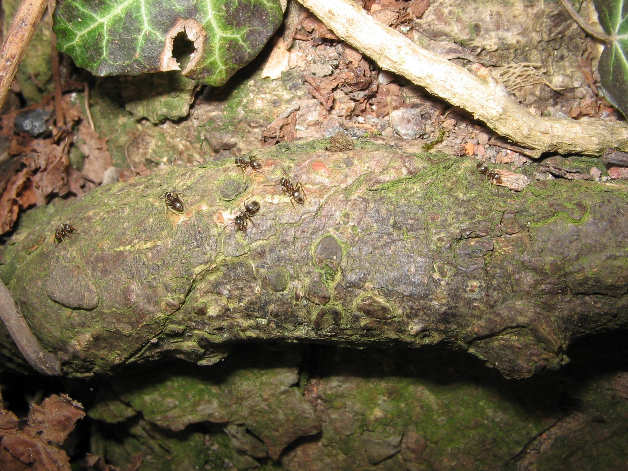 Die 2? Arbeiterinnen werde ich morgen zurĂŒckbringen, auch wenn es in dieser Gegend offensichtlich keinen Mangel an grossen Kolonien der gleichen Art gibt. An einem Baum war anscheinend sogar Krieg zwischen 2 Völkern der gleichen Art ausgebrochen. Da waren meine Batterien aber schon leer...