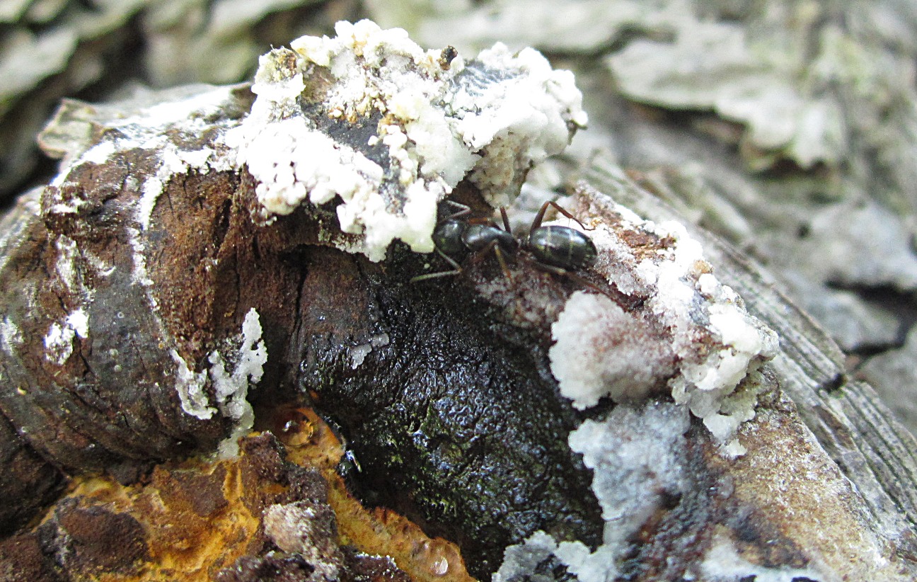 Habe nie gehört, dass sie sich von Baumpilzen oder gar Harz ernähren. Sie leben ganz vorwiegend in Trophobiose mit Rinden- od. Blattläusen. Auch an süßen, reifen Birnen werden sie sicher etwas naschen. Auch Blütennektar nehmen sie auf.