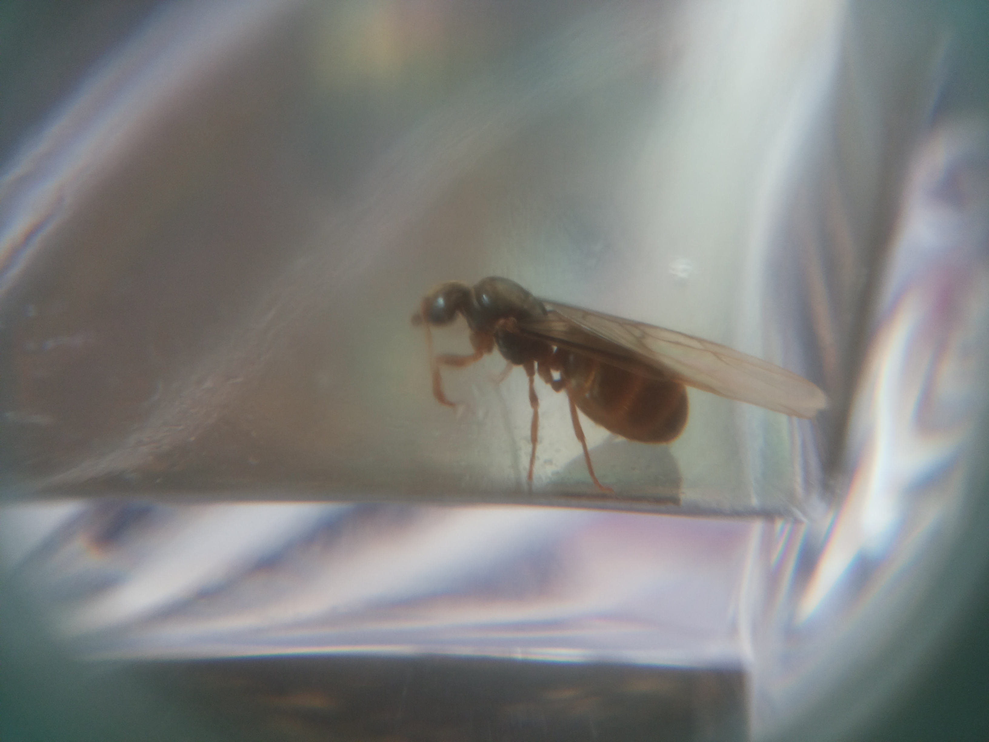 Wenn sie aber, die Flügel in den nächsten Minuten nicht abwirft wird es sich wahrscheinich um eine nicht begattet Gyne handeln.